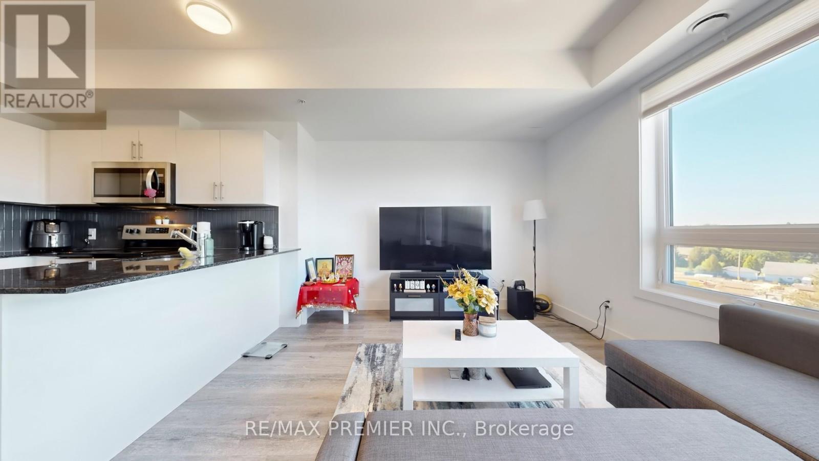 Welcome to Reign Condos, one of Guelphs most sought-after addresses blending modern design with everyday convenience. This bright 1-bedroom suite offers a functional layout with sleek finishes and large windows that fill the space with natural light while showcasing unobstructed west-facing views perfect for enjoying sunsets from the comfort of home.The contemporary kitchen features stainless steel appliances, quartz countertops, and modern cabinetry, seamlessly flowing into the open-concept living and dining area. The bedroom provides a private retreat with generous closet space, while the well-appointed 4-piece bathroom and in-suite laundry add ease to daily living.Residents of Reign Condos enjoy a full suite of amenities, including a stylish lobby, secure entry, secure bike storage and a party room. The building is ideally located with quick access to Highway 6, the University of Guelph, Stone Road Mall, shops, dining, parks, and transit, making it perfect for first-time buyers, investors, or those seeking low-maintenance living. Move into a community that offers both style and convenience your opportunity to live at Reign Condos awaits! (41378930)