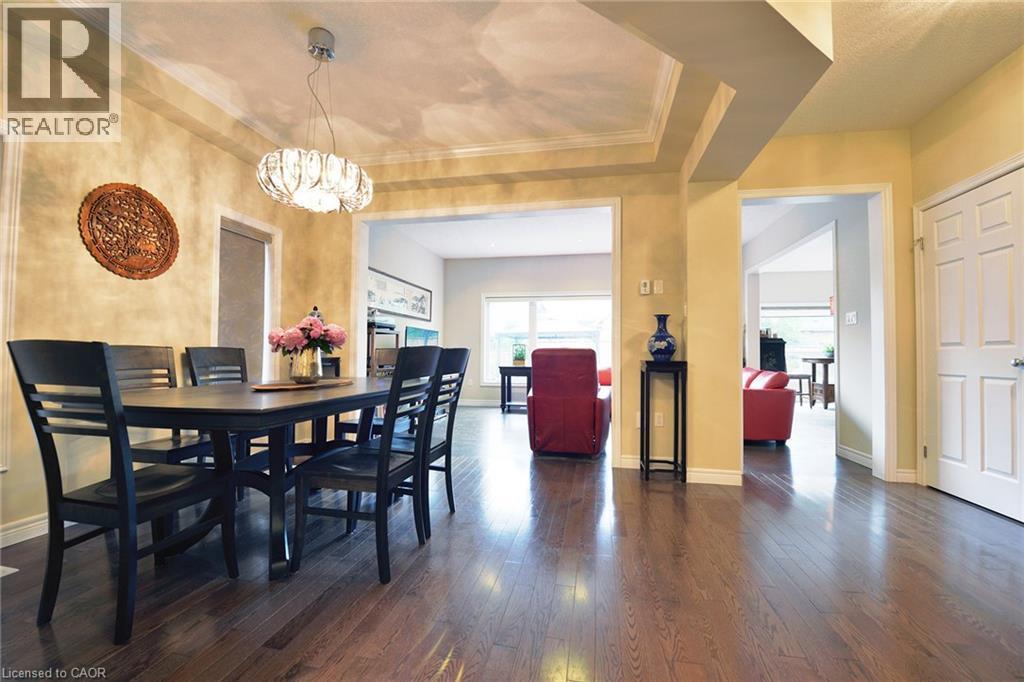 Welcome to 130 Coopershawk St. – A Stunning Executive Home in Prestigious River Ridge, Kitchener-Waterloo Discover this beautifully finished 5-bedroom, 4-bathroom single detached home with a double garage, now available for lease in one of K-W’s most sought-after neighborhoods — River Ridge. Offering over 3,000 sq. ft. of carpet-free living space, this home has been elegantly designed from top to bottom, inside and out. Step into the open-concept main floor with 9-foot ceilings, beginning with a spacious foyer. A formal dining room features a tray ceiling and a sparkling crystal chandelier, perfect for hosting. The bright great room boasts oversized windows that frame serene views of the beautifully landscaped backyard. The chef’s kitchen is a showstopper with custom-built pull-out cabinetry, granite countertops, and a stylish glass backsplash. From the dinette, step out to the backyard patio, complete with a gazebo and a low-maintenance garden — ideal for outdoor entertaining. Upstairs, the primary bedroom offers a walk-in closet and a luxurious 5-piece ensuite with a soaker tub and walk-in shower. Three additional spacious bedrooms and a 4-piece bathroom complete this level. The fully finished basement provides even more living space, featuring a large recreation room, an additional bedroom, and a 3-piece bathroom, all brightly lit with pot lights throughout. Located close to everything, this home offers easy access to walking trails along the Grand River, Kiwanis Park, a public beach-style children’s pool, an off-leash dog park, and is just an 8-minute drive to Uptown Waterloo and 4 minutes to highway access. A rare opportunity in a prime location — don’t miss it! (69716416)