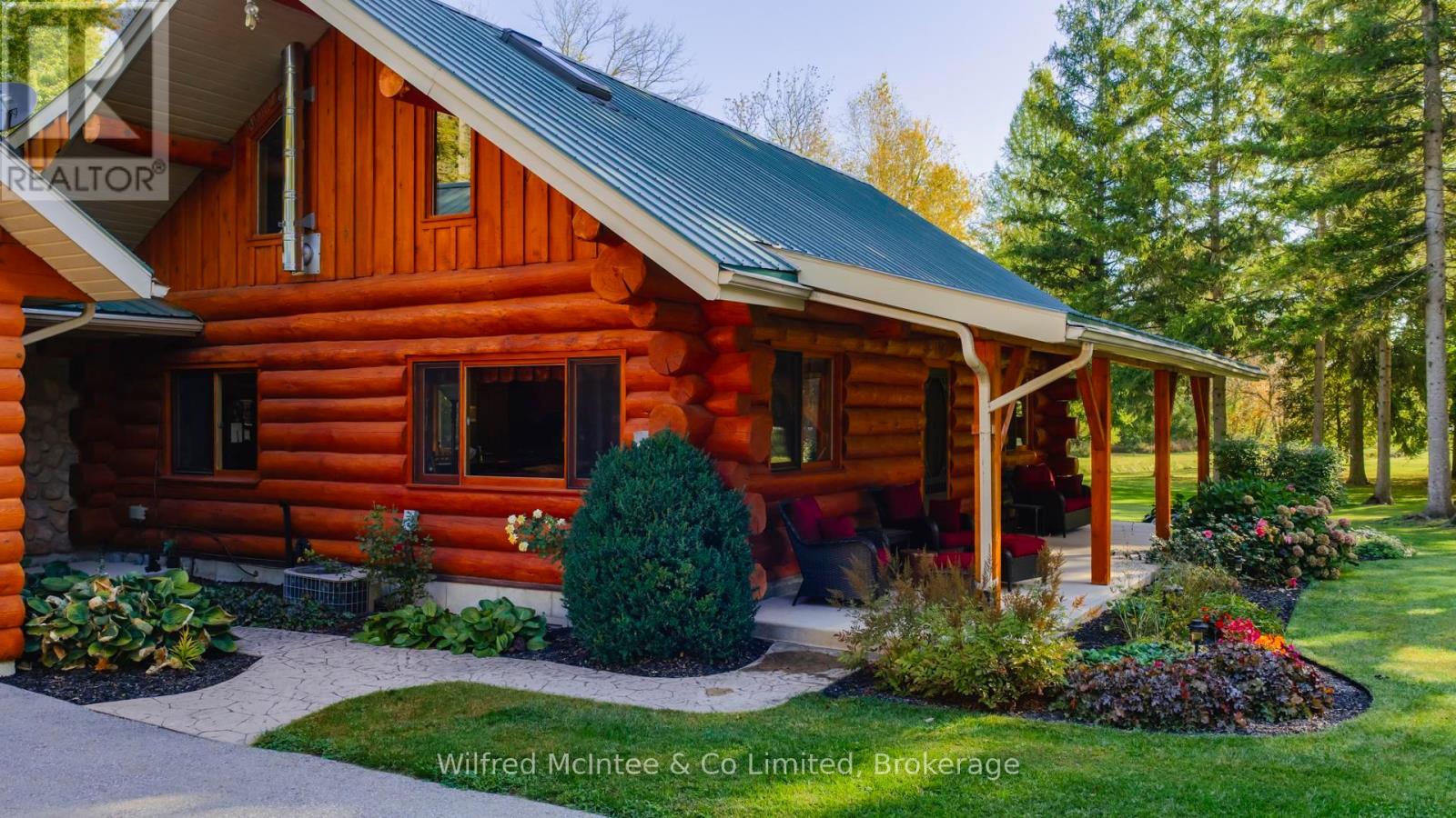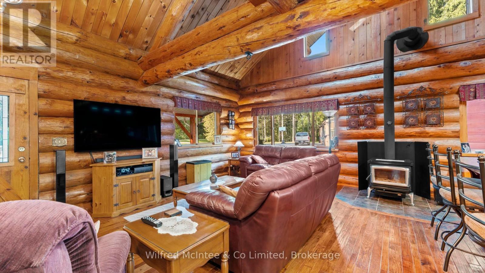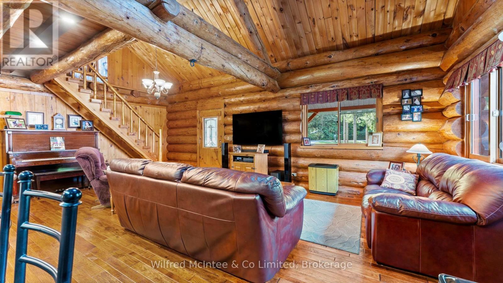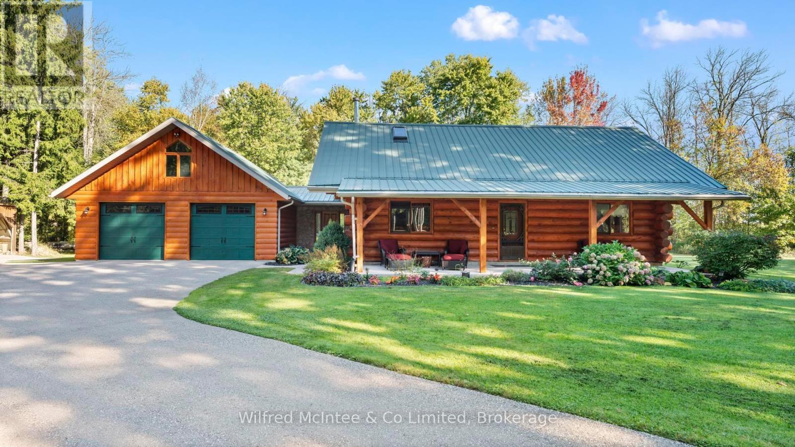 Discover this beautiful log cabin home set on 6 private wooded acres, just 10 minutes from Walkerton and 30 minutes to Bruce Power. Perfectly tucked away, the property offers a cottage-like feel with trails throughout the bush for walking or cross-country skiing. The home features open-concept living with hardwood floors, high-end finishes, and plenty of natural charm. There's one bedroom on the main floor, a loft currently used as a second bedroom, and an additional bedroom in the finished basement. The basement also includes a spacious rec room and a 2-piece bath, offering great space for family and guests. Outdoors, enjoy a paved driveway, fully landscaped yard, large patio, hot tub, and an impressive 24' x 52' workshop, with 24' x 40' heated space. A large 2-car garage with a storage loft above provides additional potential for a future rec room, man/lady cave, or hobby space. With high-speed fibre internet now available, this property blends the peace of country living with modern convenience. A true private retreat. Ideal as a year-round residence or a peaceful getaway. (41384007)