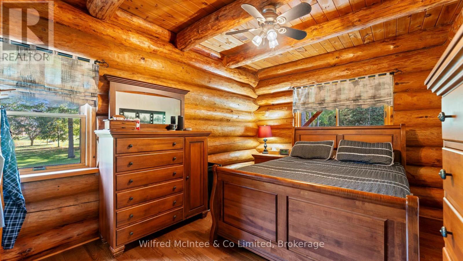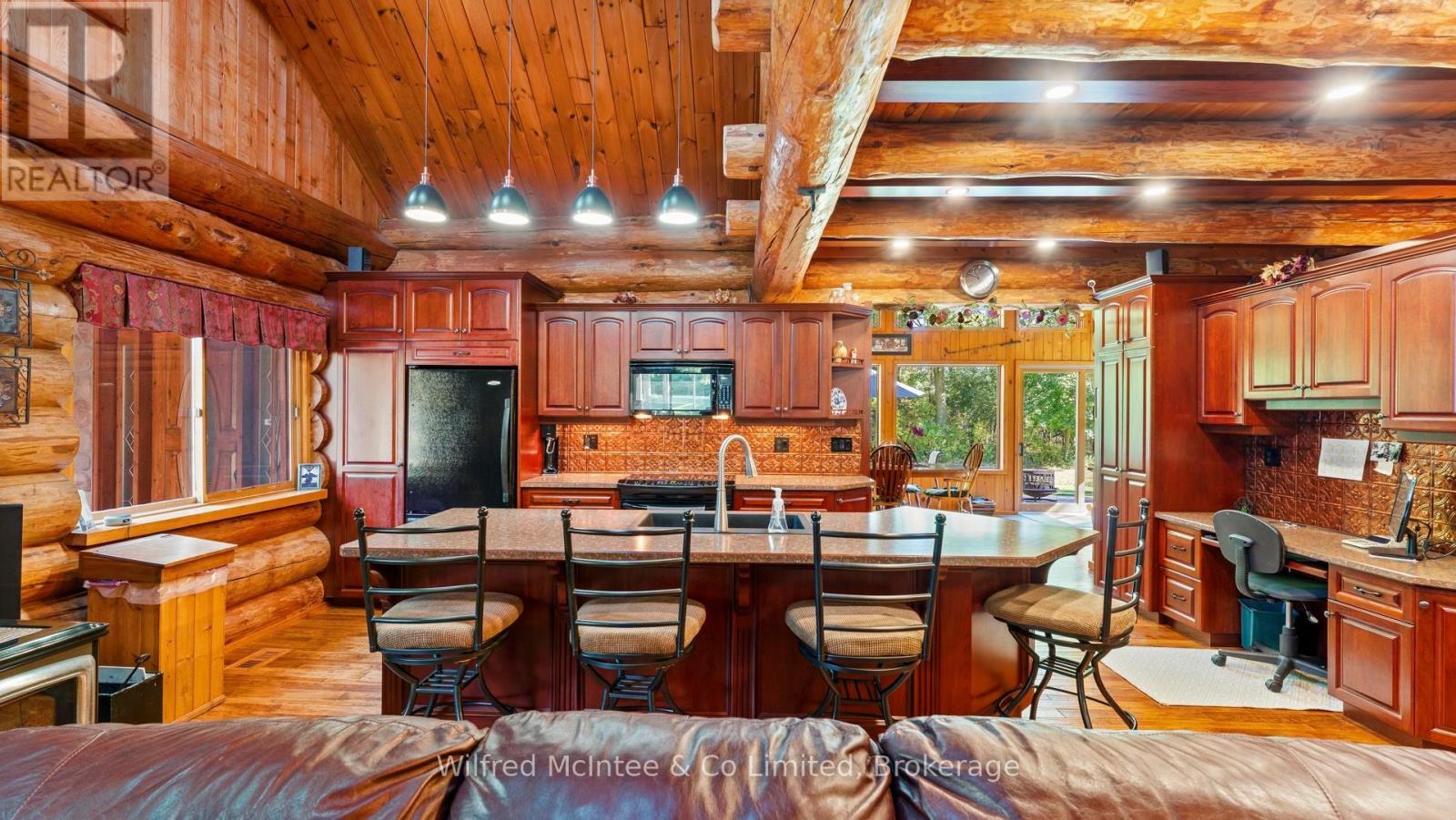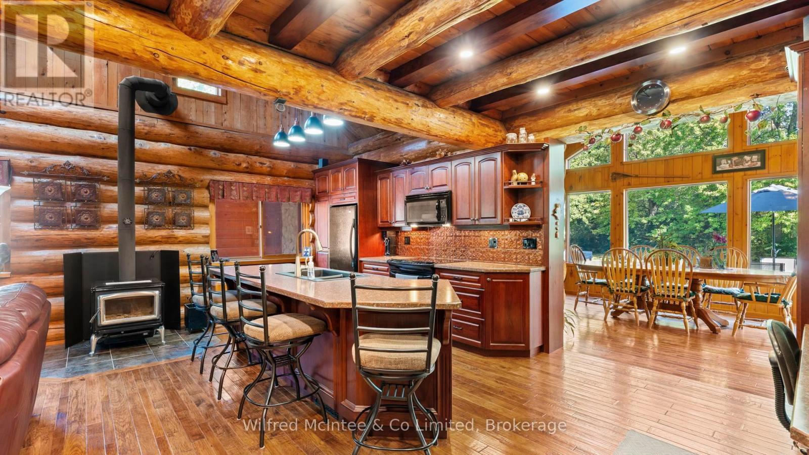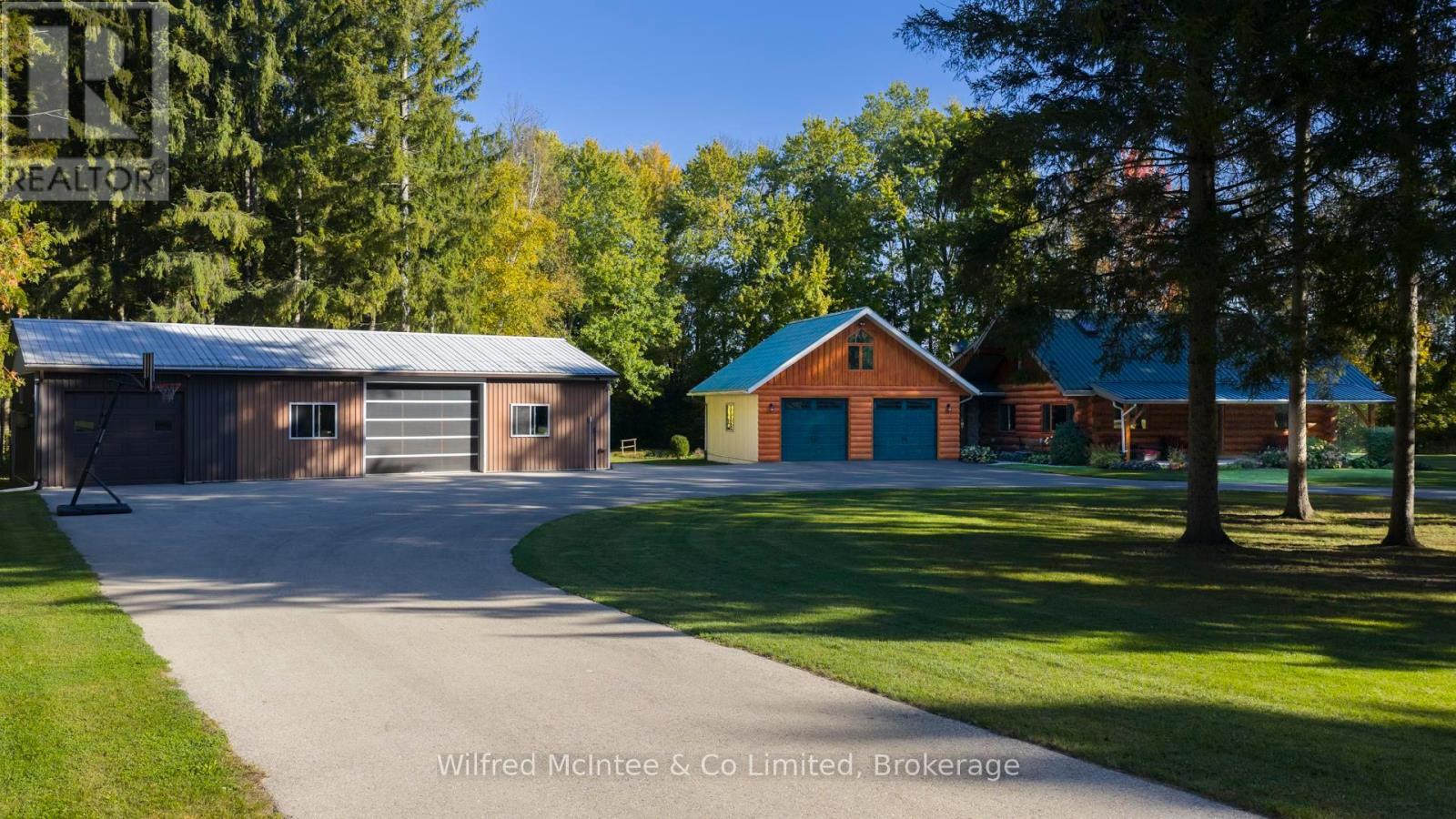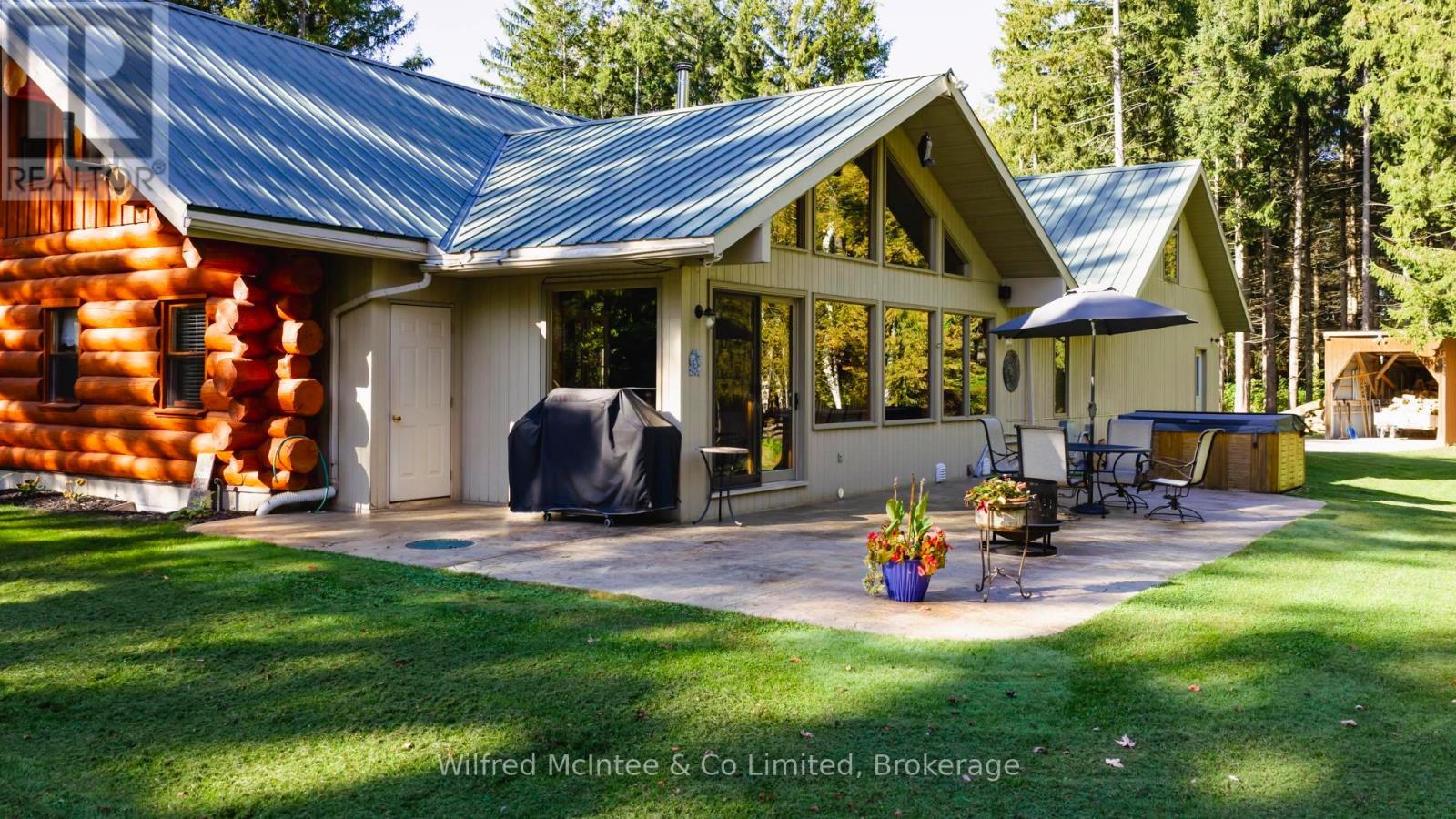 Discover this beautiful log cabin home set on 6 private wooded acres, just 10 minutes from Walkerton and 30 minutes to Bruce Power. Perfectly tucked away, the property offers a cottage-like feel with trails throughout the bush for walking or cross-country skiing. The home features open-concept living with hardwood floors, high-end finishes, and plenty of natural charm. There's one bedroom on the main floor, a loft currently used as a second bedroom, and an additional bedroom in the finished basement. The basement also includes a spacious rec room and a 2-piece bath, offering great space for family and guests. Outdoors, enjoy a paved driveway, fully landscaped yard, large patio, hot tub, and an impressive 24' x 52' workshop, with 24' x 40' heated space. A large 2-car garage with a storage loft above provides additional potential for a future rec room, man/lady cave, or hobby space. With high-speed fibre internet now available, this property blends the peace of country living with modern convenience. A true private retreat. Ideal as a year-round residence or a peaceful getaway. (41384007)