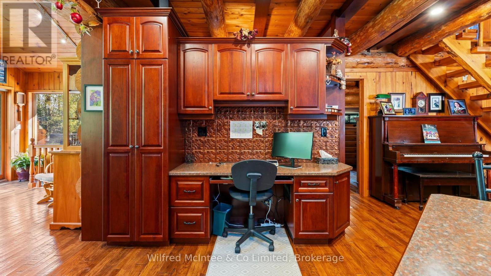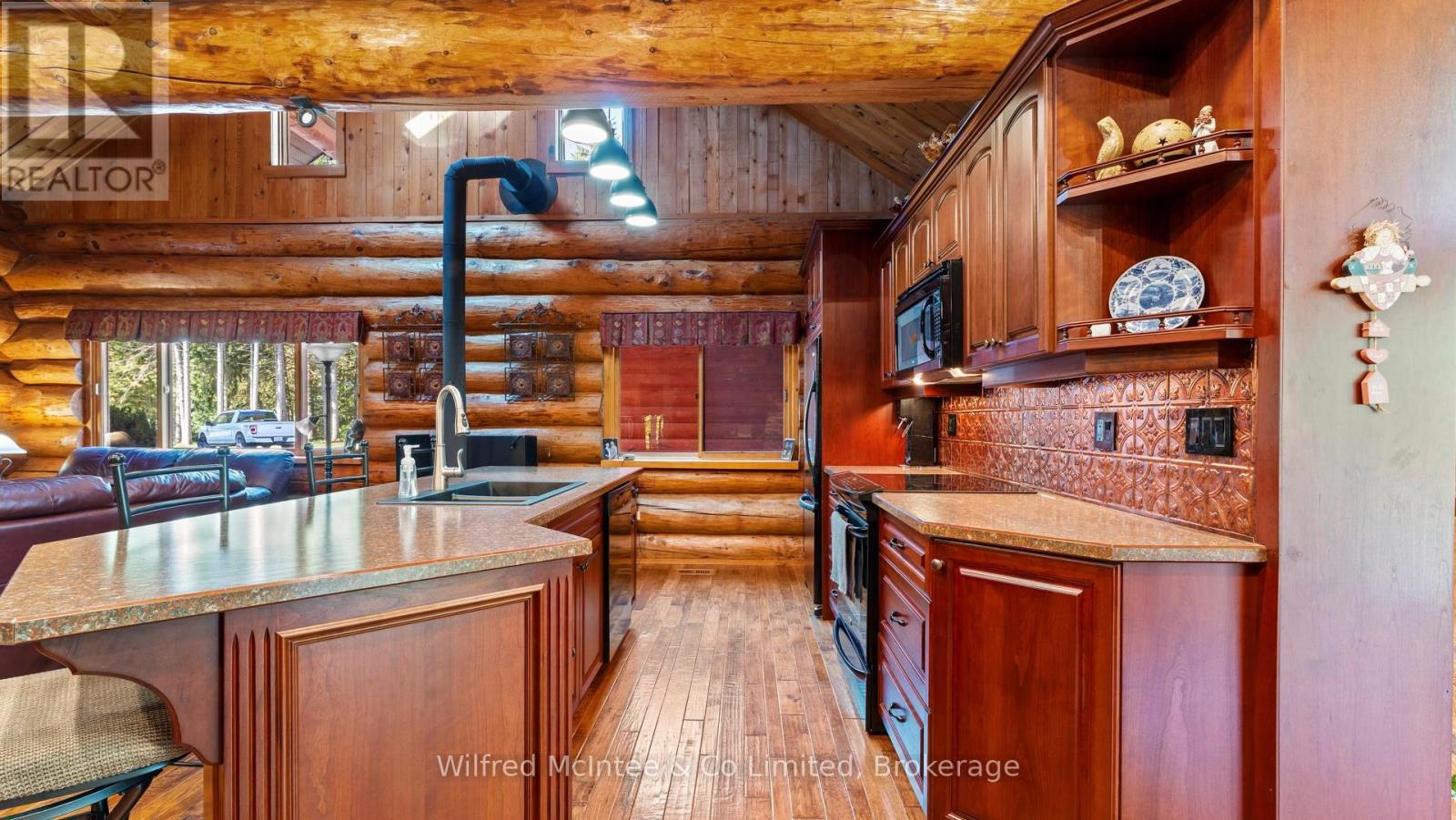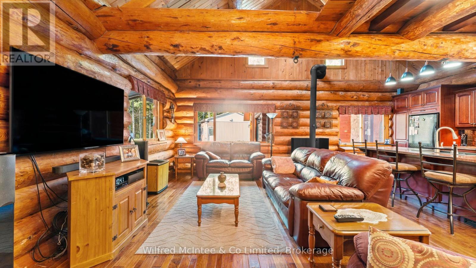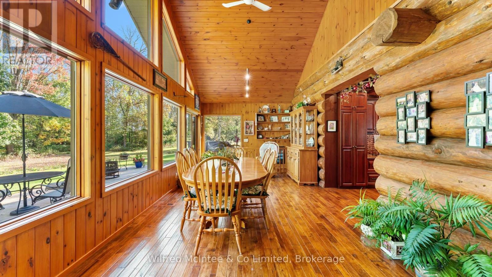 Discover this beautiful log cabin home set on 6 private wooded acres, just 10 minutes from Walkerton and 30 minutes to Bruce Power. Perfectly tucked away, the property offers a cottage-like feel with trails throughout the bush for walking or cross-country skiing. The home features open-concept living with hardwood floors, high-end finishes, and plenty of natural charm. There's one bedroom on the main floor, a loft currently used as a second bedroom, and an additional bedroom in the finished basement. The basement also includes a spacious rec room and a 2-piece bath, offering great space for family and guests. Outdoors, enjoy a paved driveway, fully landscaped yard, large patio, hot tub, and an impressive 24' x 52' workshop, with 24' x 40' heated space. A large 2-car garage with a storage loft above provides additional potential for a future rec room, man/lady cave, or hobby space. With high-speed fibre internet now available, this property blends the peace of country living with modern convenience. A true private retreat. Ideal as a year-round residence or a peaceful getaway. (41384007)