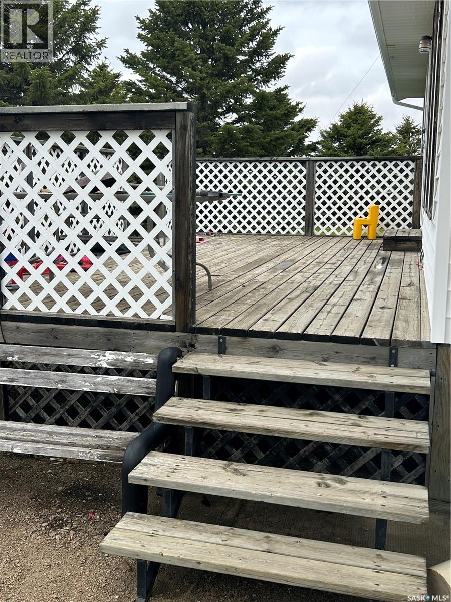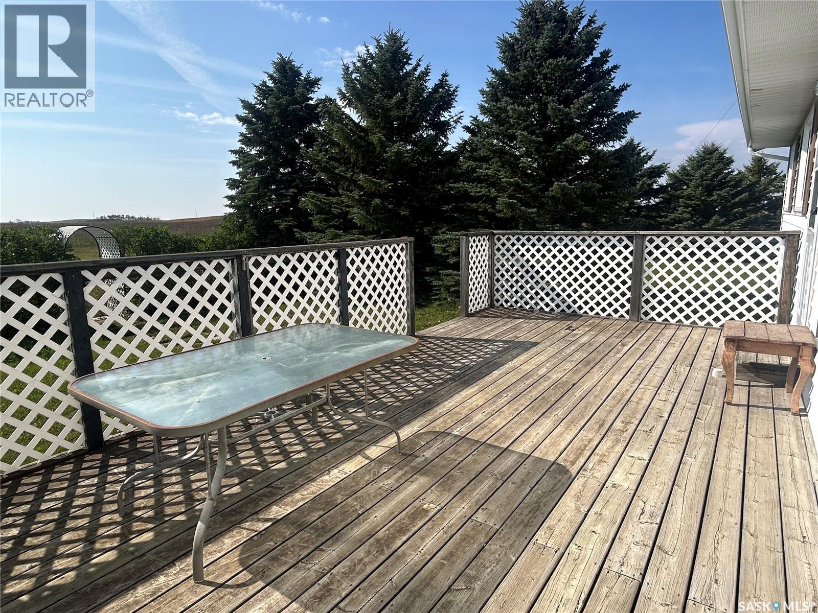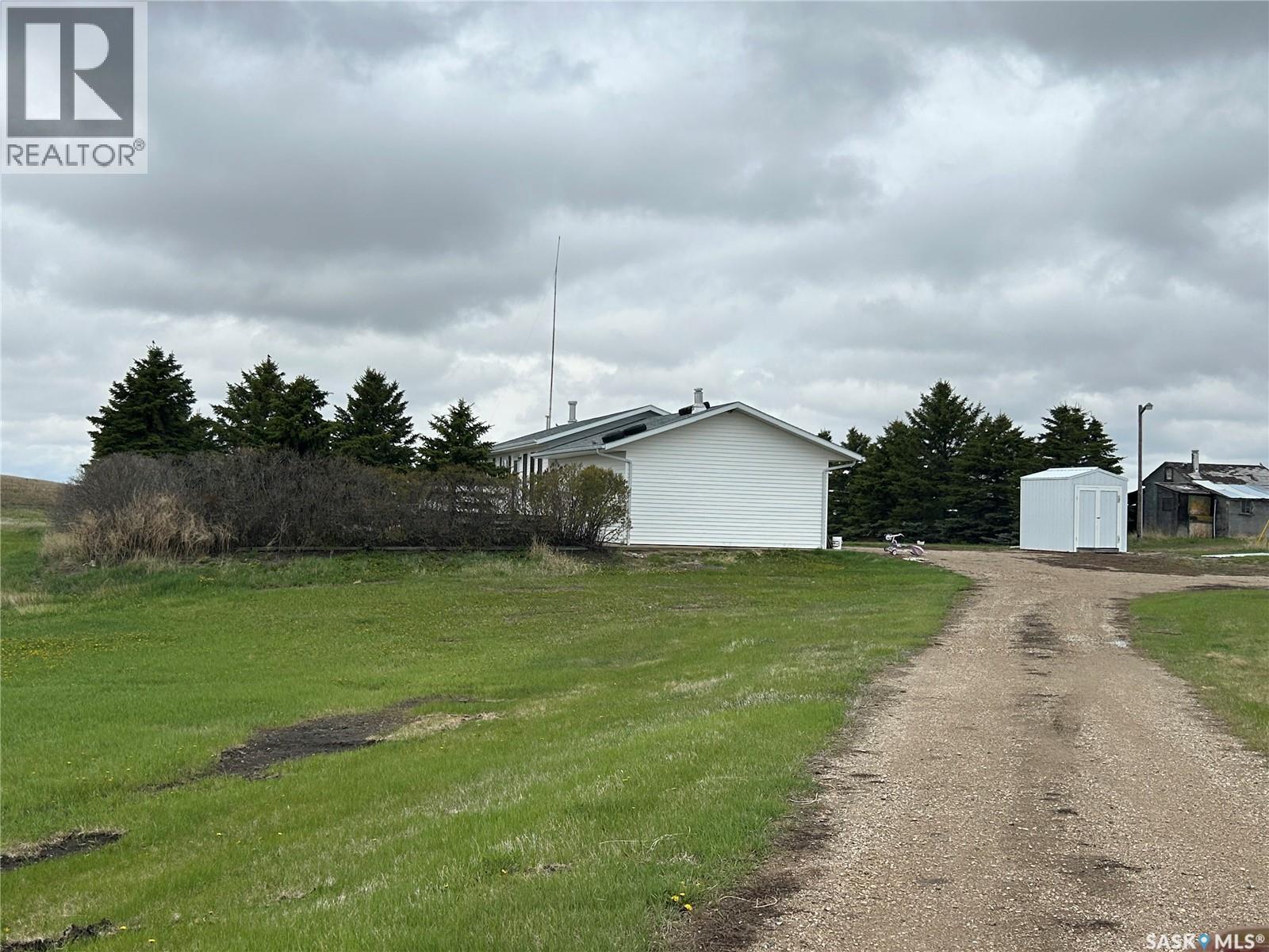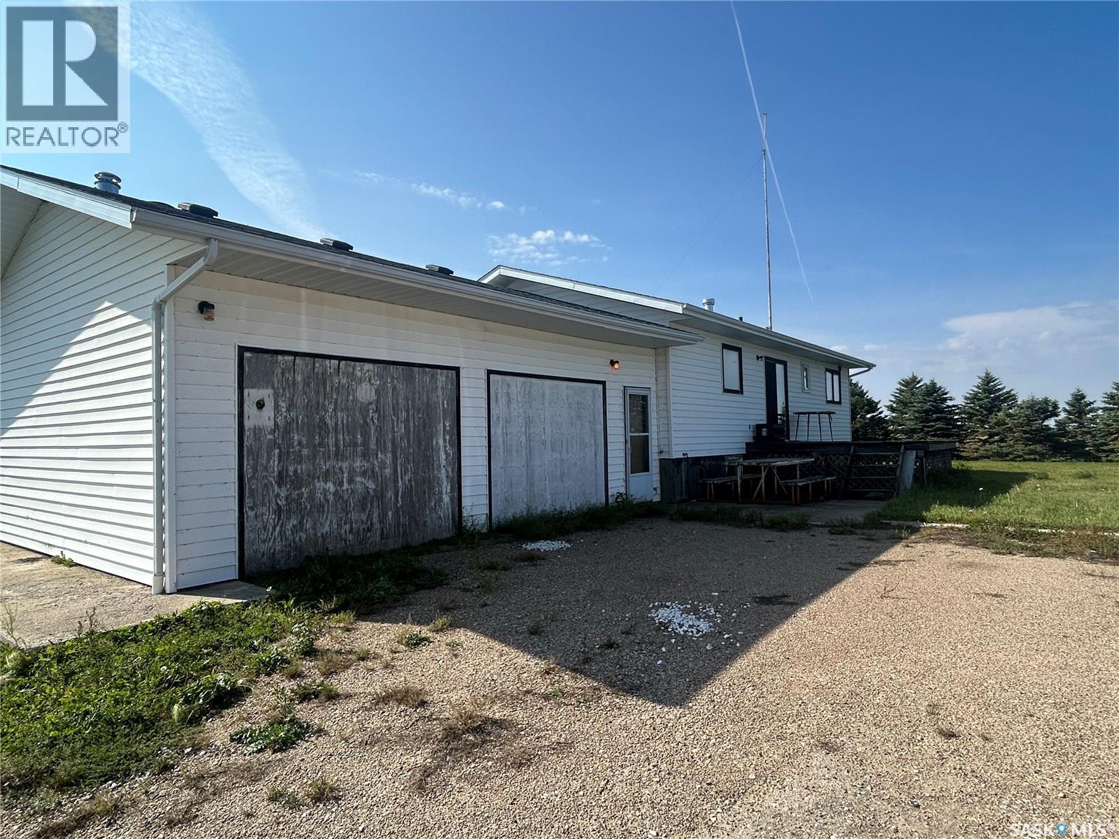 Dreaming about country life? This might be the property for you! This home was built in 1989 with a double attached garage. Situated on a 30 acre parcel south of hwy 15 in the RM of Wood Creek, this acreage offers privacy and tons of space for outdoor living, hobby farming, or just enjoying the outdoors. South facing living room shares a vaulted ceiling with the north facing kitchen/dining room. A 4 pc bathroom (recently updated) and 3 bedrooms complete the main level. Basement is partially finished with walls insulated/drywalled and concrete floors. Layout has a large family room (currently used as a bedroom), a rough in for 3 pc bath, bedroom and utility/laundry room. Double garage has gravel floor and currently houses the cistern. Heat source is an electric furnace. Sewer system pumps out to lagoon. Shingles were updated approx 2018, Exterior is vinyl siding. Outside the terrain is rolling, with tons of room for future development of a shop, second home, or whatever your heart desires. Great upside potential for a buyer with carpentry skills! (28963382)
