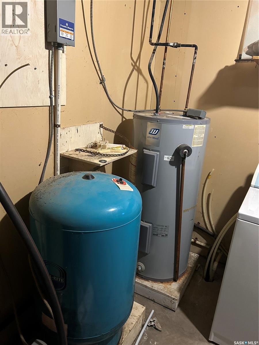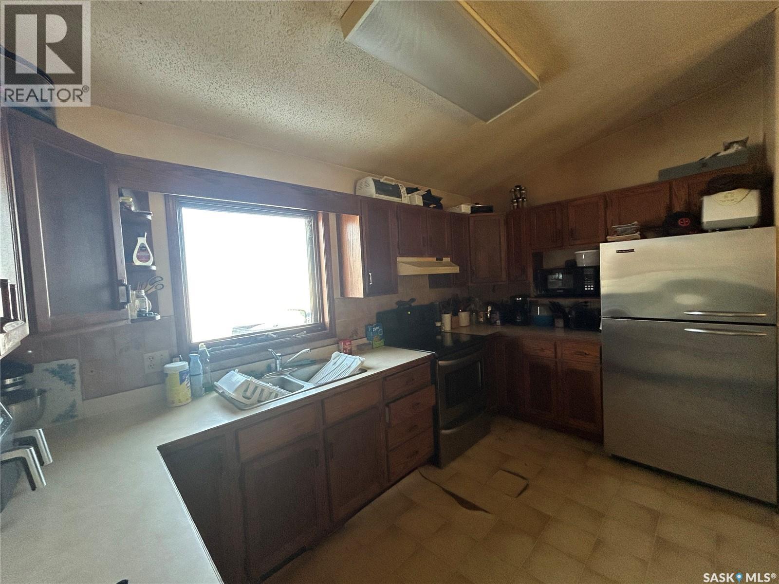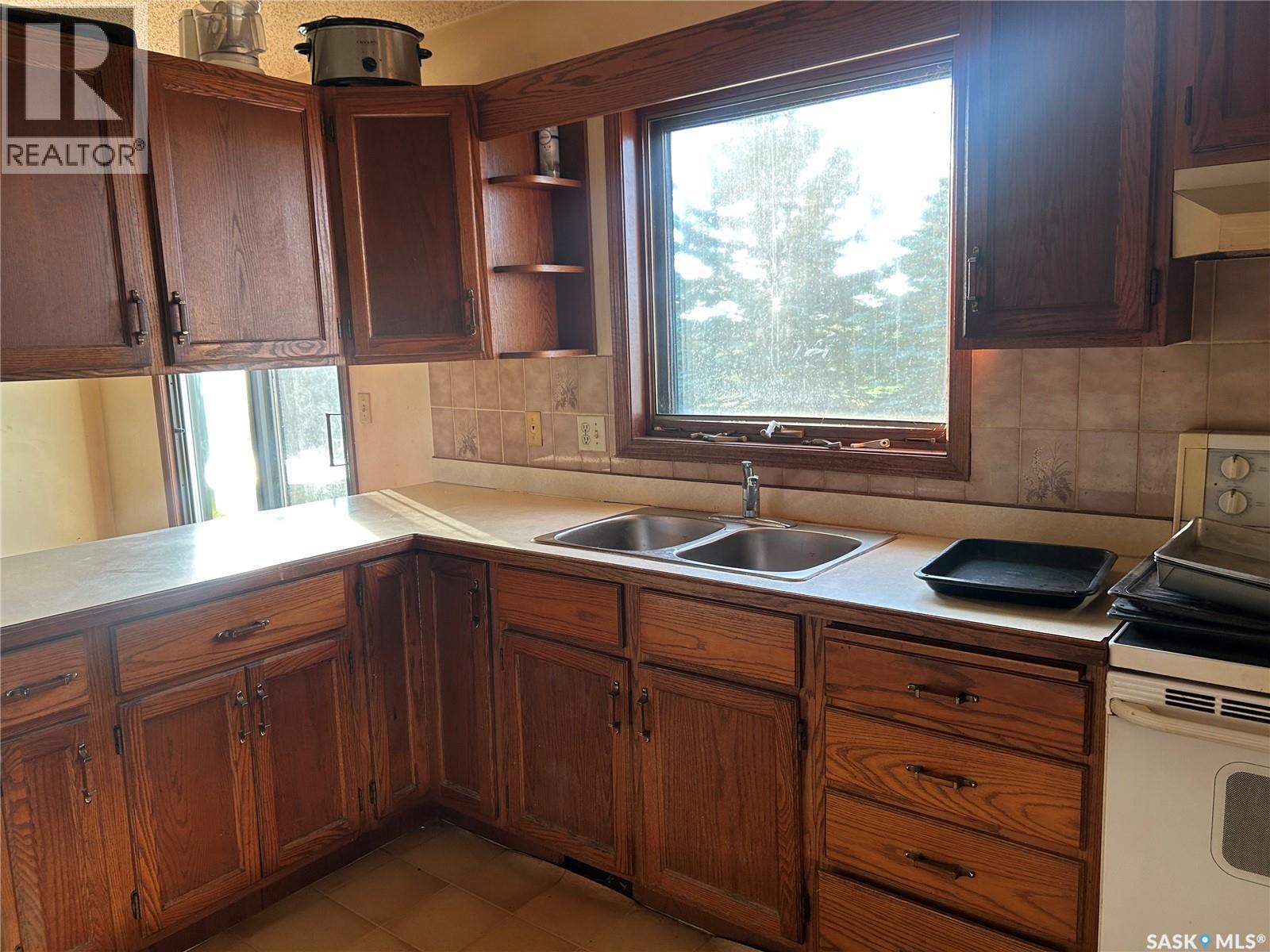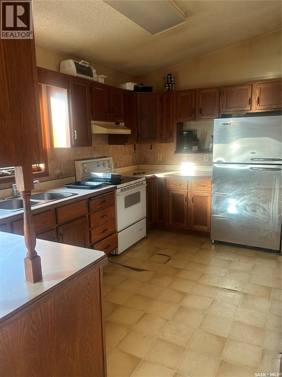 Dreaming about country life? This might be the property for you! This home was built in 1989 with a double attached garage. Situated on a 30 acre parcel south of hwy 15 in the RM of Wood Creek, this acreage offers privacy and tons of space for outdoor living, hobby farming, or just enjoying the outdoors. South facing living room shares a vaulted ceiling with the north facing kitchen/dining room. A 4 pc bathroom (recently updated) and 3 bedrooms complete the main level. Basement is partially finished with walls insulated/drywalled and concrete floors. Layout has a large family room (currently used as a bedroom), a rough in for 3 pc bath, bedroom and utility/laundry room. Double garage has gravel floor and currently houses the cistern. Heat source is an electric furnace. Sewer system pumps out to lagoon. Shingles were updated approx 2018, Exterior is vinyl siding. Outside the terrain is rolling, with tons of room for future development of a shop, second home, or whatever your heart desires. Great upside potential for a buyer with carpentry skills! (28963382)