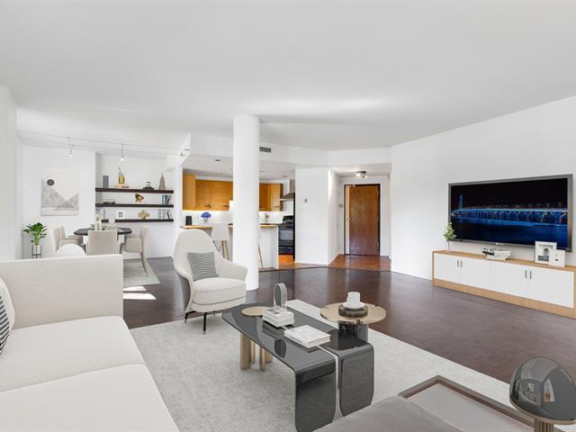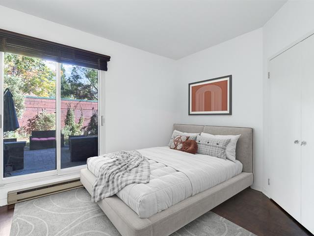 Ideally located near Atwater Market, the Lachine Canal, and the bike path, this 1,230 sq. ft. 2 spacious bedroom corner unit condo stands out for its large private garden of approximately 1,350 sq. ft., a rarity in the city. The 10-foot ceiling living area combines a living room, dining room, and designer kitchen with appliances included. The master bedroom overlooks the intimate garden, while the second bedroom offers direct access to the outdoors. Modern bathroom with slate, 10' x 6.5' balcony, abundant windows, central air conditioning. Concrete building with elevator and storage B23. Ready to move in! (44469571)