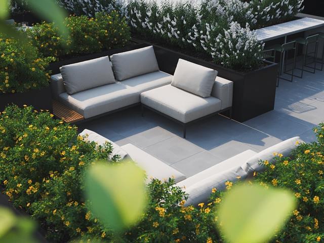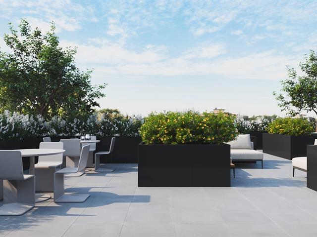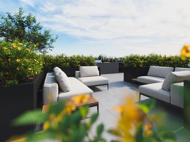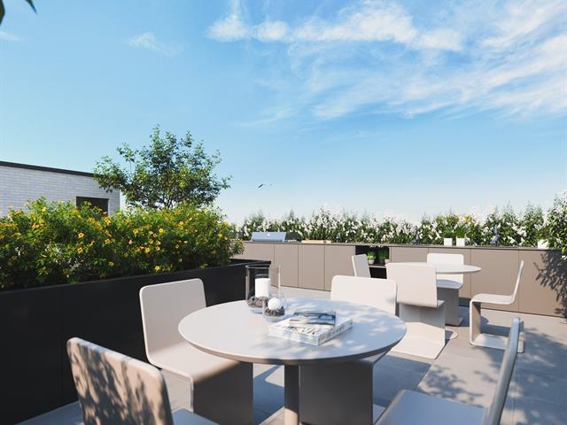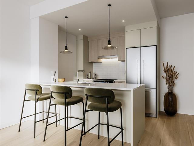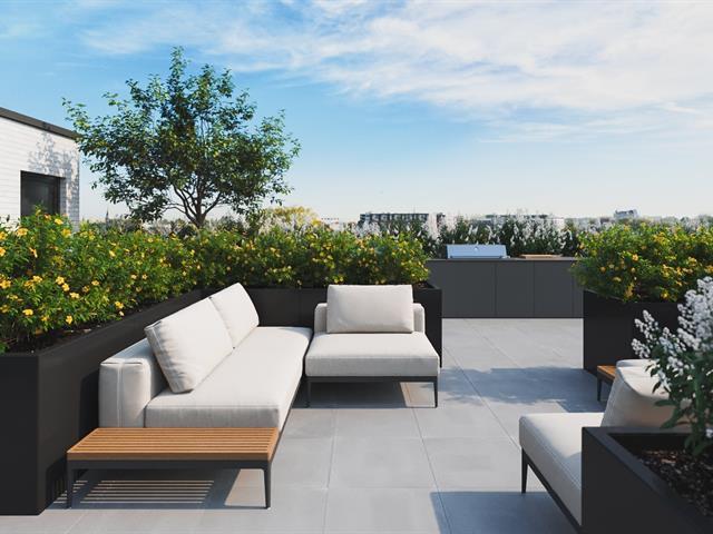 Promotion $75 per month discount.Spacious 3 1/2 corner apartment of 741 sq. ft.! Quiet because it is very well located at the back. Large balcony.A/C. Huge shared rooftop terrace. Advantageous location right across from the Fabre metro station and straddling Rosemont and Villeray. You can live a local life where it is pleasant to walk in these two neighborhoods with its friendly shops and the Jean-Talon market. Only 9 metro stations and you are downtown! Elevator, garage available at $100 per month. For optimal soundproofing, "Le Fabre" is built in concrete as well as high-end windows by the renowned "Alumilex". (55717081)