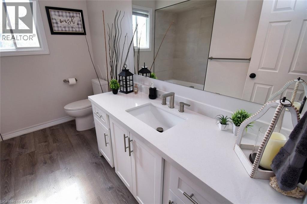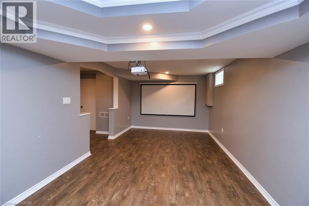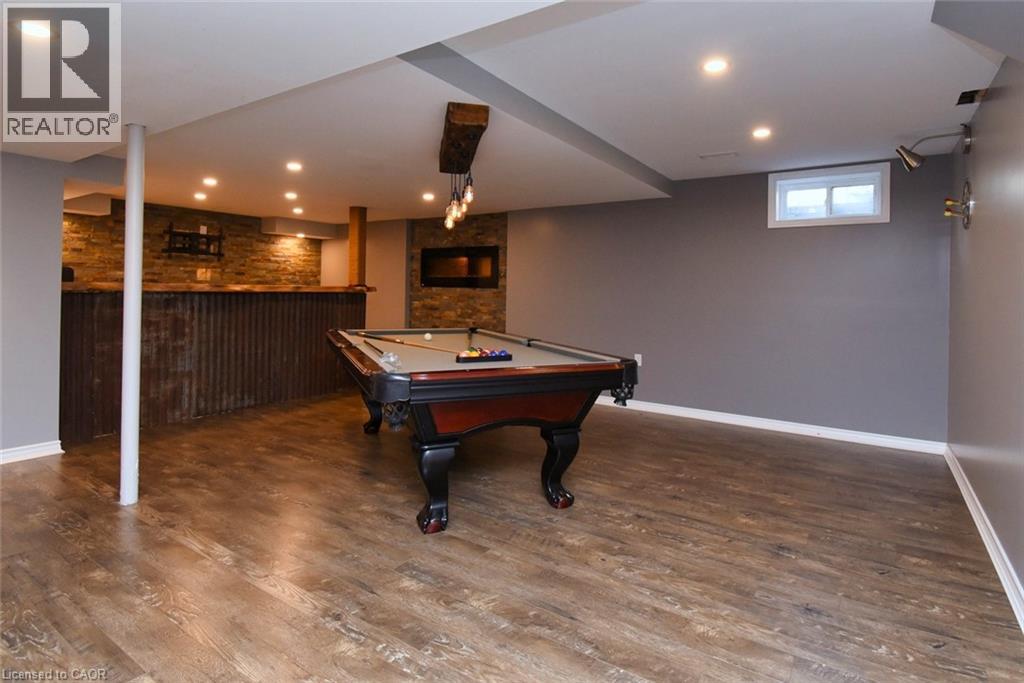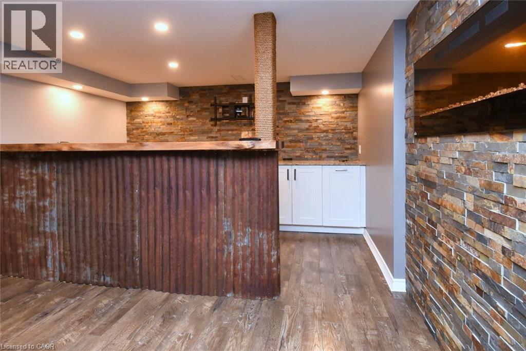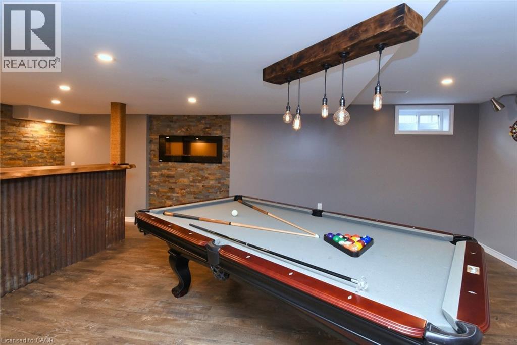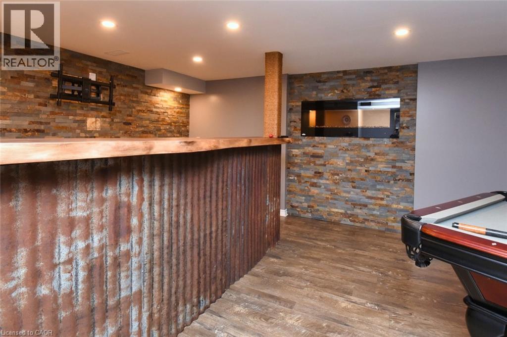 This beautiful 2 storey, 3.5 bathroom sits on pie shape lot in Prime Stoney Creek location. (36.52 x 172) 120 across in the back. Loads of features includes to brand new renovated upstairs bath & ensuite with his/hers sink with quartz counter tops, new flooring, paint, lighting, shower tile, facets. Hardwood floors & vinyl floors through-out (carpet free) beautiful staircase with iron spindles. Large sunken family room with gas fireplace. Bright large Eat-in Kitchen with stainless appliances. Totally finished lower level with vinyl flooring, pot lights, 3 piece bathroom, electric fireplace, wet bar and home theatre screen and projector. Beautiful modern kitchen with quartz counter tops. Heated garage. Large private pie shaped backyard to entertain your family & friends. Minutes to highway Toronto & Niagara, Costco and Lake. A must see, turn key move in condition. (69725226)