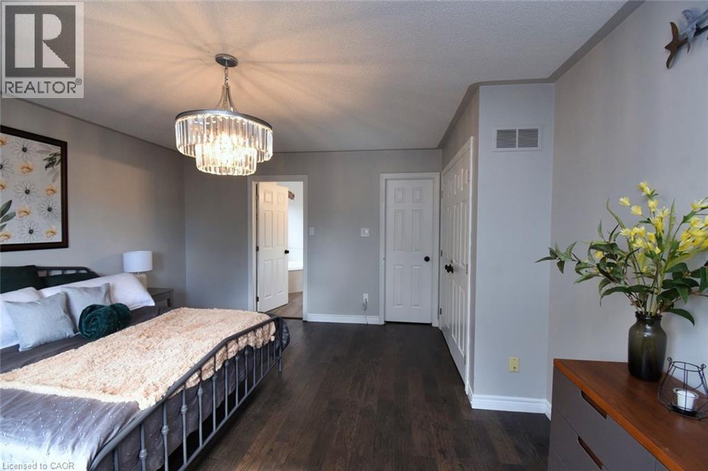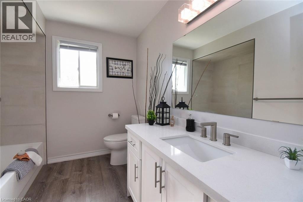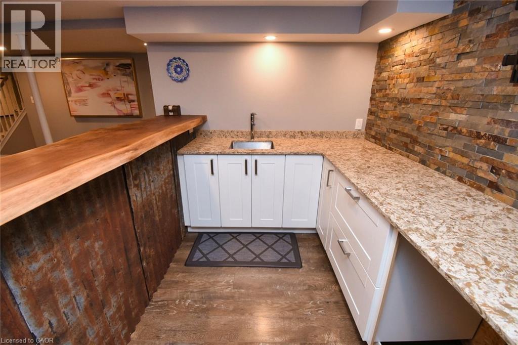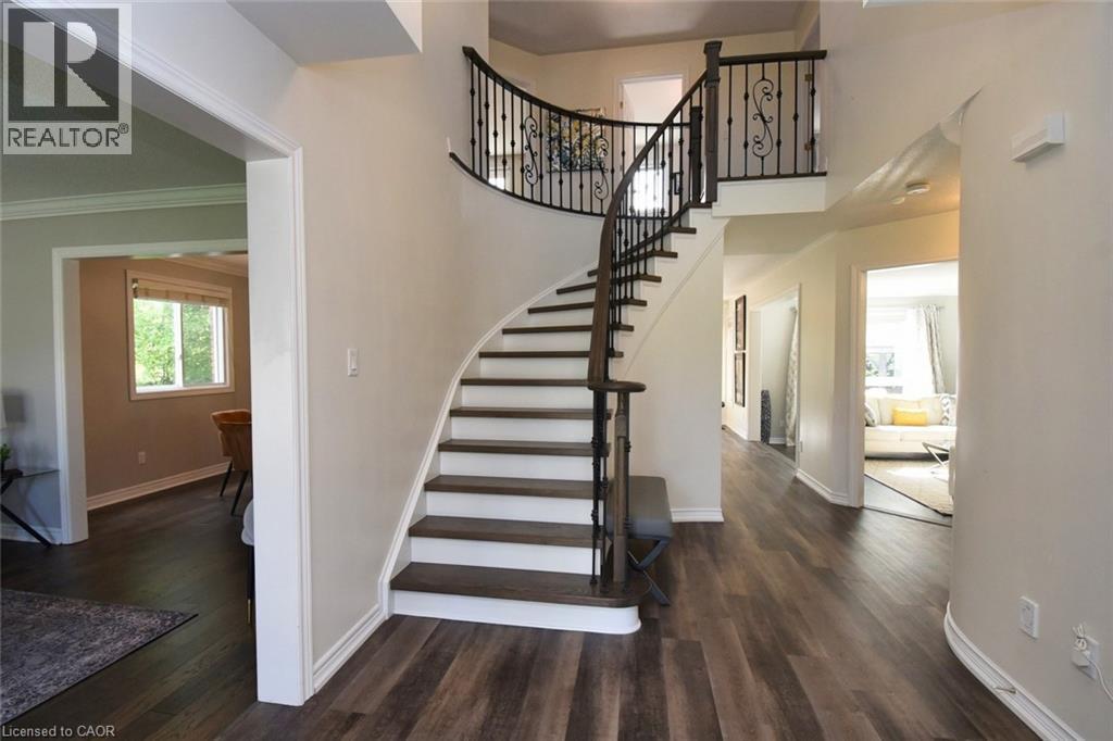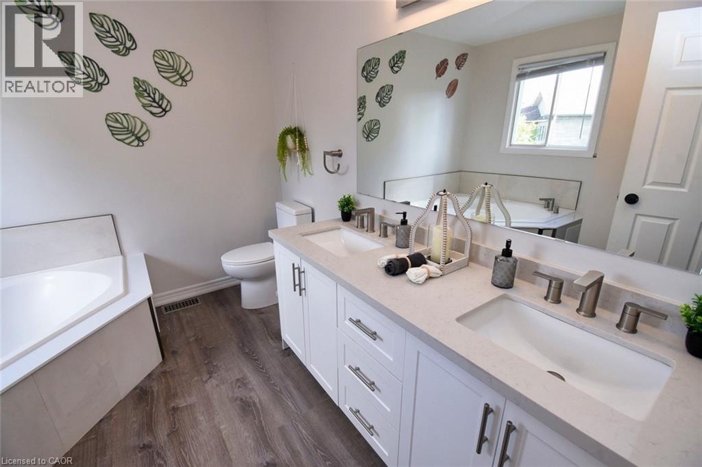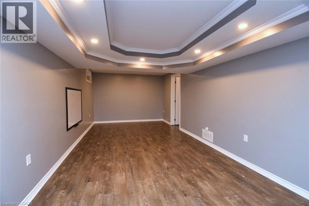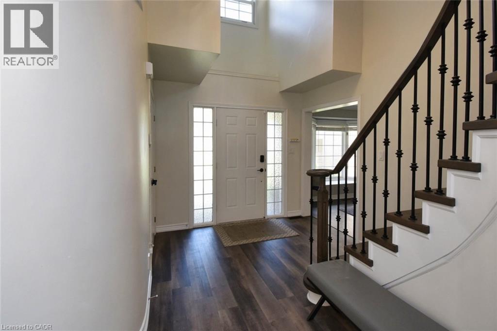 This beautiful 2 storey, 3.5 bathroom sits on pie shape lot in Prime Stoney Creek location. (36.52 x 172) 120 across in the back. Loads of features includes to brand new renovated upstairs bath & ensuite with his/hers sink with quartz counter tops, new flooring, paint, lighting, shower tile, facets. Hardwood floors & vinyl floors through-out (carpet free) beautiful staircase with iron spindles. Large sunken family room with gas fireplace. Bright large Eat-in Kitchen with stainless appliances. Totally finished lower level with vinyl flooring, pot lights, 3 piece bathroom, electric fireplace, wet bar and home theatre screen and projector. Beautiful modern kitchen with quartz counter tops. Heated garage. Large private pie shaped backyard to entertain your family & friends. Minutes to highway Toronto & Niagara, Costco and Lake. A must see, turn key move in condition. (69725226)