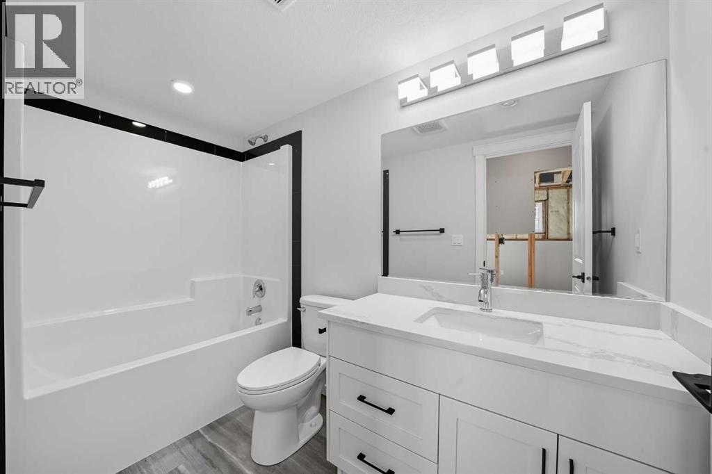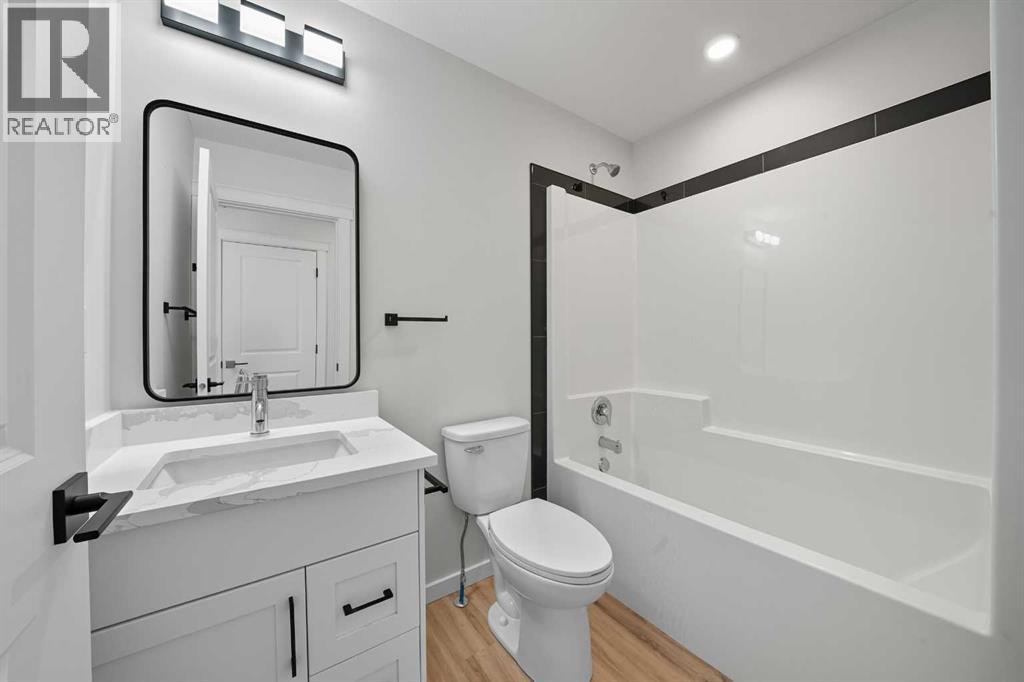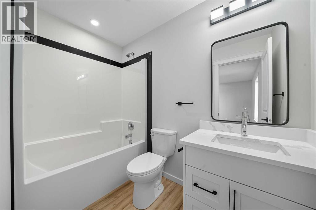 Step right in to this brand new home with a practical and functional floorplan, ideal for a growing family. IMPRESSIVE CURB APPEAL sets the tone- modern architectural lines, striking exterior finishes, and a welcoming front entry that feels fresh and inviting! Inside you will be wowed by the contemporary design, where clean lines, airy open spaces, and thoughtfully chosen finishes come together to create a home that feels both STYLISH and livable. High-end materials, sleek cabinetry, and high-end luxury vinyl plank flooring gives every room a polished, magazine worthy look, while large windows flood the home with natural light.. The main floor features an OPEN CONCEPT, 3 bedrooms, a four-piece bathroom, living room, dining and kitchen. Kitchen features: corner pantry with censored lighting, QUARTZ COUNTERTOPS, soft close doors and drawers, FULL POLISHED BLACK SUBWAY TILE, water line to the fridge, STAINLESS STEEL APPLIANCES, Undermount granite sink and black hardware. Shingles are 35-year asphalt, foundation is (ICF) insulated concrete form. The basement has been mostly wired and features a finished four-piece bathroom. Future floor plan for basement is available and features 2 spacious bedrooms, and a generous size family/recreational room. Plus the utility room where you will find the laundry and roughed in in-floor heat. PROGRESSIVE 10-year NEW HOME WARRANTY! The 20x24 double attached garage has rough in for heat, a floor drain and soft close modern overhead doors with driftwood finish. Other great features include: whitewash pine VAULTED CEILINGS on main floor, beams in living, dining and kitchen, electric fireplace in living room has feature wall with a wood mantle, commercial grade hot water tank, 35 year shingles, LED lighting and QUARTZ countertops throughout. Every detail in this show home has been carefully curated to showcase the latest in modern trends and craftsmanship- a perfect blend of function and flair. It’s a home that doesn't just impress at firs t glance. but continues to inspire as you explore every beautiful space. (31214040)