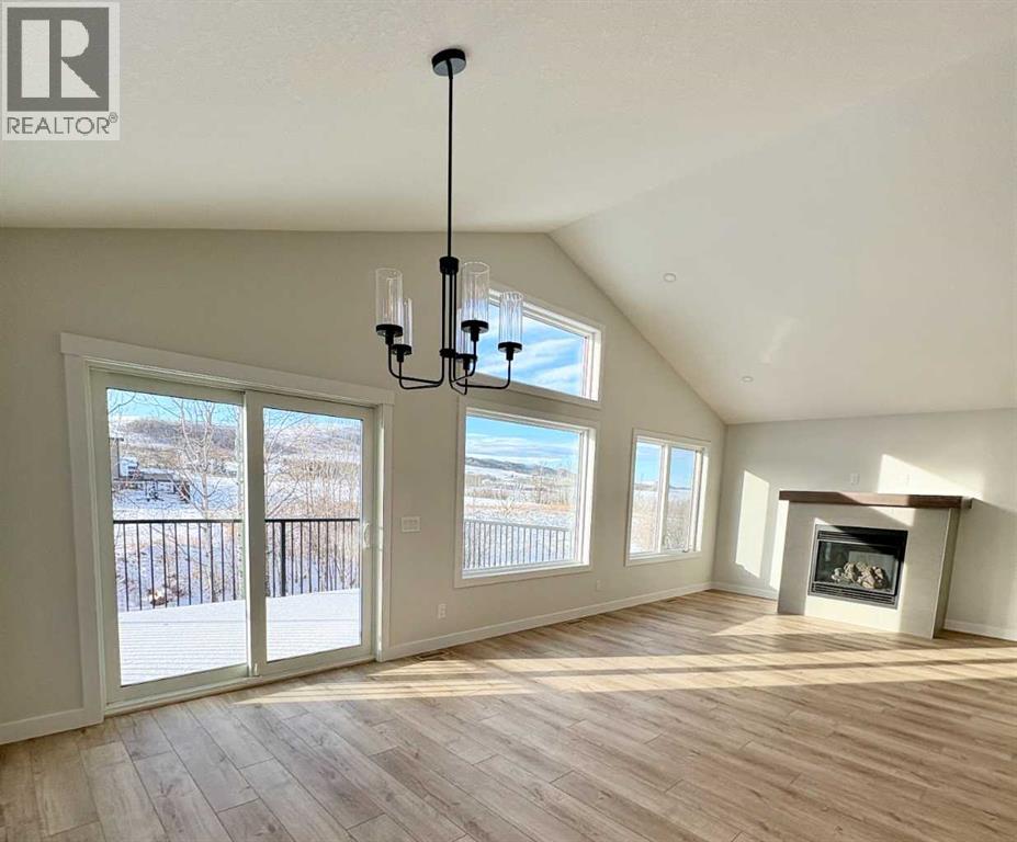 Welcome to a stunning and stylish Woodmaster Homes built bungalow on an amazing lot with a large, bright TRIPLE attached garage, this is a home with VIEWS of the foothills and lots of trees behind the lot. This well thought out plan features Luxury Vinyl Plank flooring through out, and a large kitchen with a spacious island, eating bar and pantry. You will LOVE the bright sunshine that comes through the floor to ceiling triple paned windows that look out over your private west facing backyard and a wonderful large vinyl rear deck which is complete with a gas line, perfect for sitting outside and taking in the fresh air and amazing views. This open concept floorplan has vaulted ceilings and has been designed with plenty of space for dining and entertaining. The living room is bright and inviting and includes a fireplace for ambiance and warmth. The primary bedroom is large and bright with a great walk in closet and there is a 4 piece ensuite with an upgraded shower and 10MM door. A large second bedroom and a spacious laundry room complete the main floor. Downstairs you will find large bright windows and partial basement development which includes the framing and the tub installed in the bathroom, there is also a separate entrance into the basement from the garage. This opens up endless opportunities for working from home or applying for a home based business. Other significant upgrades include Hardie Board Siding, an insulated and drywalled garage, and the front landscaping completed. This home will come with New Home Warranty. The builder can also finish the basement if a buyer would like so please ask about this opportunity. (31216262)