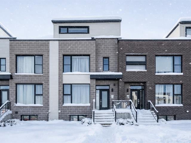 ** REMARKABLE 2022 TOWNHOUSE, PRIVATE DOUBLE GARAGE & MEZZANINE ** Square Candiac area. Offers generously sized & bright rooms. Open ground floor, 9ft ceilings. Beautiful kitchen, numerous cabinets, very large quartz work surface. 3 bedrooms on the 2nd floor, laundry room on the mezzanine on the 3rd floor with multipurpose room, bedroom, office, family room or other depending on your needs, the basement offers the same options! Central heating/air conditioning system. Access to the garage from the basement. 2 superb terraces, ground floor and mezzanine. Project with shared pool + large central park with playground. See addendum for details (45237161)