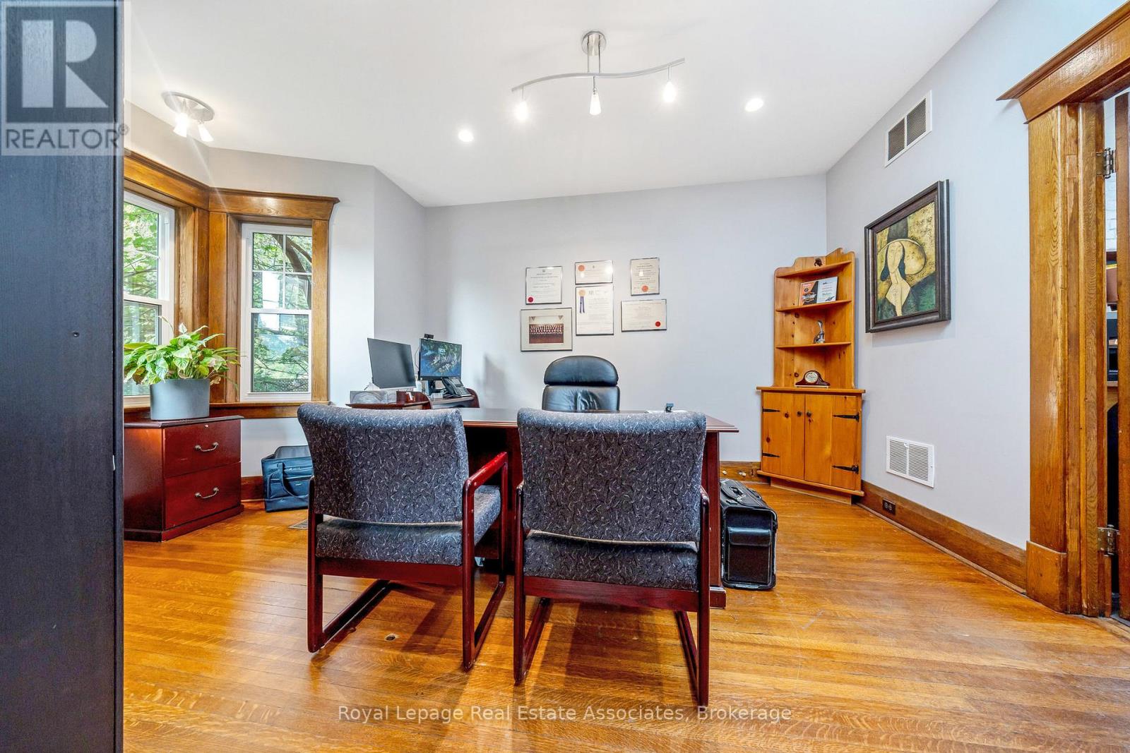 Historic Charm Meets Modern Comfort in the Heart of Milton. Welcome to 142 Martin Street, a beautifully restored century home (circa 1920) located on a generous lot just steps from downtown Milton. Rich in character and timeless appeal, this stately property boasts original interior doors, trim, and a grand staircase that have been lovingly preserved. The refinished original hardwood floors and soaring ceilings create a warm, elegant atmosphere, while the inviting front porch adds a touch of classic charm. Thoughtfully updated for todays lifestyle, the home features modernized essentials including the roof, windows, electrical, and HVAC systems offering peace of mind without compromising its heritage. Currently configured as a professional office space, the layout provides flexibility and can be easily converted back into a stunning family residence. Located in a sought-after neighbourhood surrounded by newly renovated and expanded homes, and just steps to the newly revamped Martin Street Public School, this unique property presents a rare opportunity to own a piece of Milton's history while enjoying all the conveniences of downtown living. (41406870)