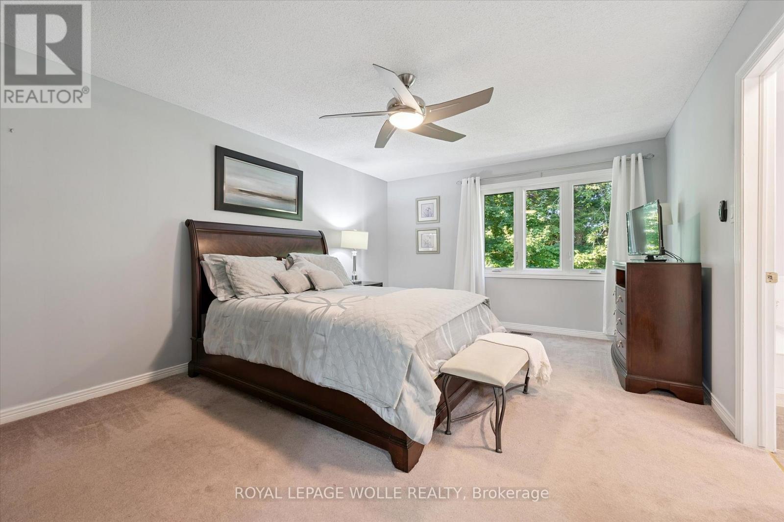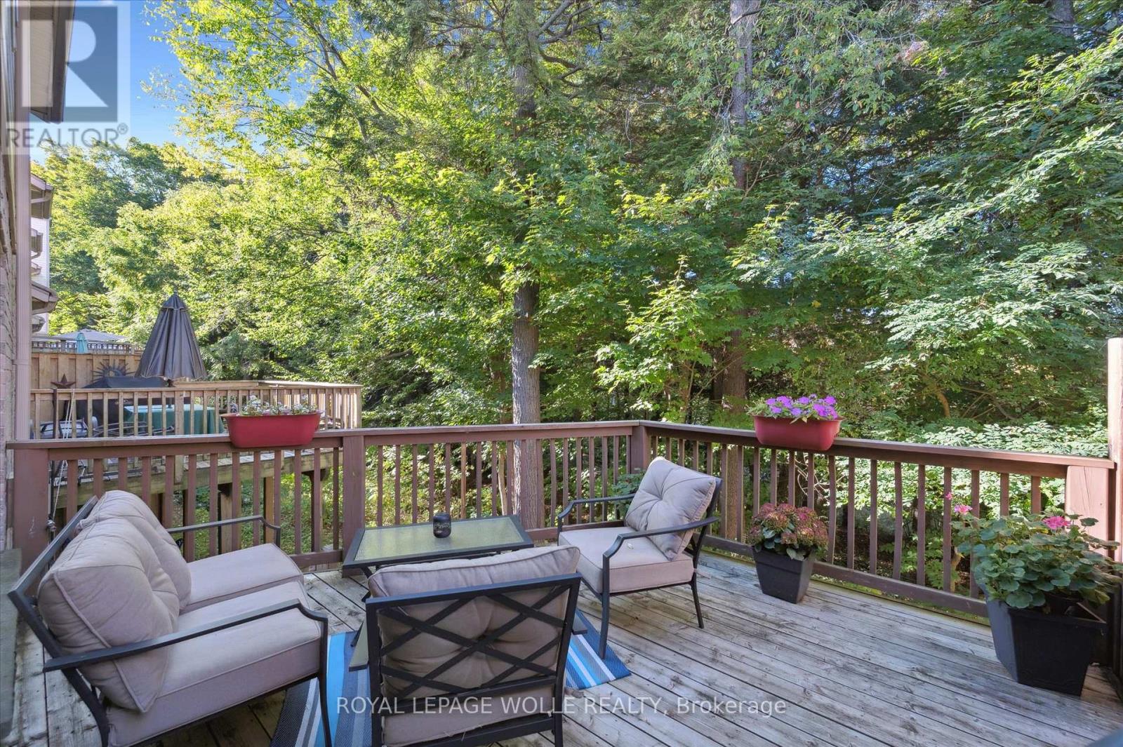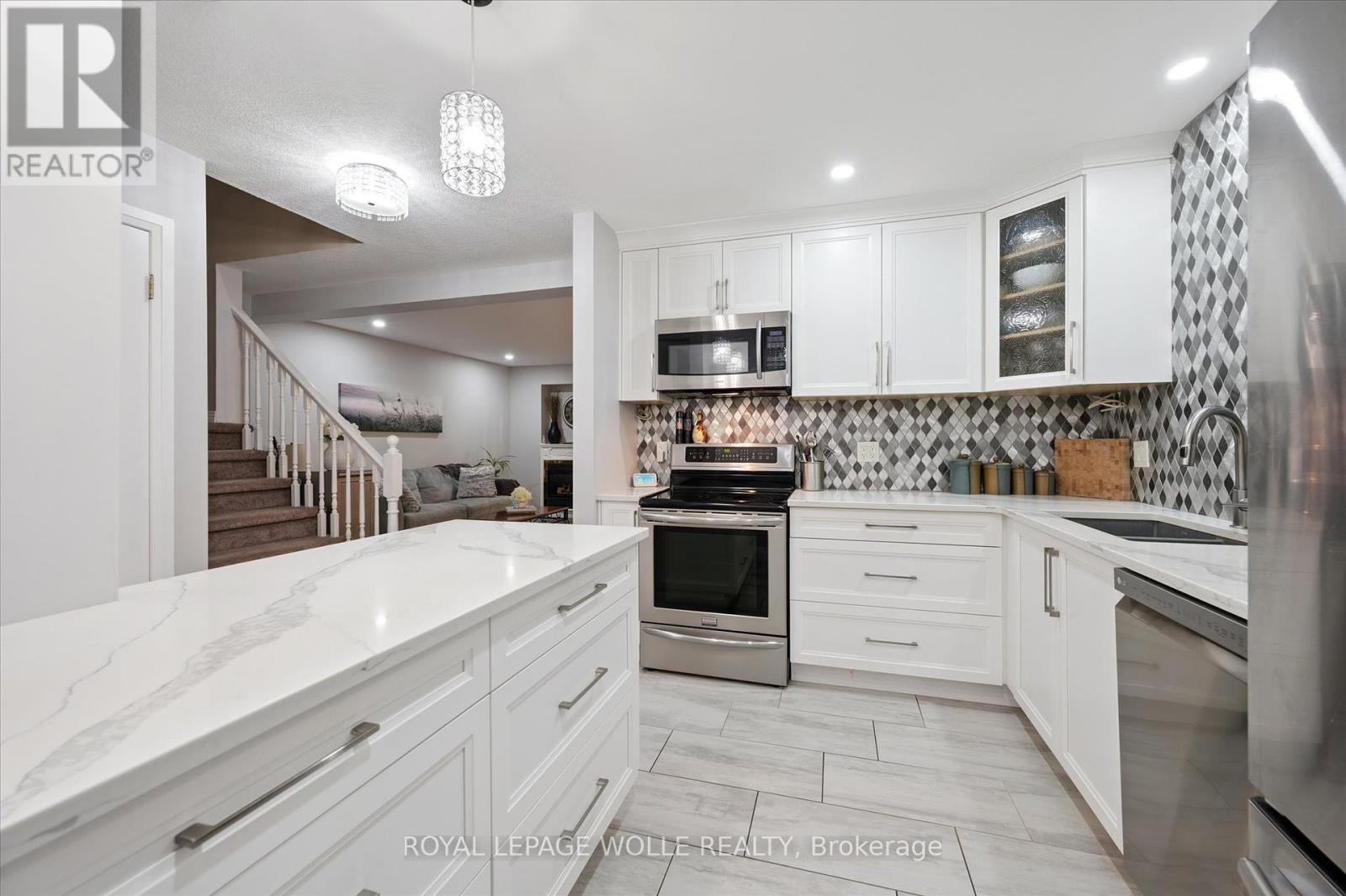 Spacious 2-Bedroom Condo Townhome Backing onto Green Space. Welcome to this beautifully updated condo townhome offering 2 bedrooms, 2 full bathrooms, and 2 half bathrooms, perfectly designed for comfort and convenience. The modern kitchen features crisp white cabinetry, quartz countertops, and a stylish tile backsplash. The main floor bathroom has also been updated, adding to the homes fresh appeal. From the dining room, step out onto a large deck overlooking mature trees and lush green space a serene setting for relaxing or entertaining. Upstairs, youll find a spacious primary bedroom with a walk-in closet and a luxurious 5-piece ensuite bathroom. The second floor also offers the convenience of a laundry room and a massive second bedroom with plenty of space. The cozy finished basement provides additional living space, abundant storage, and a walkout to a private patio beneath the deck, where you can enjoy the peace and quiet of nature. Ideally located within walking distance to grocery stores and everyday amenities, and just a short drive to the University of Waterloo, Wilfrid Laurier University, Costco, and The Boardwalk. Dont miss your chance to call this exceptional property home! (41408159)