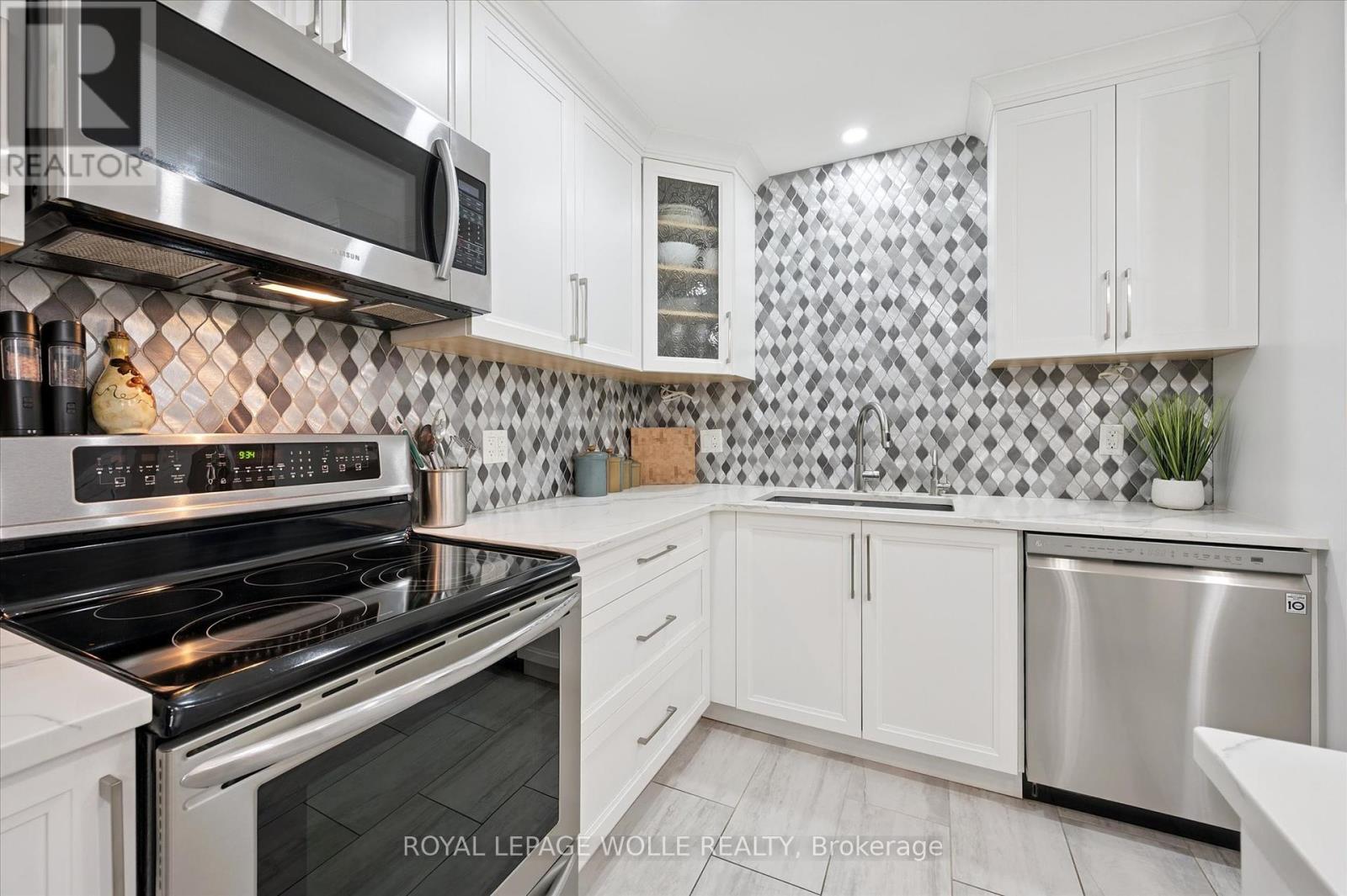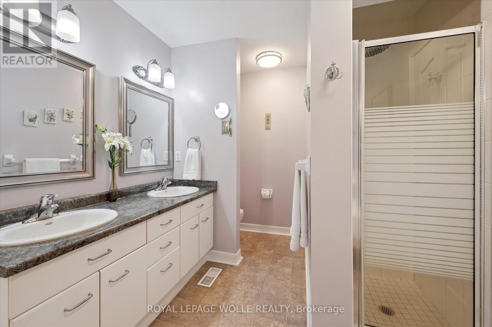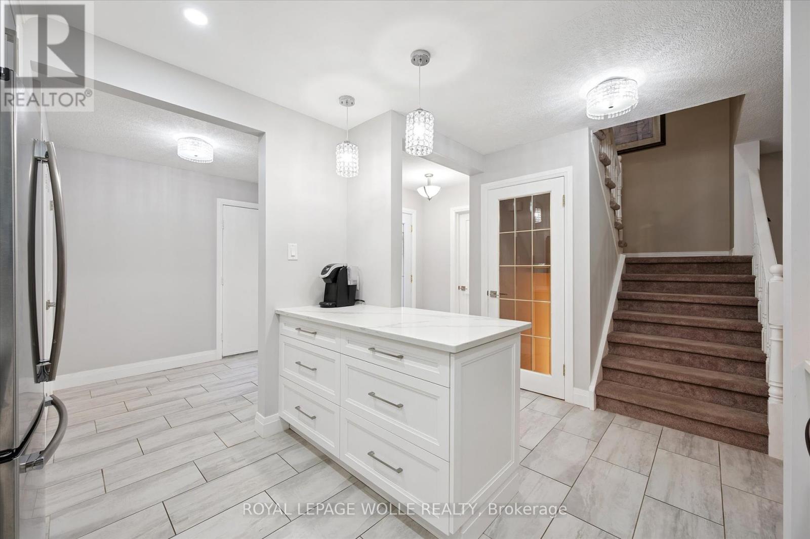 Spacious 2-Bedroom Condo Townhome Backing onto Green Space. Welcome to this beautifully updated condo townhome offering 2 bedrooms, 2 full bathrooms, and 2 half bathrooms, perfectly designed for comfort and convenience. The modern kitchen features crisp white cabinetry, quartz countertops, and a stylish tile backsplash. The main floor bathroom has also been updated, adding to the homes fresh appeal. From the dining room, step out onto a large deck overlooking mature trees and lush green space a serene setting for relaxing or entertaining. Upstairs, youll find a spacious primary bedroom with a walk-in closet and a luxurious 5-piece ensuite bathroom. The second floor also offers the convenience of a laundry room and a massive second bedroom with plenty of space. The cozy finished basement provides additional living space, abundant storage, and a walkout to a private patio beneath the deck, where you can enjoy the peace and quiet of nature. Ideally located within walking distance to grocery stores and everyday amenities, and just a short drive to the University of Waterloo, Wilfrid Laurier University, Costco, and The Boardwalk. Dont miss your chance to call this exceptional property home! (41408159)