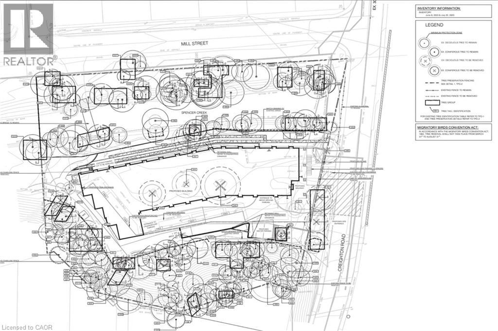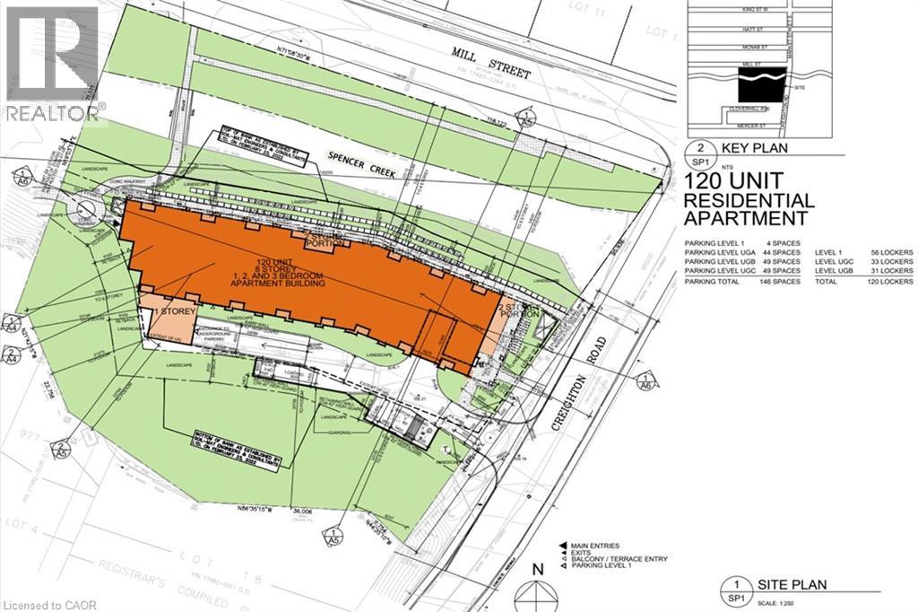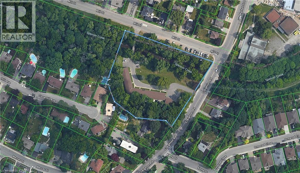 PRIME DEVELOPMENT OPPORTUNITY: This 2.39-acre waterfront property on Spencer Creek in downtown Dundas is currently being rezoned (‘Medium Density Multiple Dwelling–RM3 Modified’) for an 8-storey, 120-unit condominium development. The zoning will also allow for a retirement facility and there is still a massive upside potential with a maximum build allowance up to 12 storeys and 170 units. A full application has been submitted including the following studies: Hydrogeological; Geotechnical; Functional Servicing & Stormwater Management; Noise Impact; Sun/Shadow; Wind; Parking Analysis & Transportation Management. This luxury apartment style building will comprise of one, two, and three-bedroom configurations. The building is designed with recessed balconies enhancing its visual appeal. To accommodate residents, the development includes a total of 144 parking spaces in an underground garage along with 120 storage lockers and dedicated bicycle parking. However, a revised zoning by-law will allow for a reduction to a total of 78 spaces significantly reducing the underground requirements. A rooftop amenity space is also included in the plan. Access to the site is from the west side of Creighton Road, ensuring efficient circulation for both residents and visitors. The site is currently occupied by a single-storey building containing 10 rental units with plenty of interim opportunity. Located directly in front of Spencer Creek Trail connecting to the entire Dundas Valley Conservation with easy access to Webster Falls and the Dundas Valley Golf and Curling Club. This site is conveniently located on a bus route and just steps to the historic downtown Dundas with a vibrant mix of restaurants, shopping and amenities. This development represents a strategic use of land in alignment with the City of Hamilton’s Urban Official Plan and Design Guidelines. It notably advances the core objectives of intensification while considering the form and functional characteristics of the area. (69736991)