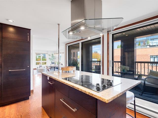 Le Bief. Just steps from Atwater Market and the Lachine Canal, this beautifully renovated corner unit offers breathtaking city views. Featuring 2 bedrooms, 2 stylish bathrooms, a sleek modern kitchen, hardwood floors, central heat pump, and indoor parking. Enjoy a covered loggia for outdoor living. Prime location near Lionel-Groulx metro, trendy restaurants, and shops on Notre-Dame. Private courtyard entrance with fountain or direct access from Charlevoix. Indoor garage #43 and storage #4 . Comfort, elegance, and urban living at its finest! (38181295)
