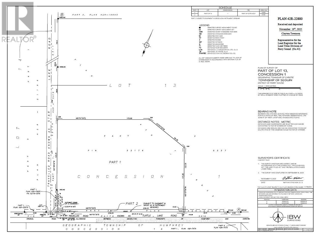 Nestled on the corner of Turtle Lake Road and Star Lake Road this 9.9-acre property is the perfect place to build your dream home surrounded by trees and nature. The driveway entrance is already in and trails wind through the land ready for quiet walks or exploring your own backyard. You'll enjoy the best of both worlds here: peaceful privacy with convenient access to nearby communities like Humphrey, Rosseau and Parry Sound for all your amenities. High-speed internet is available, so you can stay connected while living among the trees. A natural setting with room to grow, breathe and build your future. (LOT 575ft x 574ft x 262ft x 401ft x 784ft - 9.9 acres) (41411102)