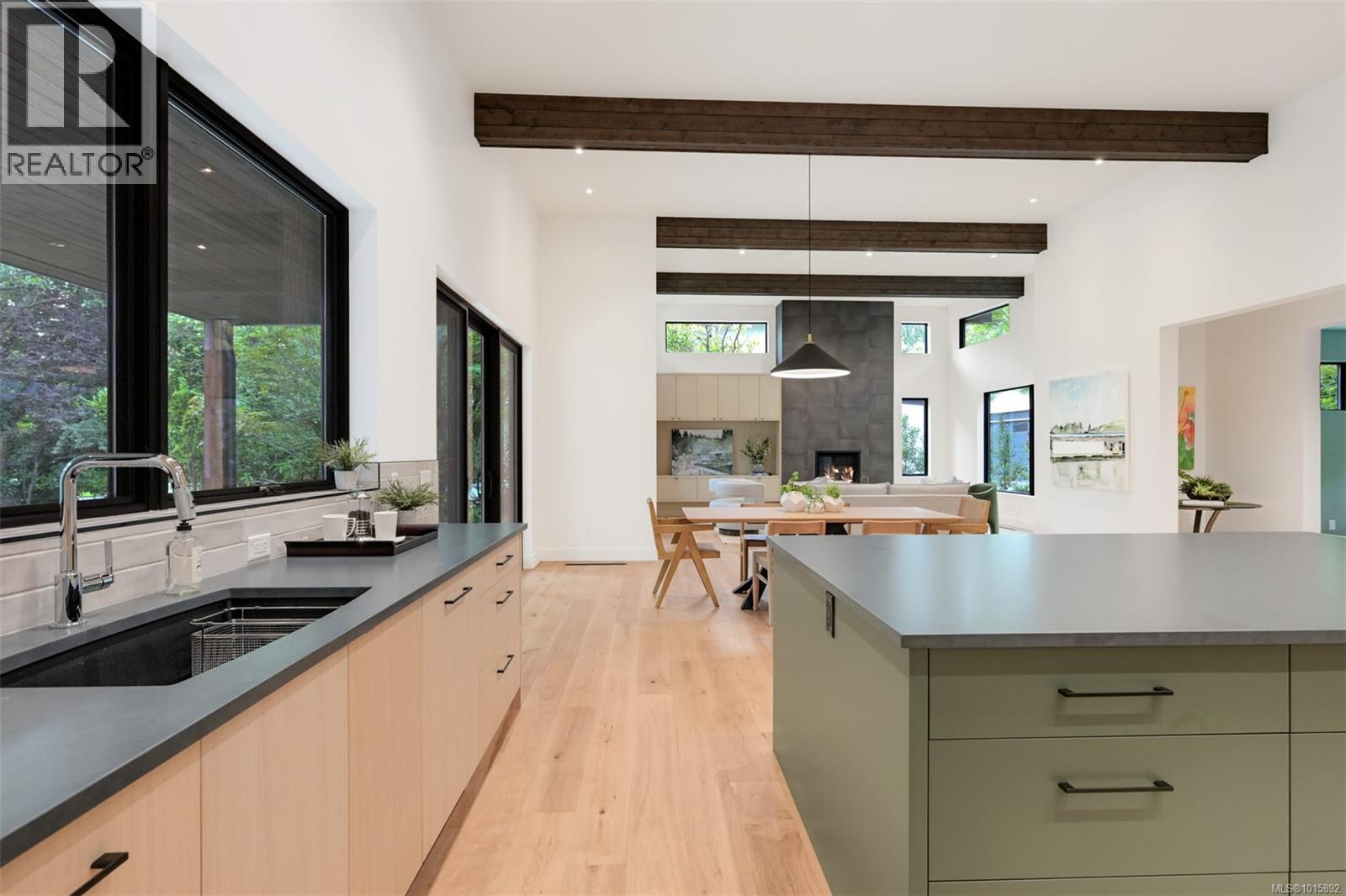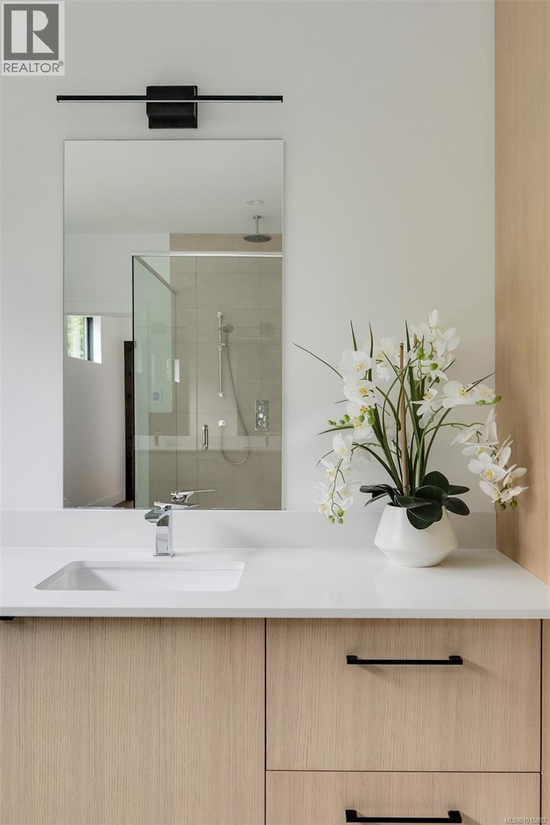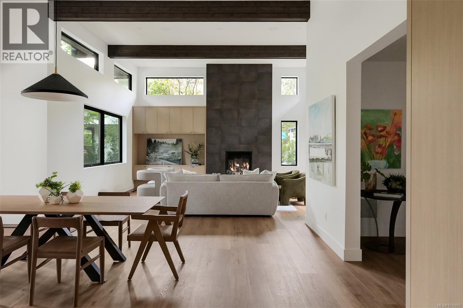 Nestled in Victoria’s historic Rockland neighbourhood, Cadence on Despard is a modern architectural statement set against a backdrop of heritage and prestige. Conceived by Zebra Design in a contemporary interpretation of Mid-Century Modern ideals, this residence embodies balance, proportion and light—each space thoughtfully composed for both daily living and sophisticated entertaining. From the street, the home’s clean lines and expansive glazing announce its modernist pedigree, while professionally landscaped ¼-acre grounds frame the property in seasonal colour and privacy. Inside, the main level unfolds across 2,692 SF of soaring volumes and warm natural finishes. Fourteen-foot vaulted ceilings, exposed beams and a dramatic floor-to-ceiling fireplace create a sense of openness and calm, while walls of glass dissolve the boundary between indoors and out. At the heart of the home, the gourmet kitchen combines form and function with European oak cabinetry, integrated premium appliances and a generous island with breakfast bar. Adjoining living and dining areas flow seamlessly to outdoor patios, ideal for al fresco dining or summer gatherings. The primary suite, quietly positioned at the rear of the main floor, offers a private retreat with an oversized walk-in closet and a spa-inspired ensuite complete with double vanity, soaking tub and glass-enclosed shower. A den with gas fireplace, dedicated laundry and mudroom complete the level. Upstairs, a media lounge with custom wet bar extends the living experience, perfect for family movie nights or weekend entertaining. Two additional bedrooms, each with its own ensuite, provide comfort and flexibility for family or guests. Located just minutes from Oak Bay Avenue, Cook Street Village, and the Inner Harbour, Cadence on Despard is more than a residence—it is an architectural experience in one of Victoria’s most coveted enclaves. A rare opportunity to live with design, light and landscape in perfect harmony. (29978273)
