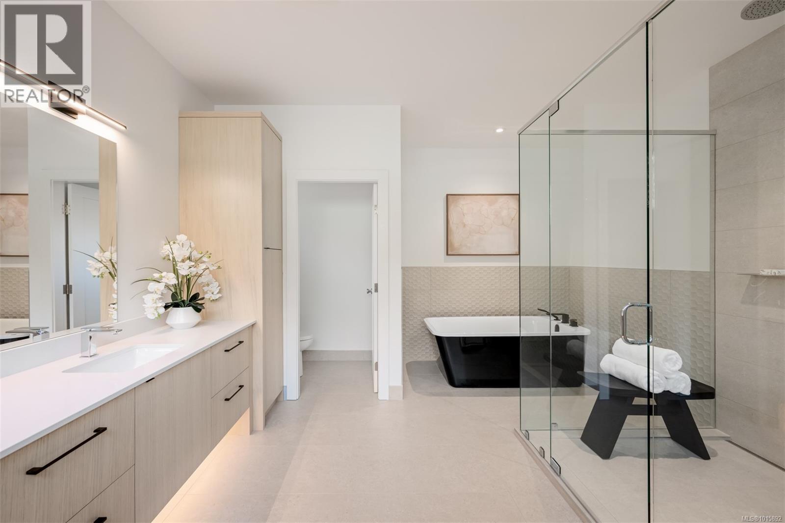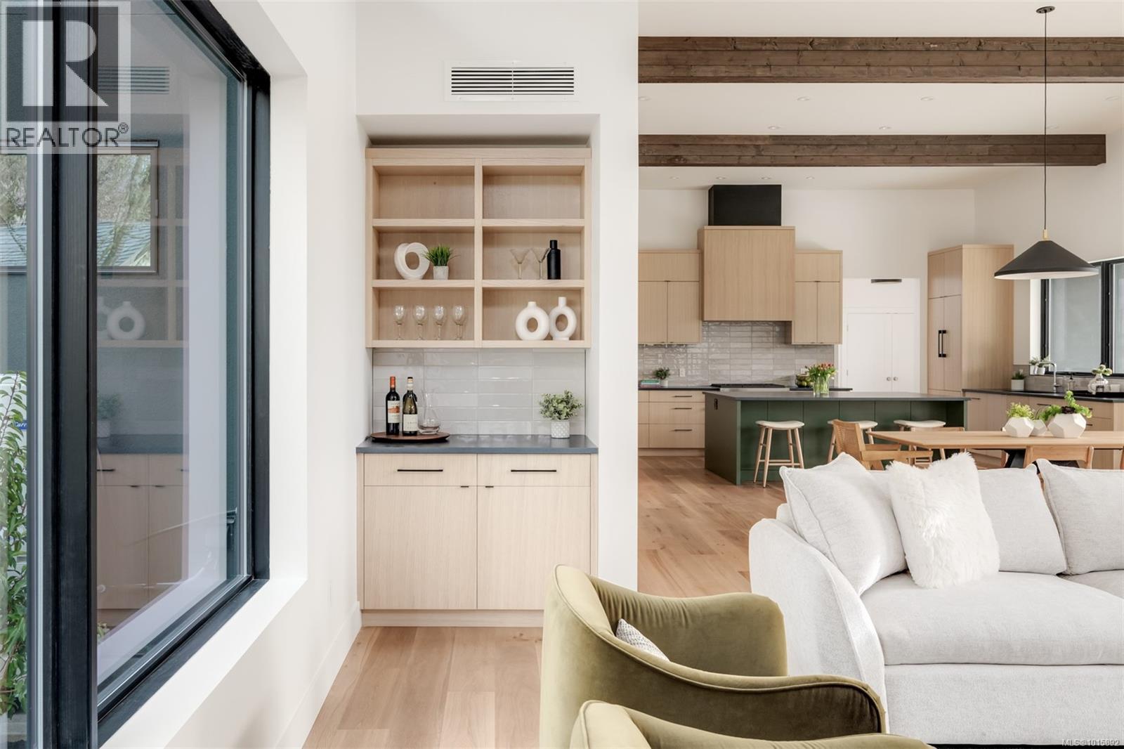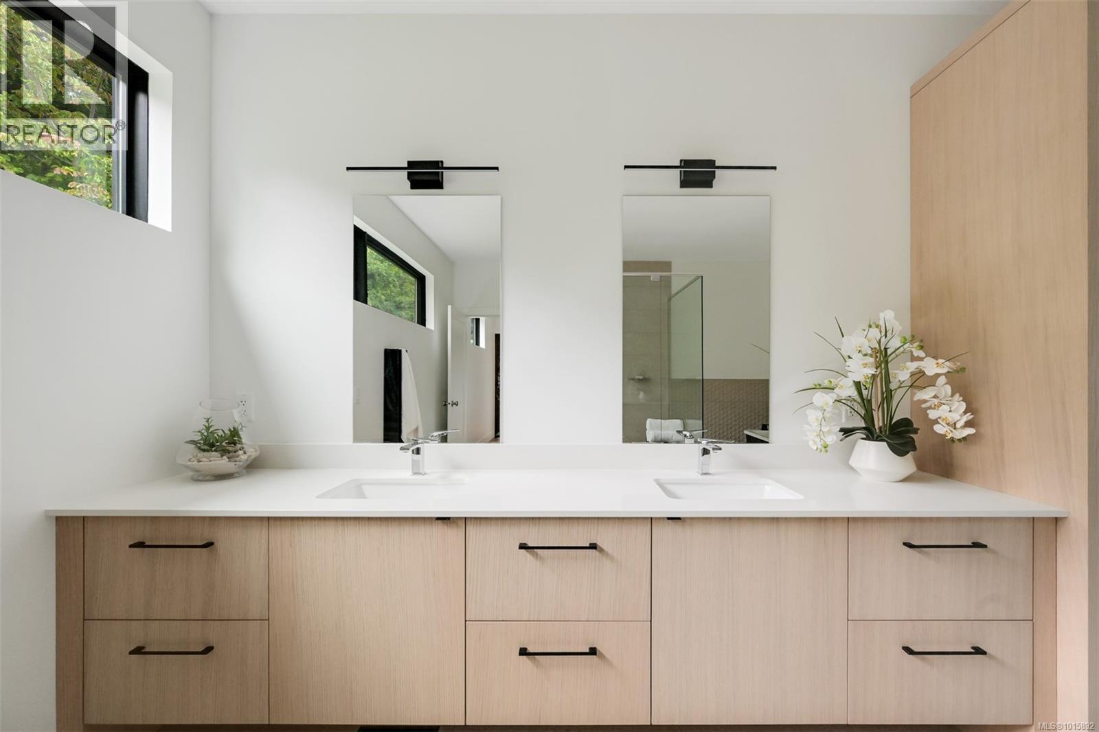 Nestled in Victoria’s historic Rockland neighbourhood, Cadence on Despard is a modern architectural statement set against a backdrop of heritage and prestige. Conceived by Zebra Design in a contemporary interpretation of Mid-Century Modern ideals, this residence embodies balance, proportion and light—each space thoughtfully composed for both daily living and sophisticated entertaining. From the street, the home’s clean lines and expansive glazing announce its modernist pedigree, while professionally landscaped ¼-acre grounds frame the property in seasonal colour and privacy. Inside, the main level unfolds across 2,692 SF of soaring volumes and warm natural finishes. Fourteen-foot vaulted ceilings, exposed beams and a dramatic floor-to-ceiling fireplace create a sense of openness and calm, while walls of glass dissolve the boundary between indoors and out. At the heart of the home, the gourmet kitchen combines form and function with European oak cabinetry, integrated premium appliances and a generous island with breakfast bar. Adjoining living and dining areas flow seamlessly to outdoor patios, ideal for al fresco dining or summer gatherings. The primary suite, quietly positioned at the rear of the main floor, offers a private retreat with an oversized walk-in closet and a spa-inspired ensuite complete with double vanity, soaking tub and glass-enclosed shower. A den with gas fireplace, dedicated laundry and mudroom complete the level. Upstairs, a media lounge with custom wet bar extends the living experience, perfect for family movie nights or weekend entertaining. Two additional bedrooms, each with its own ensuite, provide comfort and flexibility for family or guests. Located just minutes from Oak Bay Avenue, Cook Street Village, and the Inner Harbour, Cadence on Despard is more than a residence—it is an architectural experience in one of Victoria’s most coveted enclaves. A rare opportunity to live with design, light and landscape in perfect harmony. (29978273)