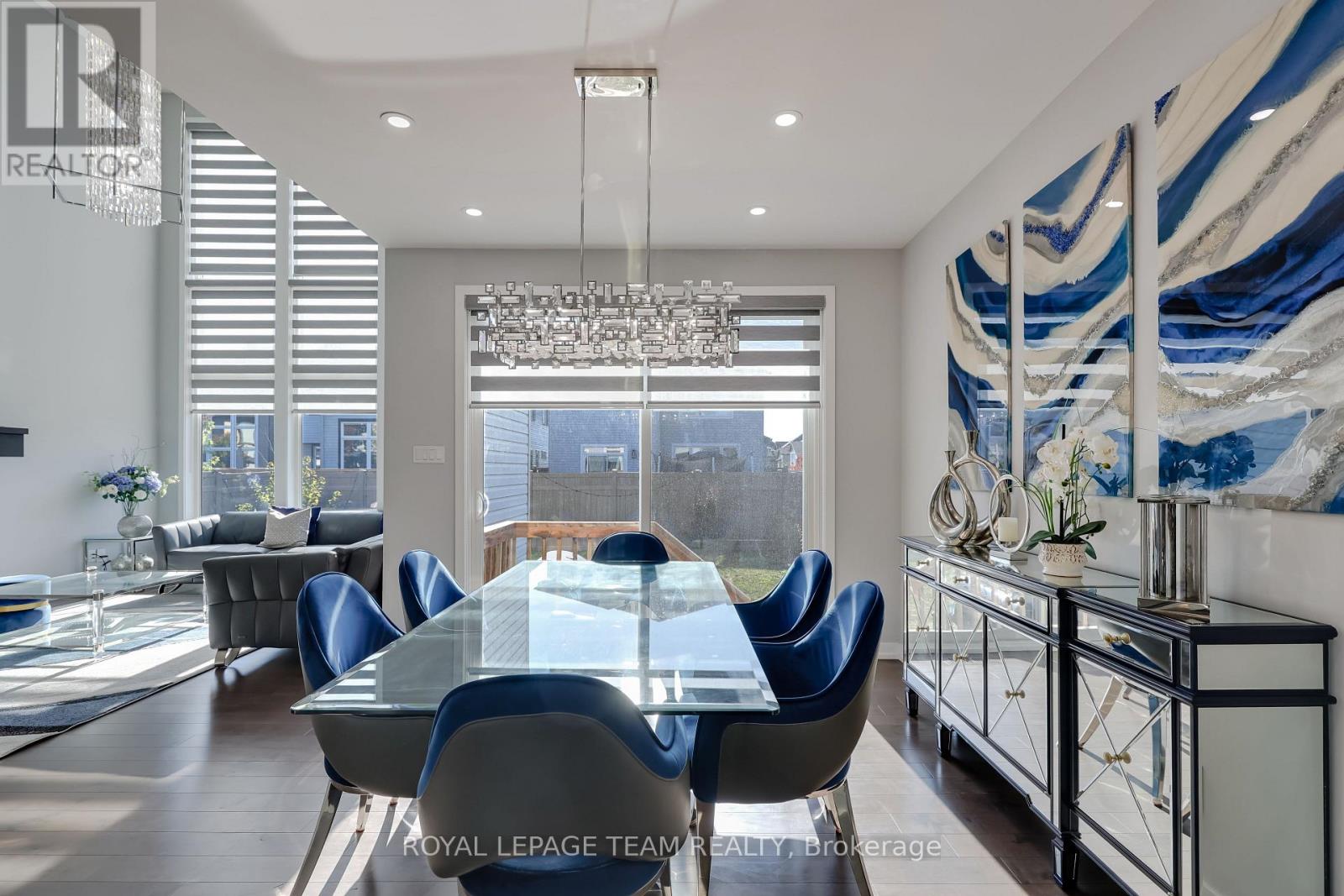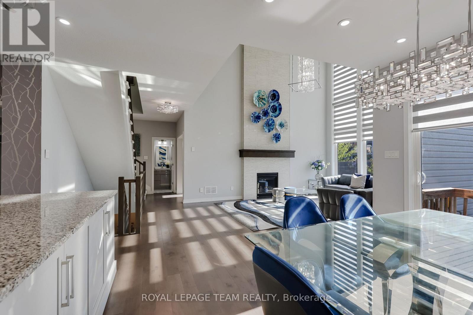 This elegant 6-bedroom, 5-bathroom home by Cardel Homes combines modern comfort with timeless design in one of Kanata South's most desirable Blackstone neighbourhoods. Built in 2019, the Aberdeen model offers over 3,700 sq ft. of finished space, featuring a classic brick-and-stone façade, Wi-Fi exterior lighting, and an extra-wide double garage with a handy workspace. Step inside to a bright foyer with polished tile, designer wallpaper, and a sparkling chandelier that sets a warm, refined tone. The main floor boasts 9-foot ceilings, matte maple hardwood, and an open layout that's both stylish and functional. Going through walk-in Pantry and butler pantry, the kitchen is a highlight with granite countertops, brushed-steel backsplash, full-height custom cabinets, pull-out spice racks, built-in waste bins, and a sleek range hood. The dining area opens through a large sliding patio door to the backyard, creating an easy flow for gatherings. The family room impresses with 17-foot ceilings, full-height windows, a tiled fireplace wall with Murano glass, and a striking 10-foot chandelier. A guest suite with an adjoining bath offers flexible use as an office or in-law suite. A mud room connects to the large garage. Upstairs, the primary bedroom feels like a retreat with a walk-in closet and a 5-piece ensuite featuring double sinks, a glass shower, and a soaking tub. 4 additional bedrooms, 2 with vaulted ceilings, provide space for family and guests, while the second-floor laundry adds convenience. The finished basement expands the living area with a large rec room, a bedroom, and a full bath - perfect for a home theatre or gym. The fenced backyard is private and low-maintenance, ideal for relaxing or entertaining. Surrounded by parks, trails, top schools, shops, and transit, it delivers the perfect mix of sophistication and warmth - the kind of place you walk into and instantly feel at home. (41419281)