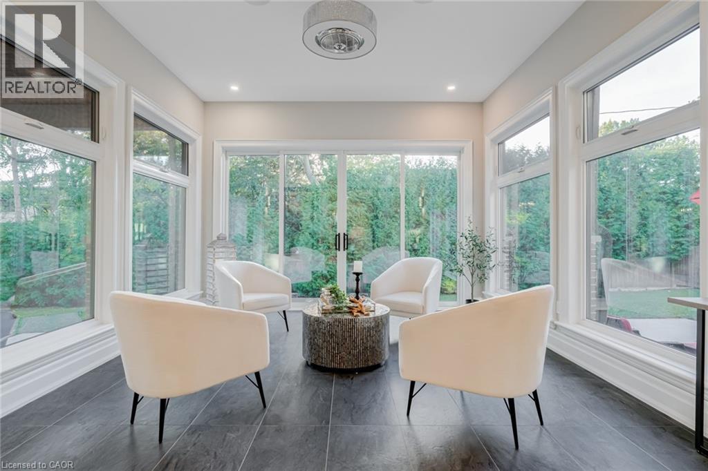 This multi-generational luxury dream home blends timeless design with superior craftsmanship, offering over 8,850 sqft. of finished living space with 7 bedrooms and 8 bathrooms on a 135-ft-wide lot in Ancaster’s prestigious Oakhill neighbourhood. Surrounded by mature trees and estate homes, the property showcases two separate garages, parking for 20+ vehicles, professional landscaping, and a commanding architectural façade. Inside, a 21-ft grand foyer with curved staircase and custom millwork sets an elegant tone, complemented by wide-plank hardwood, porcelain tile, and abundant natural light from oversized windows. The main level offers formal living and dining rooms, a private office, powder room, and one of two primary suites with backyard walk-out. At the heart of the home, a soaring family room with floor-to-ceiling windows connects to a gourmet kitchen featuring top-tier Thermador appliances, a servery, walk-in pantry, and a heated four-season sunroom with in-floor heating. Upstairs are four generous bedrooms, each with its own ensuite and heated floors, plus a convenient laundry room and a spectacular primary retreat with gas fireplace, dressing room, and spa-inspired 6-pc ensuite. A covered terrace with artificial turf extends the living space outdoors. The finished lower level offers incredible versatility for extended family living with a separate entrance, two bedrooms, two bathrooms, recreation room with gas fireplace, kitchenette, and a sound-isolated home theatre room that can be separated from the rest of the basement. The private backyard provides multiple patios under mature trees, with professional renderings available for a future pool, hot tub, and full landscaping. Smart-home features include Control4 automation, security system, 400-amp, dual furnaces & ACs, HRVs, and central vacuum with hide-a-hoses. A rare opportunity to own an Oakhill estate that combines sophistication, space, and modern functionality for today’s luxury lifestyle. (69745493)