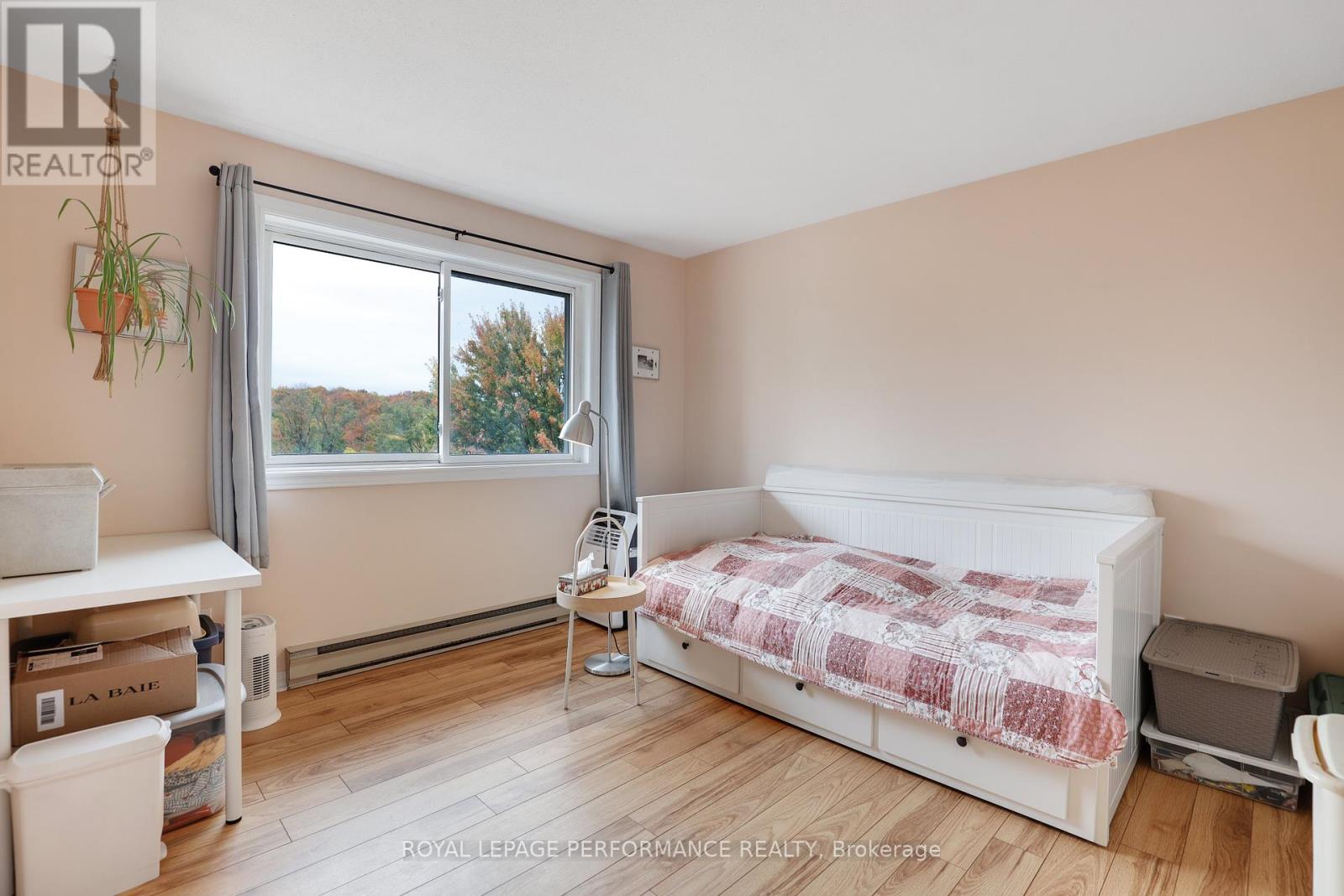 Light and bright top level 1 bed, 1 bath condo in a low-rise building with fabulous amenities! Nature lovers will love the beautiful view of the trees. For those who love to be active, just steps away is the recreation centre which includes an indoor pool, racquet courts, and equipped exercise room are sure to please. Other amenities also included are an outdoor pool, tennis courts and a lovely walking path circling two ponds, each with a fountain. Carpet-free living spaces make cleaning a breeze. Convenient in-suite laundry means saying goodbye to that laundromat. Handy breakfast bar between the Kitchen and Living area makes entertaining fun & easy. The primary bedroom features a spacious walk-in closet. Enjoy your morning coffee or after work aperitif on your cozy balcony with a beautiful view of the tree tops. Gorgeous in the fall! Other room measurement is the walk-in closet in the Bedroom. Public transit is close by, as is shopping, dining, The Montfort hospital, schools, government offices, and coffee shops. Just 10 minutes to downtown! Want to take a peek? Your new home is calling you. (41422853)