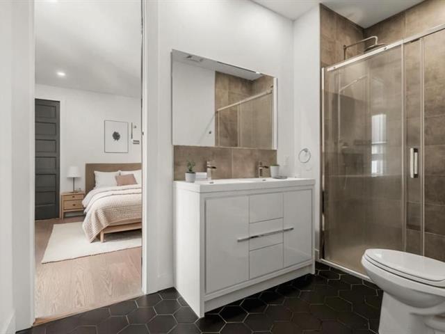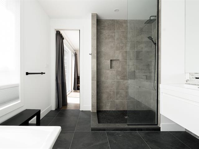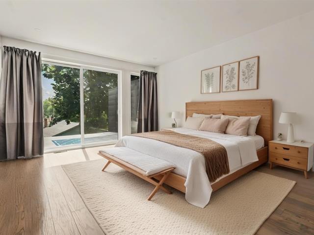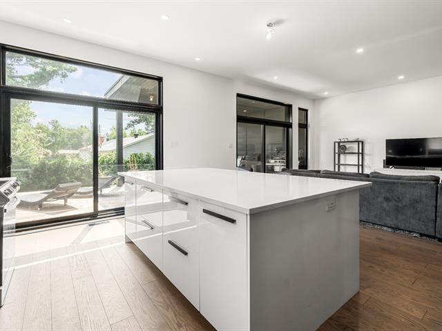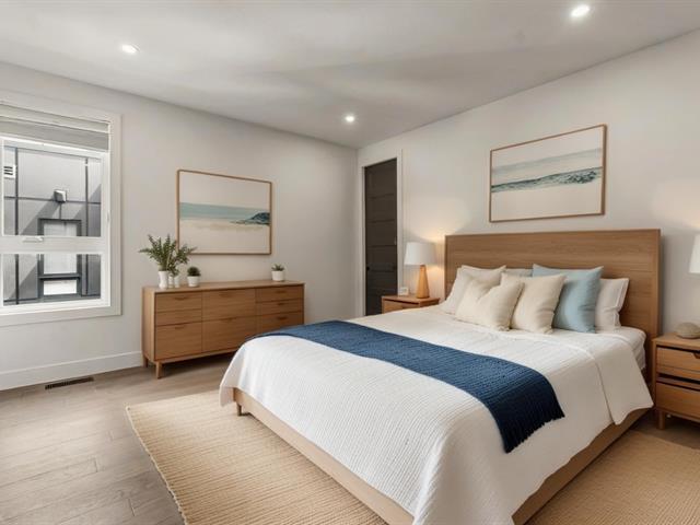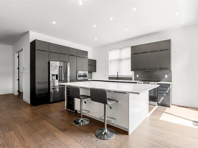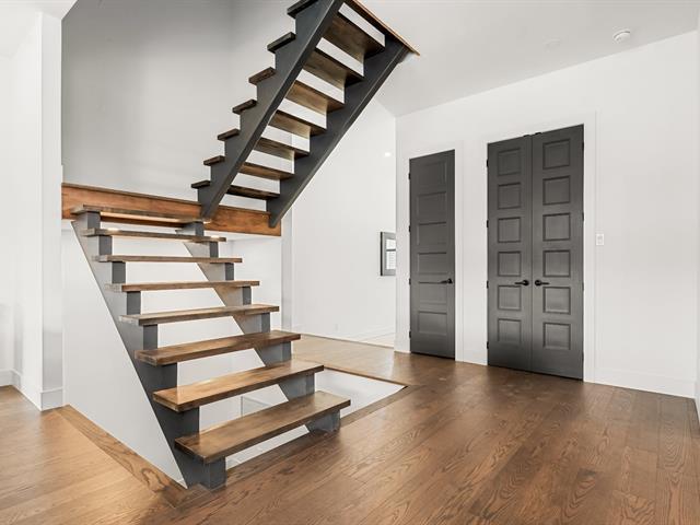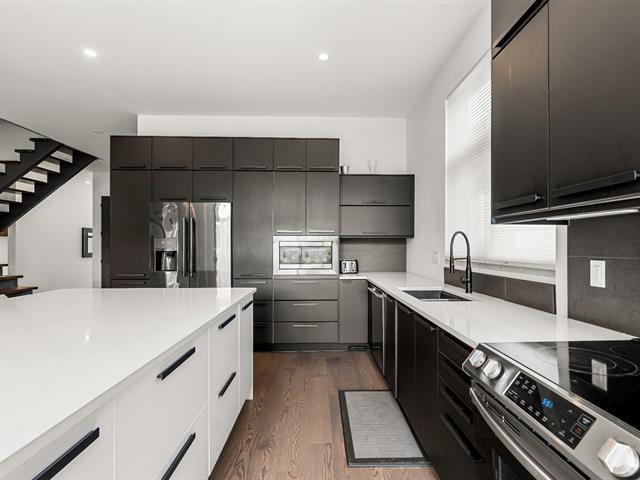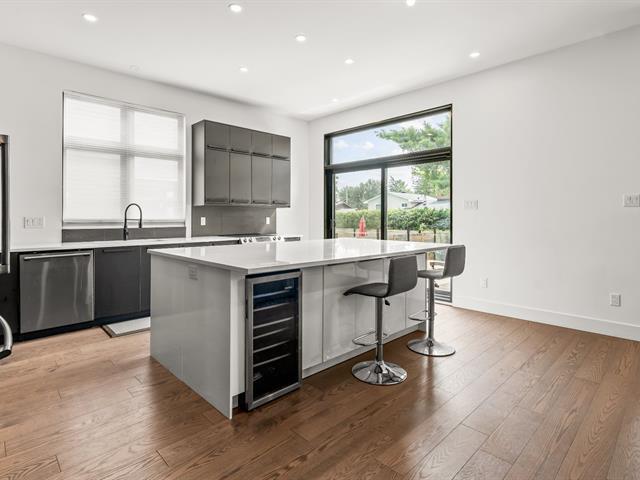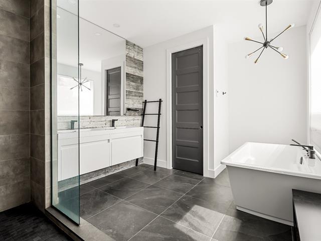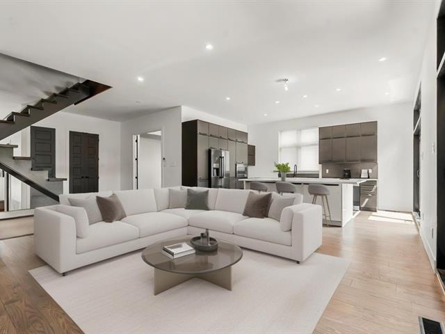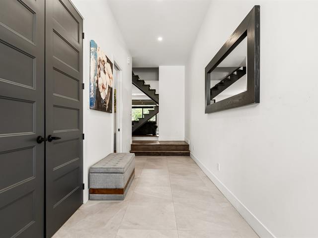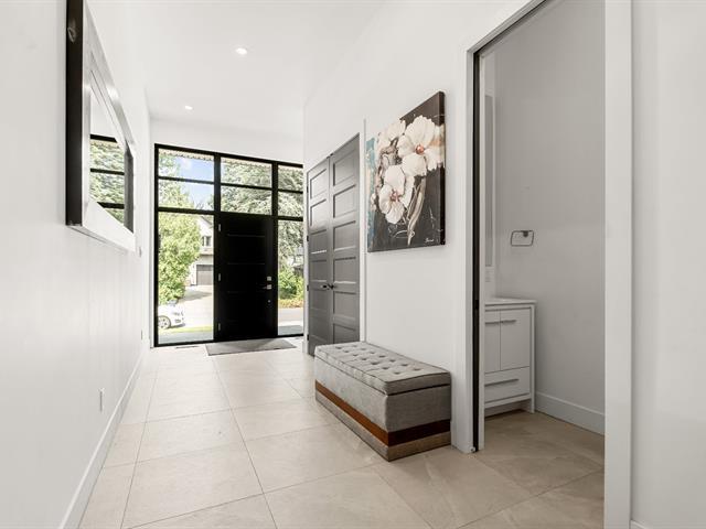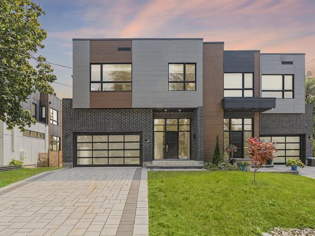 Impressive and refined 4+1 bedroom modern residence, recently and meticulously built with exceptional quality. Featuring elegant open-concept interiors, soaring 9--12 ft ceilings, architectural floating staircase, chef's kitchen with island, and floor-to-ceiling windows. All bedrooms offer ensuites and walk-ins, including a master suite with private balcony. Exterior access to basement, large terrace, double garage, and paving stone driveway. Steps from the waterfront, park, College Beaubois, and the future REM. (46156988)