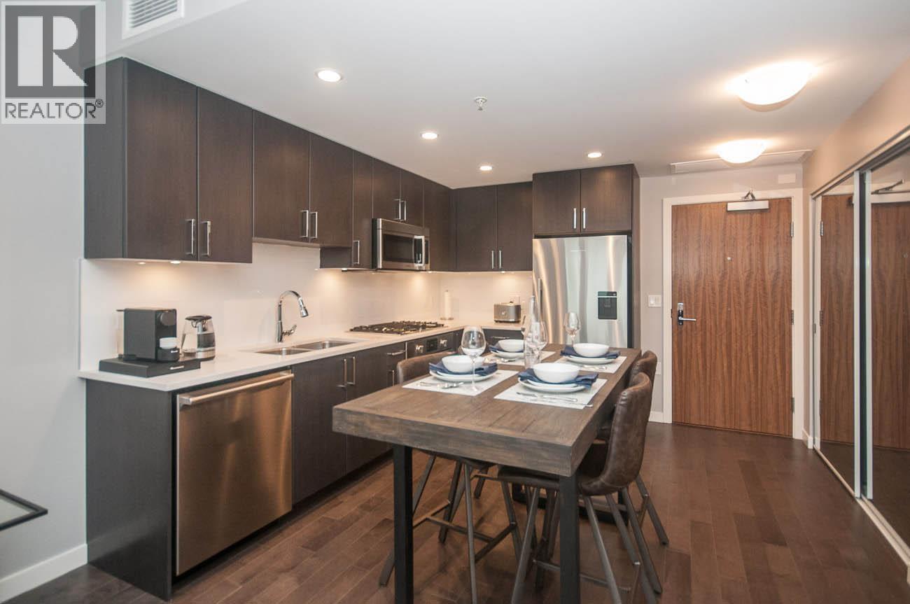 Beautifully FURNISHED 1-bdrm + den, 1-bath condo with 632 sq.ft. in the heart of Olympic Village. Bright open layout with in-suite A/C, rich hardwood flrs, & floor-to-ceiling windows for tons of natural light. Living rm opens to private balcony, perfect for coffee or evening unwind. Gourmet kitchen features sleek dark cabinetry, quartz counters, gas range, & Bosch/Fisher Paykel s/s appls. Primary bdrm offers queen bed & ample closet space; den with built-in desk ideal for home office. Concrete bldg with gym, lounge & rooftop BBQ deck. Steps to seawall, Urban Fare, Craft, Terra Breads, cafés, SkyTrain. Rent Incl.: Heat, hot Water, gas and electricity (capped at $50 a month), internet, 1 monthly clean, 1 storage locker and 1 secured underground parking stall. PARKING IS FOR SMALL CAR ONLY. No Pets. (32027901)