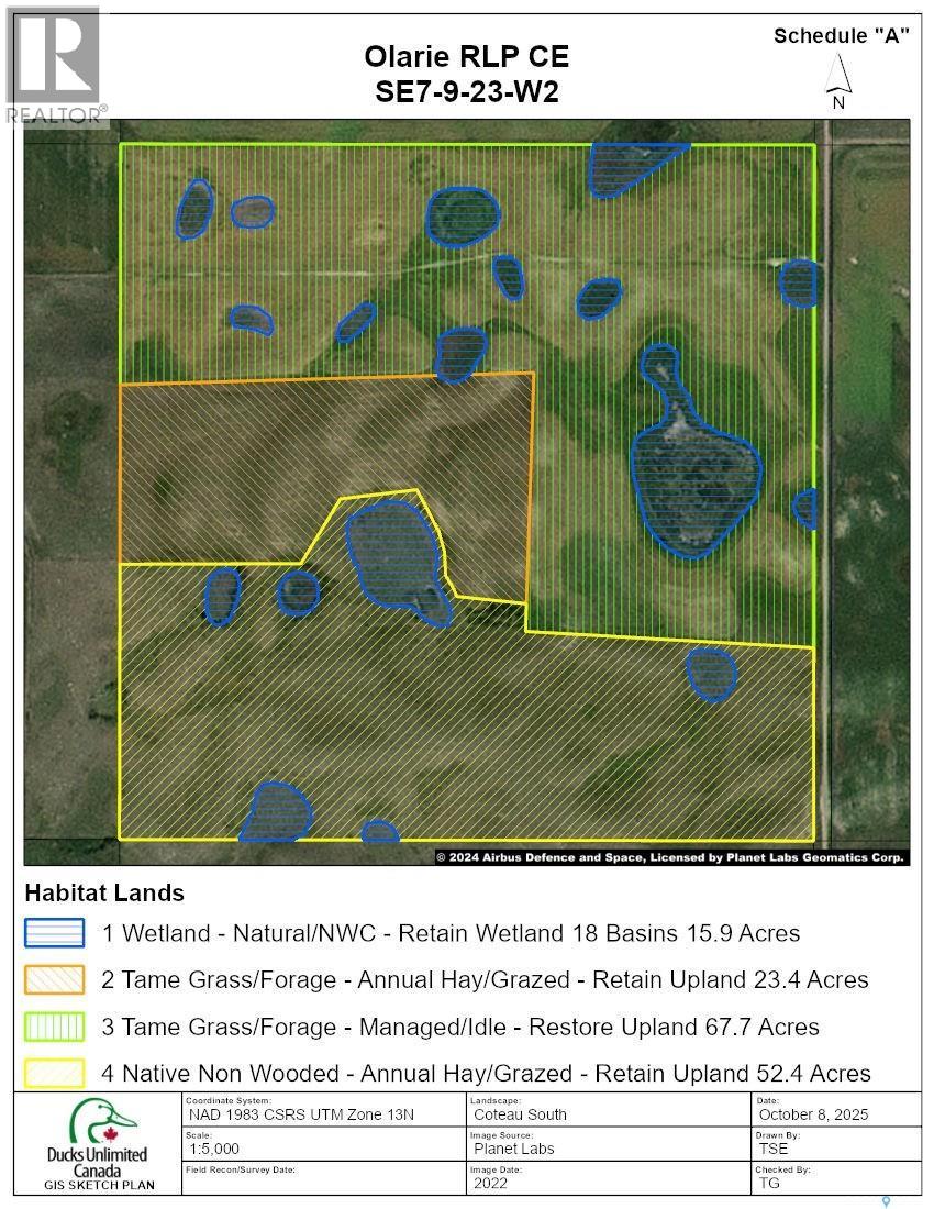 This 478-acre package is located in south-central Saskatchewan, approximately 6 km southwest of Kayville, in the RM of Key West #70. As per Ducks Unlimited, the land includes approximately 339 arable acres, 100 acres of native pasture, and 39 acres of wetlands and bush. Situated in the brown soil zone, it features Ardill Association clay loam soil, moderately rolling topography, and a soil final rating of 37.4. This property is offered for sale through the Ducks Unlimited Revolving Land Conservation Program, with a goal of restoring wetlands and grasslands. A conservation easement will be placed on the title. The arable acres can be cropped for the 2026 seasons; however, the buyer must seed to tame grass or forage no later by 2027. As per SAMA, there are 331 cultivated acres, 117 acres of native pasture and 30 acres of wetlands or bush. The $450,000 asking price equates to $941 per title acre, $1,360 per cultivated acre (SAMA), and $1,326 per cultivated acre (Ducks Unlimited), representing 0.85 times the 2025 assessed value. This is a great opportunity for farmers, ranchers, and conservation-focused buyers. Contact for more details. (28992604)