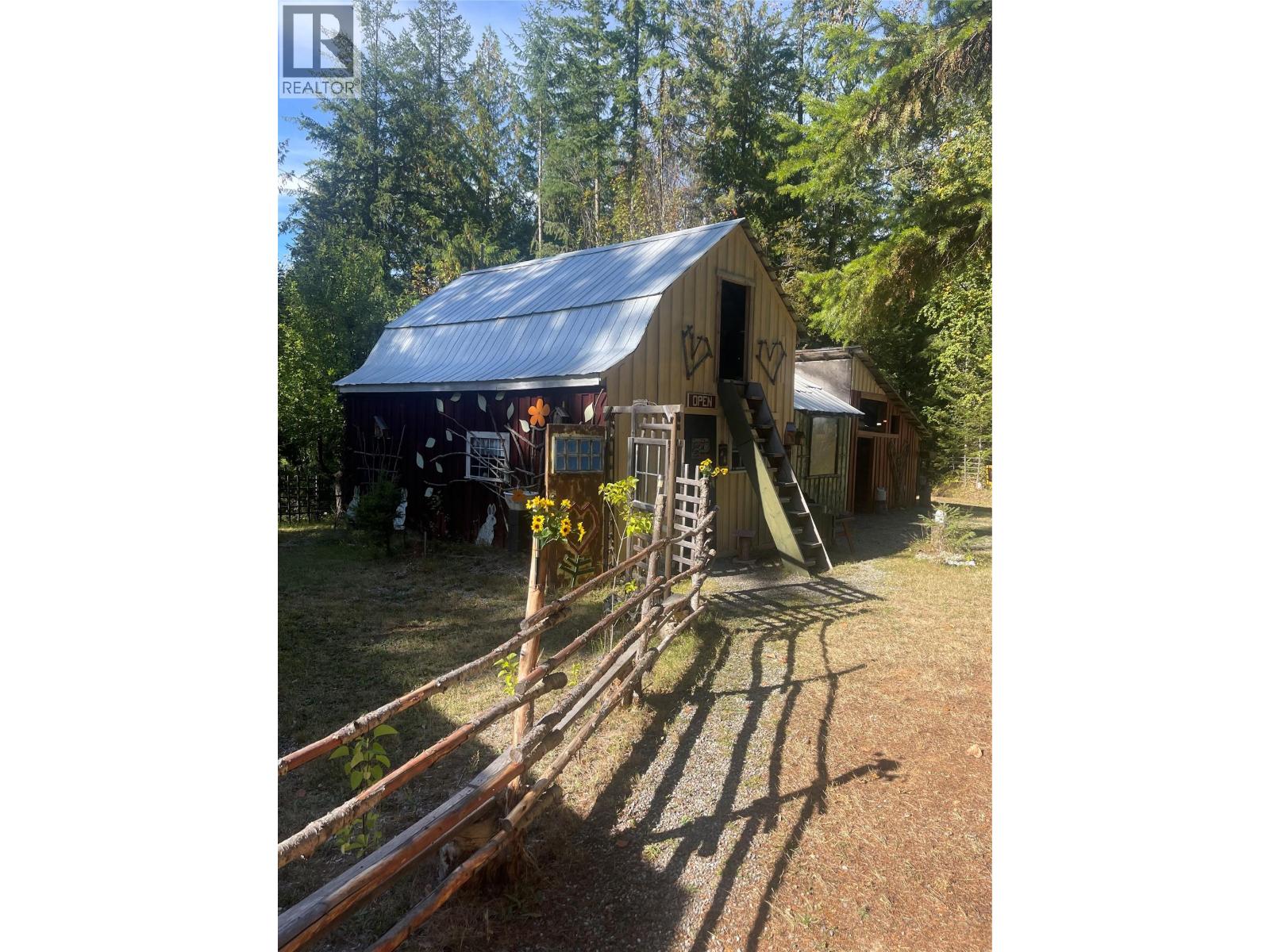 18.4 acres in Burton, near the end of McCormack Rd. and close to Snow Creek. Cozy cottage home, barn with loft, garage with loft. It's a retreat for family fun year round! This property is totally set up to live year round, or just enjoy as your vacation spot - the upper section has a cleared area, perfect for animals, the lower part is great for friends/family to come visit with their RV. A short walk through the trail on Crown Land and you're at Snow Creek. The cottage has 1 bedroom, a full bath with shower, laundry, and a nice living space with wood burning stove plus a covered deck out front. Garage with loft, gardens, walking and quad trails throughout the area. Short drive to the public beach and boat launch. Burton is an awesome rural community 20 min south of Nakusp and has plenty of backcountry to explore! (39337962)