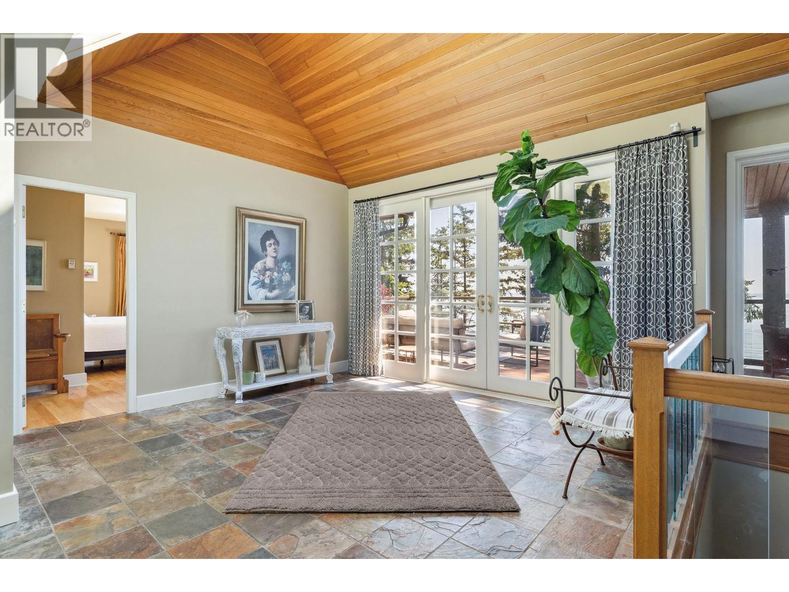 Fairweather Point - an enclave of architectural WATERFRONT homes sits on the South Shore of Bowen Island with views from Vancouver to the Gulf Islands. The coast here is alive with wildlife year round including seasonal visits from Humpbacks & Orcas. With a gently sloping backyard and a path of stone steps down to the water at high tide you can be swimming in the ocean anytime. The spacious home, seen prominently in a Hollywood film from the 1990s, provides ample space for family & friends. Right from the front door the views are spectacular and showcased in almost every room. The dramatic 15´ barrel ceiling in the living room is the focal point of the open plan living areas. The 600+ sf south-facing deck is accessed by all the rooms on the main floor, including the primary suite. Downstairs is a huge family room with direct access to the backyard. 2 more bedrooms with ocean views are also on the lower floor. Priced well below assessed value, here is a great opportunity to live the WATERFRONT island lifestyle. (32032485)