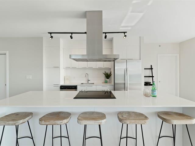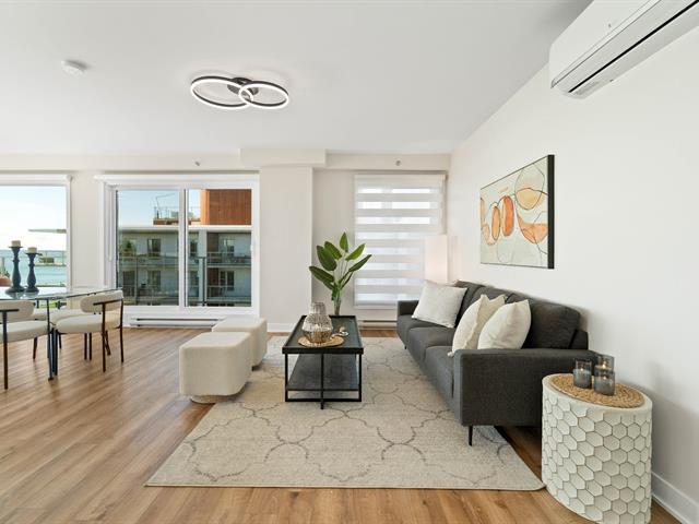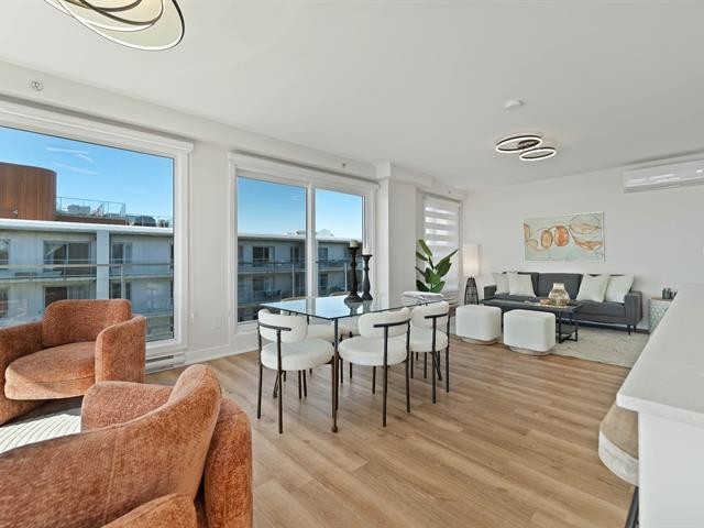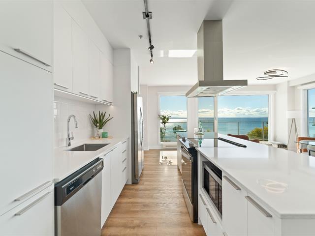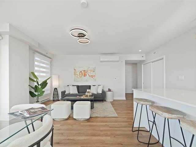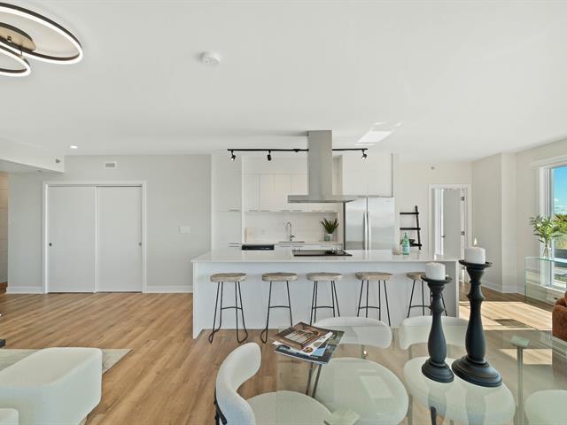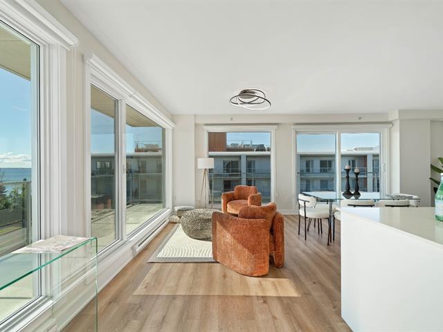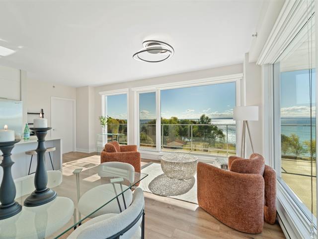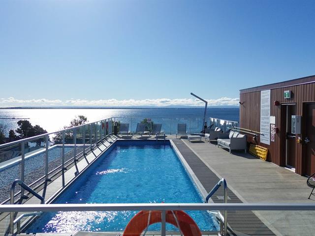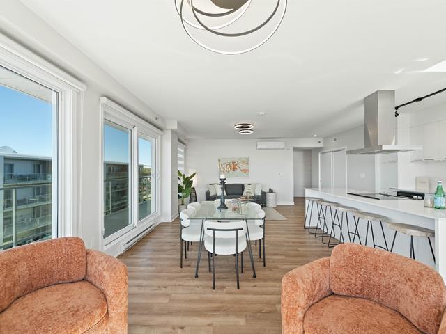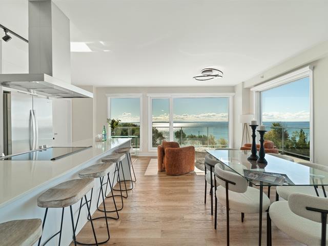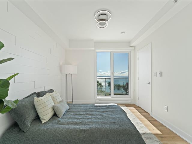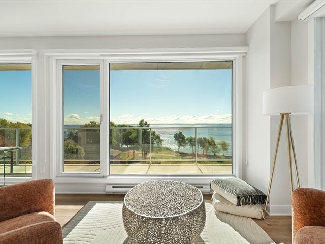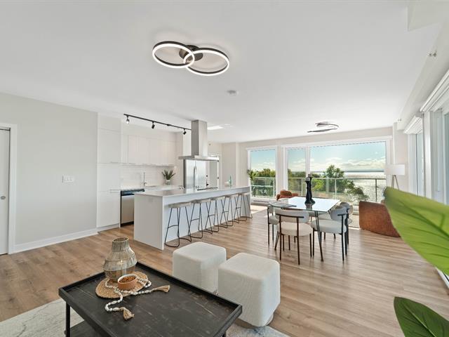 Bright 2-bedroom condo with abundant windows and stunning views of Lake Saint-François. Spacious open-concept layout, perfect for entertaining. Huge glass balcony on two sides to fully enjoy the scenery. Two full bathrooms, two indoor garage parking spaces. Rooftop pool with panoramic views. Comfort, natural light, and quality of life all in one! (42233661)