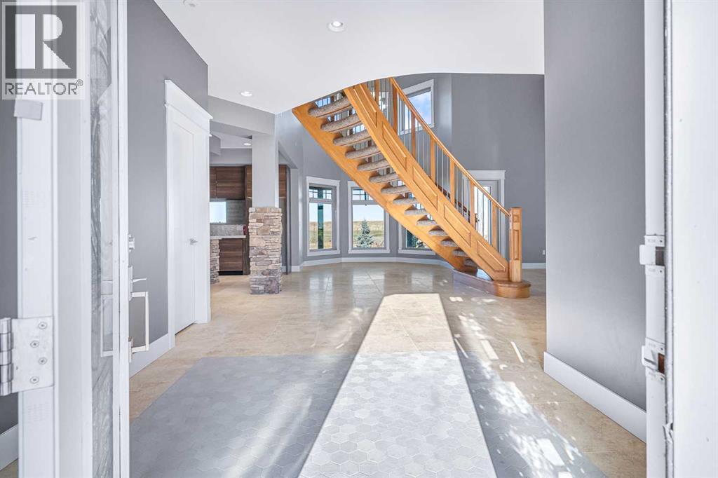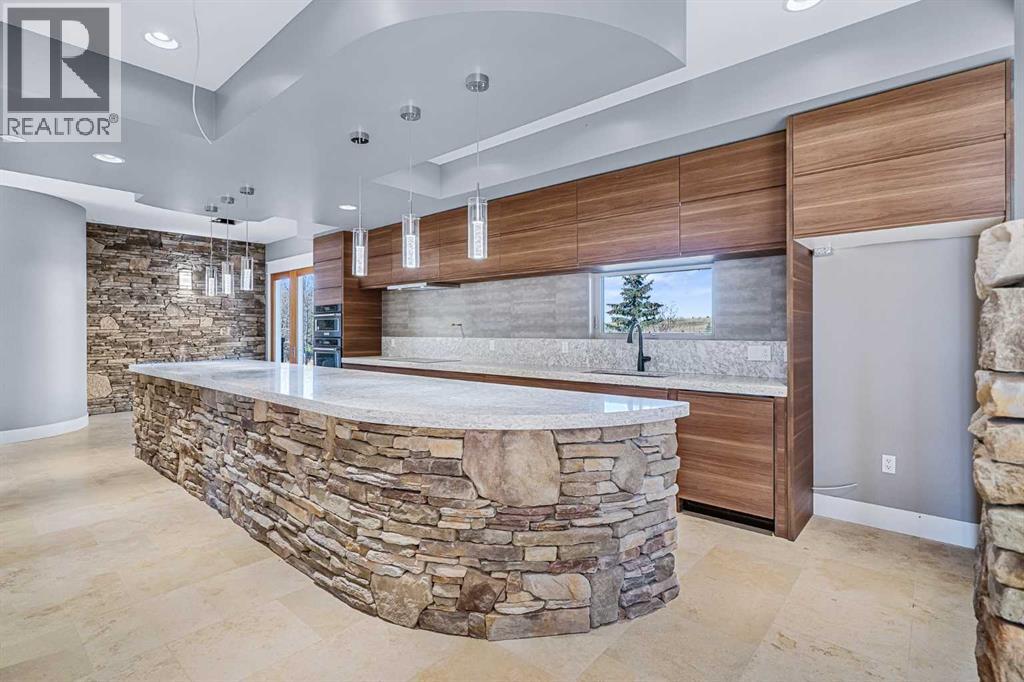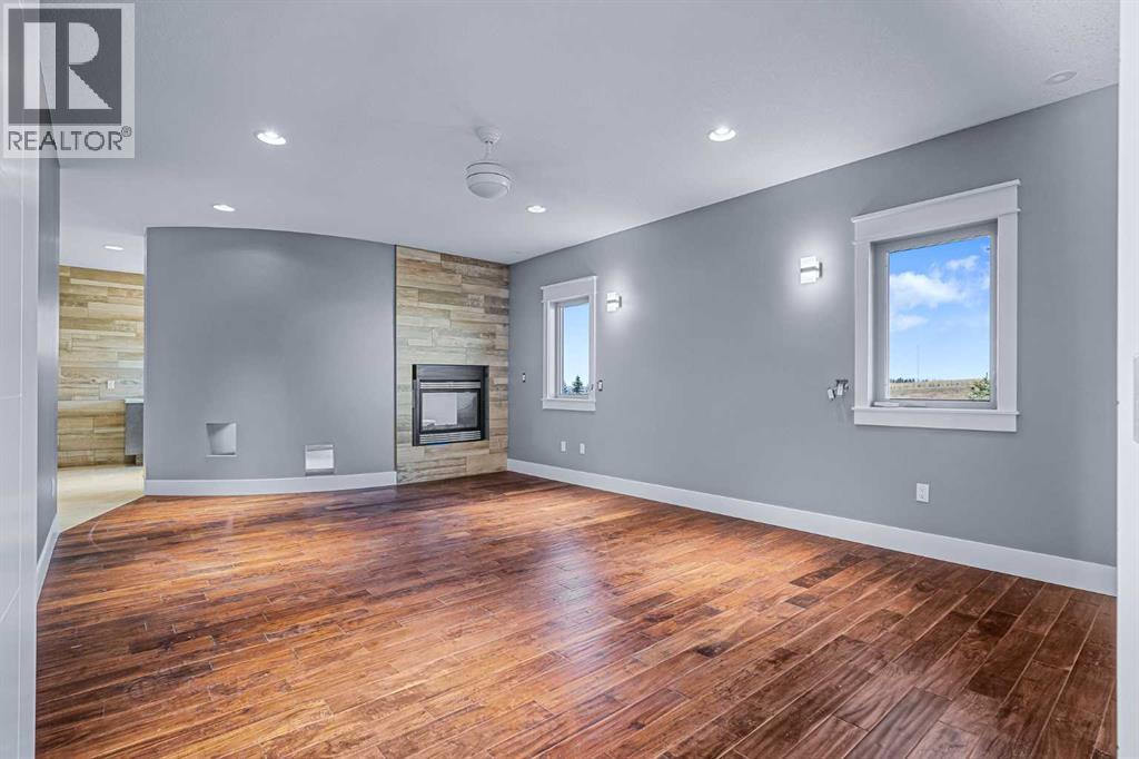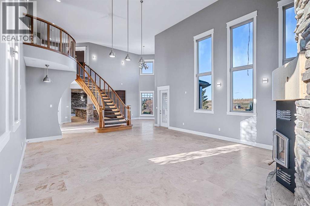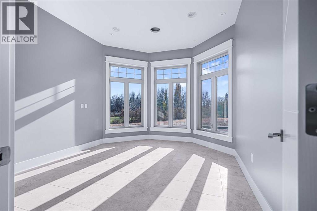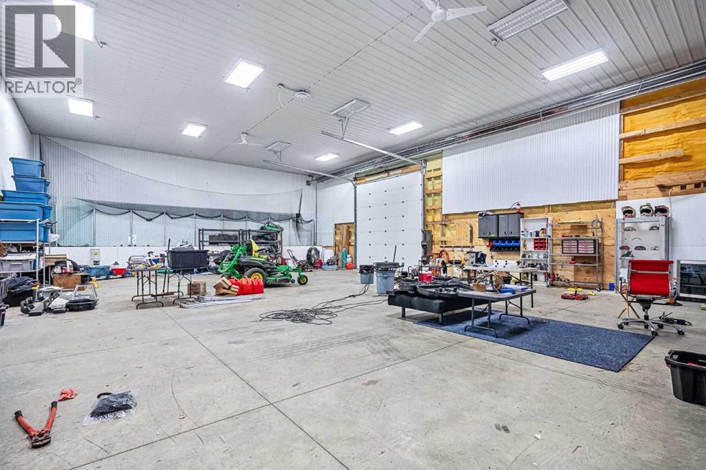 Welcome to a hidden gem that’s as expansive as it is enchanting—a rare rural retreat that invites you to live in harmony with nature. With an idyllic private lagoon, and professionally landscaped including underground sprinklers, this property is a sanctuary of both luxury and rustic charm. Perfect for the discerning buyer who values space, privacy, and an unmatched lifestyle, this estate offers a wealth of features, from expansive shops to state-of-the-art living quarters and storage facilities, all set within an unforgettable landscape. At the heart of this retreat stands a striking, 3,955 sq ft home, inviting you in through grand double doors. Step into the breathtaking two-story living room, where a majestic wood-burning fireplace with floor-to-ceiling stonework anchors the space. Natural light floods through oversized windows that frame views of the peaceful landscape, creating a seamless blend of the indoors and out. Imagine cozy evenings by the fire, with the warmth of crackling wood and the soft glow from stone surfaces illuminating the room, the main floor also has in floor heat for maximum warmth in those cold winter months. Flowing naturally from the living area is a modern yet inviting kitchen, designed to be both functional and stunning. A sleek 18-foot quartz island, encased in stone, stretches across the room—perfect for casual breakfasts, social gatherings, or simply savoring a quiet cup of coffee. The kitchen features top-of-the-line appliances, including a wall oven and countertop cooktop, catering to all your culinary needs. Adjacent to the kitchen, an intimate dining area captures 360-degree views of the surrounding property, transforming each meal into a memorable experience. Also on the main level, you’ll find a private office, ideal for working remotely, as well as a powder room, bedroom and a well-equipped mechanical room to meet your practical needs.The grand staircase, a centerpiece in its own right, sweeps you to the second floor, where tr anquil spaces await. The primary suite is a true retreat, featuring a two-way fireplace that creates ambiance between the bedroom and the luxurious ensuite. Indulge in the freestanding tub, unwind in the spacious, tiled shower, or prepare for the day at the large vanity. A walk-in closet completes this space, offering generous room for a curated wardrobe. Down the hall, two additional bedrooms share a well-appointed bathroom, providing comfort and privacy for family or guests. For added convenience, the laundry room is located upstairs, ensuring day-to-day chores are effortless. The remainder of the property includes 2 large shops, equipped with living quarters suitable for guests, dedicated gym area and lots of versatile space. There are also 2 additional spaces for storage. This estate offers something for every lifestyle. It’s more than just a place to; it’s an experience. (31243956)