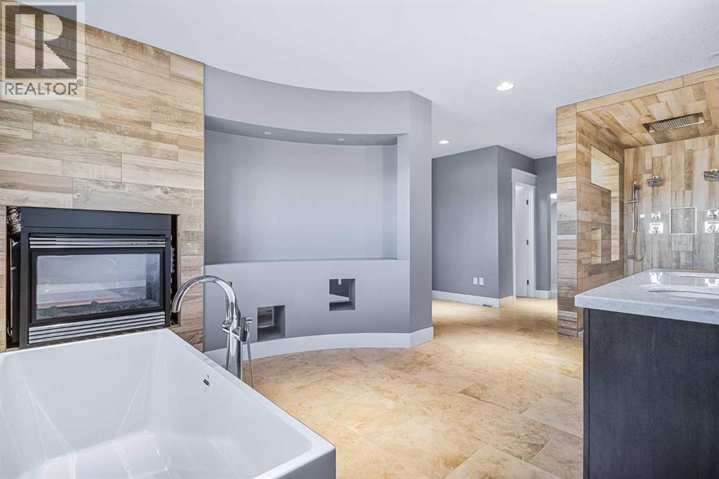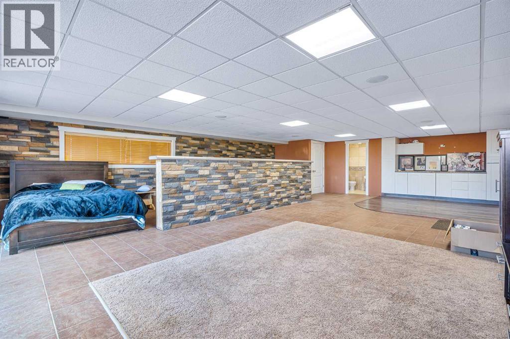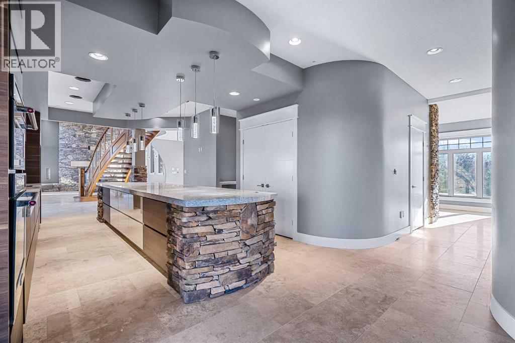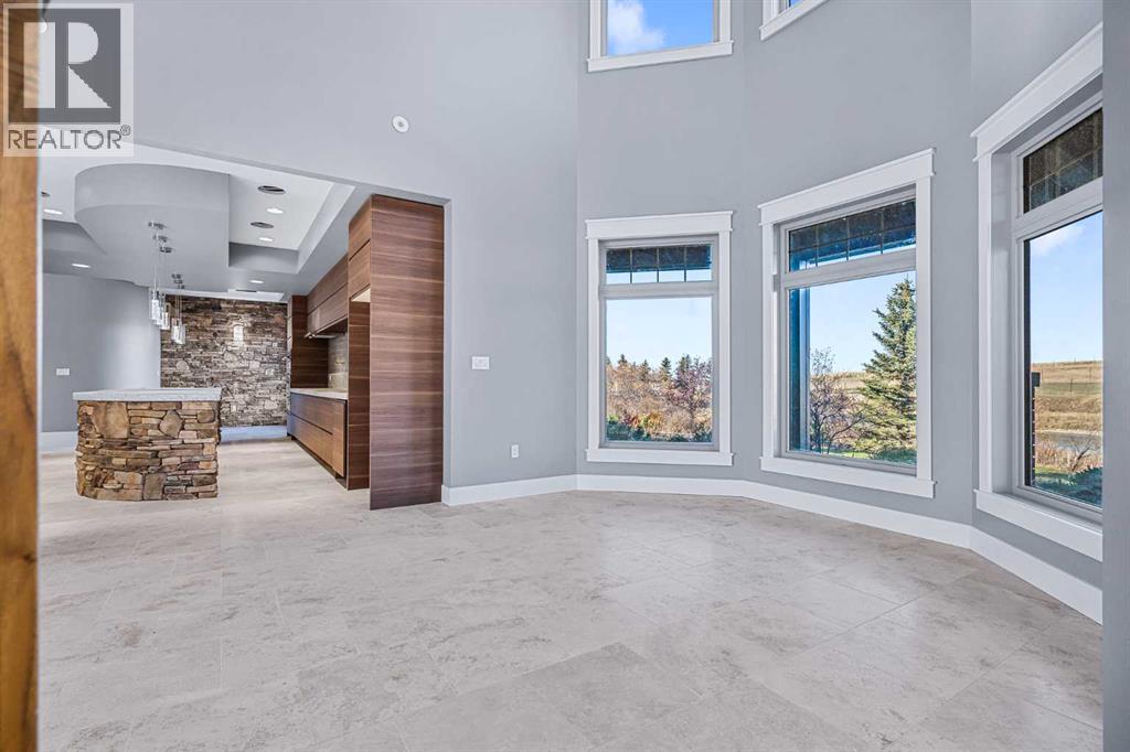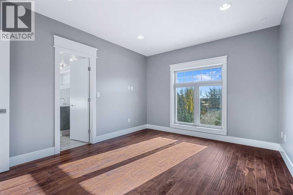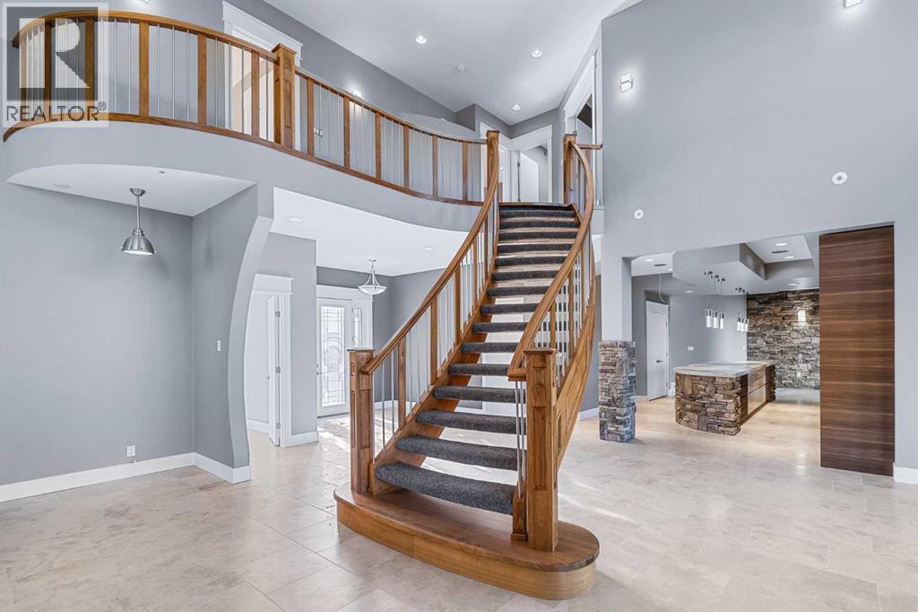 Welcome to a hidden gem that’s as expansive as it is enchanting—a rare rural retreat that invites you to live in harmony with nature. With an idyllic private lagoon, and professionally landscaped including underground sprinklers, this property is a sanctuary of both luxury and rustic charm. Perfect for the discerning buyer who values space, privacy, and an unmatched lifestyle, this estate offers a wealth of features, from expansive shops to state-of-the-art living quarters and storage facilities, all set within an unforgettable landscape. At the heart of this retreat stands a striking, 3,955 sq ft home, inviting you in through grand double doors. Step into the breathtaking two-story living room, where a majestic wood-burning fireplace with floor-to-ceiling stonework anchors the space. Natural light floods through oversized windows that frame views of the peaceful landscape, creating a seamless blend of the indoors and out. Imagine cozy evenings by the fire, with the warmth of crackling wood and the soft glow from stone surfaces illuminating the room, the main floor also has in floor heat for maximum warmth in those cold winter months. Flowing naturally from the living area is a modern yet inviting kitchen, designed to be both functional and stunning. A sleek 18-foot quartz island, encased in stone, stretches across the room—perfect for casual breakfasts, social gatherings, or simply savoring a quiet cup of coffee. The kitchen features top-of-the-line appliances, including a wall oven and countertop cooktop, catering to all your culinary needs. Adjacent to the kitchen, an intimate dining area captures 360-degree views of the surrounding property, transforming each meal into a memorable experience. Also on the main level, you’ll find a private office, ideal for working remotely, as well as a powder room, bedroom and a well-equipped mechanical room to meet your practical needs.The grand staircase, a centerpiece in its own right, sweeps you to the second floor, where tr anquil spaces await. The primary suite is a true retreat, featuring a two-way fireplace that creates ambiance between the bedroom and the luxurious ensuite. Indulge in the freestanding tub, unwind in the spacious, tiled shower, or prepare for the day at the large vanity. A walk-in closet completes this space, offering generous room for a curated wardrobe. Down the hall, two additional bedrooms share a well-appointed bathroom, providing comfort and privacy for family or guests. For added convenience, the laundry room is located upstairs, ensuring day-to-day chores are effortless. The remainder of the property includes 2 large shops, equipped with living quarters suitable for guests, dedicated gym area and lots of versatile space. There are also 2 additional spaces for storage. This estate offers something for every lifestyle. It’s more than just a place to; it’s an experience. (31243956)