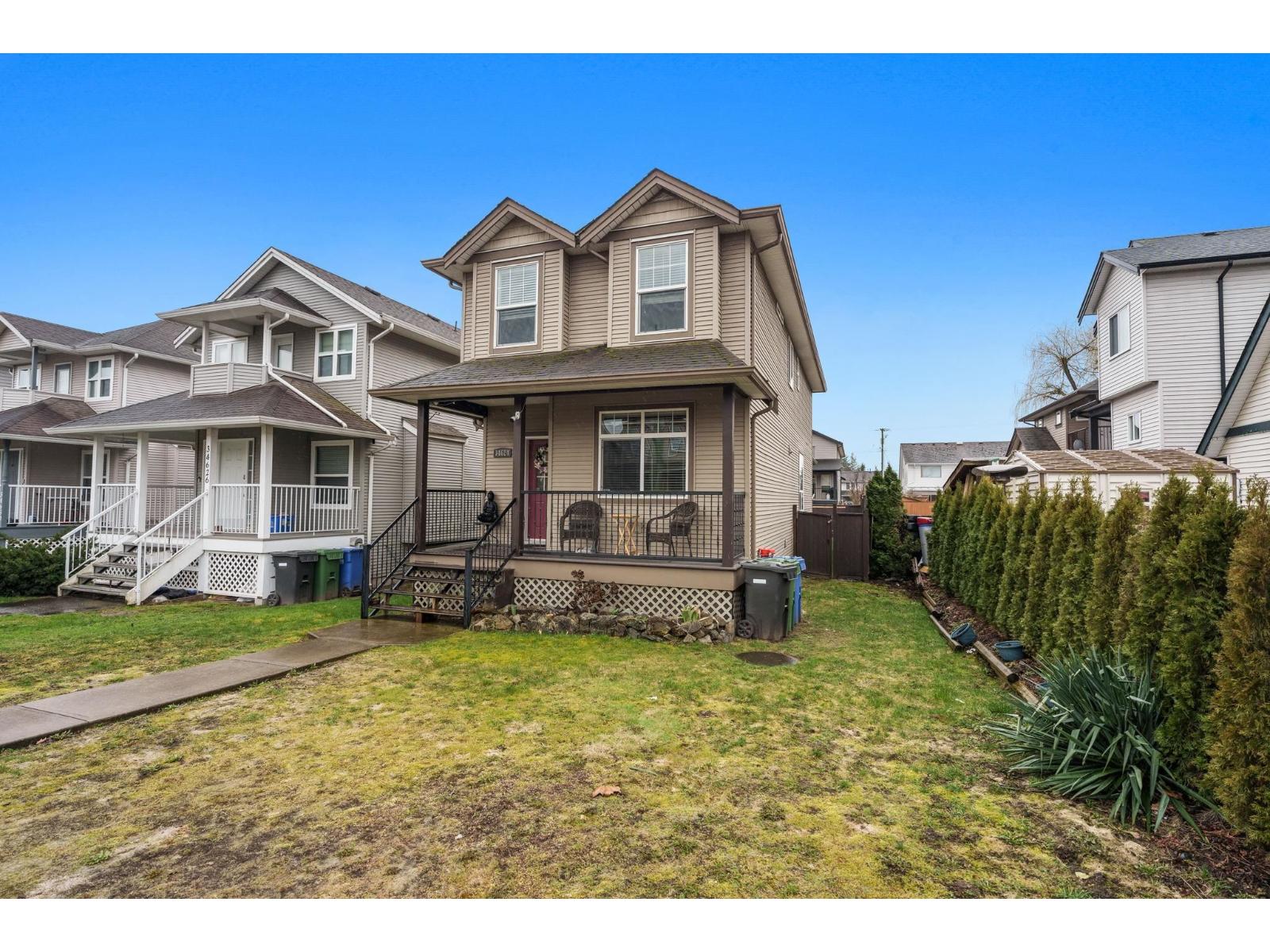 Welcome to your new home in the desirable Huntingdon Village! This 3 Bedroom + 3 Bathroom home offers both charm & comfort on a generous 30x125 lot. Step onto the large covered decks, both at the front & back in any weather. Formal living room upon entry which is a great flex space. Open living room with gas fireplace feature and dark brown kitchen with S/S appliances & island. All of the bedrooms are located upstairs along with the laundry. Relax into a laid-back atmosphere where the backyard is fully fenced for your leisure and comfort. In the basement you'll discover a crawl space boasting nearly 6 ft of height providing ample storage for your convenience. Conveniently located close to Sumas border, highway access, shopping centers & much more. Bonus there's a park nearby for the kids! (32041917)