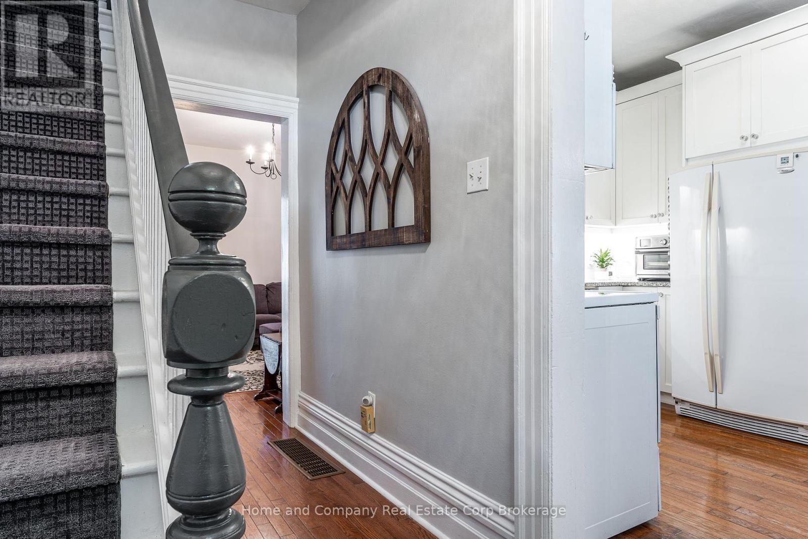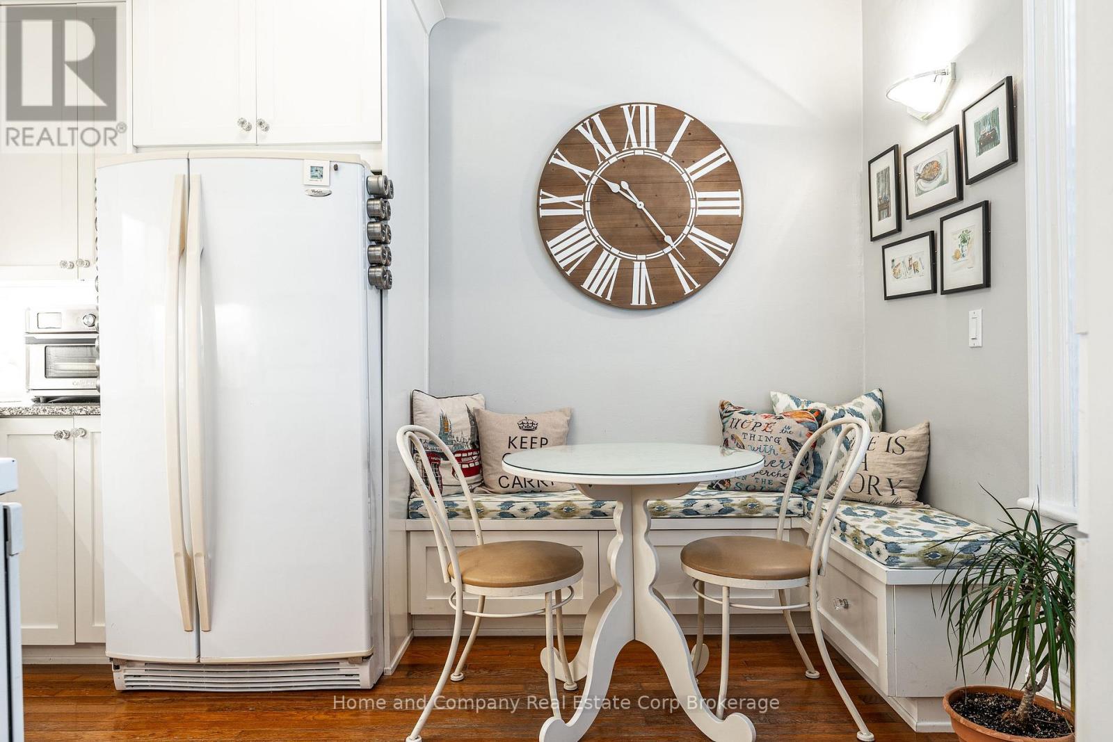 Welcome to this beautifully updated yellow brick two-storey century condo townhome, located in a mature and quiet neighbourhood close to downtown Stratford! Step inside to discover a thoughtfully upgraded kitchen featuring granite countertops, ample cabinetry, and a stylish built-in seating nook, perfect for casual dining or morning coffee. The spacious main floor continues with an open concept living and dining area, followed by a generously sized mudroom complete with laundry and a convenient powder room. Upstairs, the oversized primary bedroom includes dual closets with plenty of space for a sitting area, two additional bedrooms that offer flexibility for guests or a home office, and a modernized bathroom complete with a walk-in shower. Step outside to your fully fenced private courtyard with a new deck, perfect for low-maintenance and relaxing living. With two parking spots, low monthly condo fees, this is an excellent option for those seeking character, comfort, and convenience all in one package. (41444576)