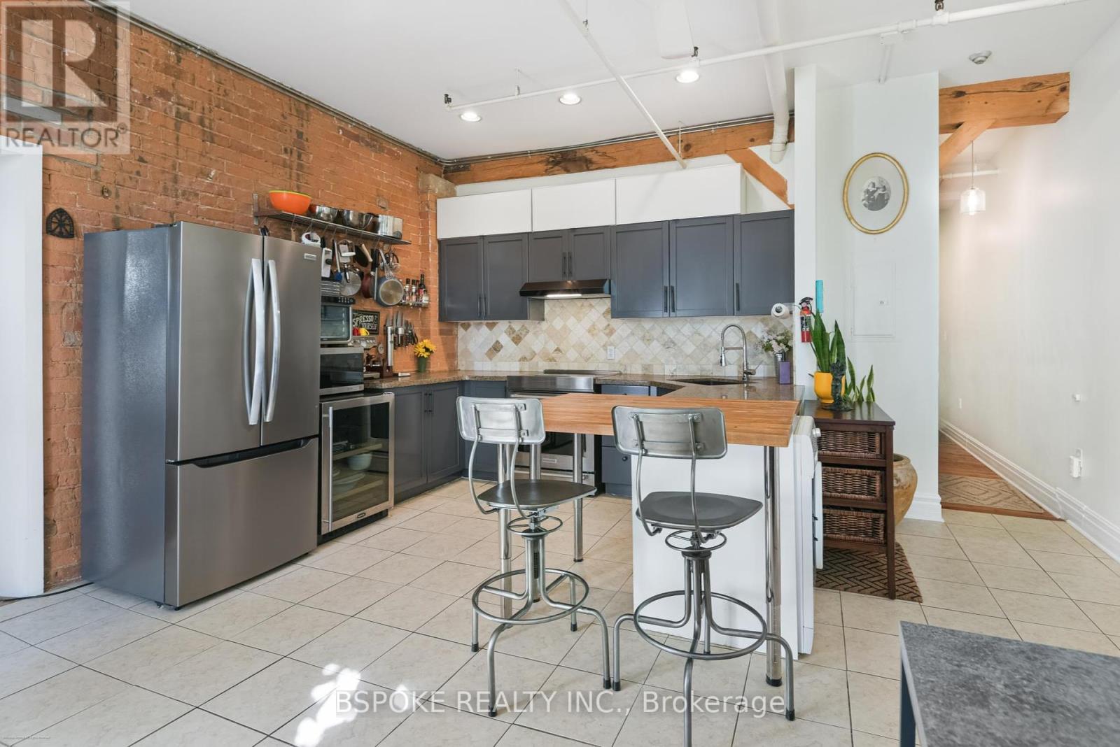 If you've been holding out for the real deal a true hard loft with character, space, and just the right amount of patina this nearly 1,100 sq ft unit at 121 Prescott Ave #18 might be it. Housed in The Stockyard Lofts, a former 1890s leather factory turned post-and-beam conversion, this space doesn't imitate authenticity, it is authentic. Original Douglas fir beams, exposed brick, and remnants of century-old hardwood floors set the tone when you walk in. Originally a 1+1, now a generous one-bedroom floor plan, the light pours through west-facing windows, catching the texture of heritage wood and warming the open-concept layout. The living area flows into a refreshingly un-condo kitchen: full-sized, functional, and built for people who cook. The bedroom offers a sense of separation and space, rare in loft living, while the updated 4-piece bath keeps things practical. The reasonable, all-inclusive maintenance fees are hard to beat, as well as a parking space, exclusive use of one locker, and neighbours who still nod hello. Tucked on a quiet, tree-lined street just blocks from the buzz of Corso Italia, the Stockyards, and the Junction, this is Toronto with texture not the kind flattened by glass towers and big box stores. If you've been not-so-patiently waiting for something with soul and space to make your own, it's probably time to see it in person. (41444843)