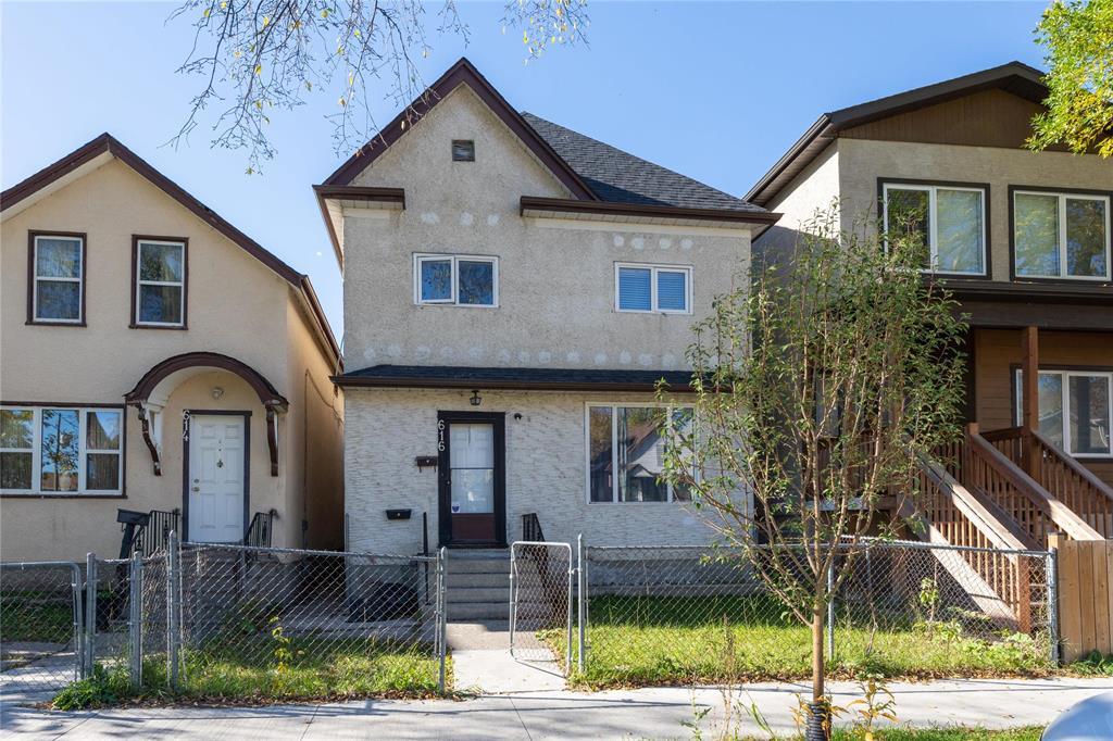 5A//Winnipeg/Start Showing on October 15th. Welcome to 616 Langside Street! A fantastic opportunity for investors, first-time buyers, or anyone looking to add value in a prime central location! This straight and solid 2-storey duplex is perfectly situated in the heart of Winnipeg, just minutes from downtown, universities, transit, and major amenities. The upper unit offers 3 bedrooms, 1 bathroom, and a functional layout, while the main floor (including basement) features 2 bedrooms and 1 bathroom. Both suites have in-suite laundry, and all utilities are completely separated and paid by the tenants.Current rents:Main Floor: $1,000/monthUpper Floor: $1,050/monthThe property also includes a private backyard and 2-car garage, adding convenience and value. Insulation has been upgraded through the Hydro program for better efficiency. With good tenants, solid revenue, and an attractive price point, this is a versatile investment in a high-demand area. Don t miss this opportunity! (231511931)