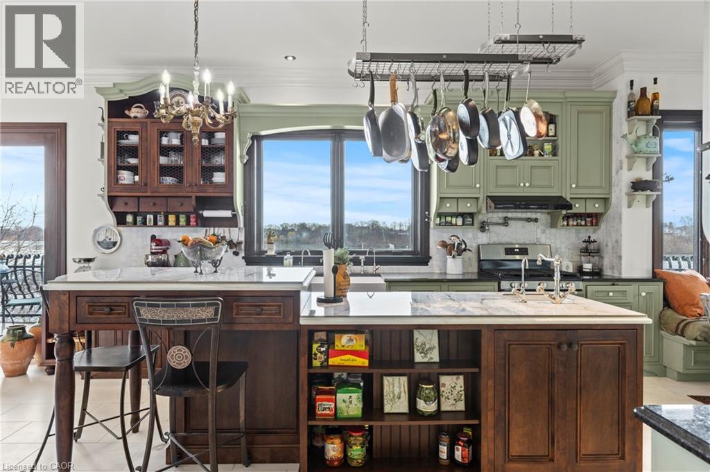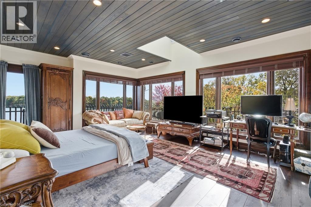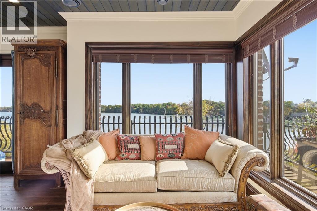 Pristine waterfront living meets timeless European elegance. This extraordinary custom built two-story residence offers over 4500 sq ft of beautifully crafted living space, designed to capture panoramic views of Martindale Pond. Home to the prestigious Royal Canadian Henley Rowing Course. From its graceful archways and terracotta rooflines to its warm brick exterior and charming wrought-iron accents, this home exudes Mediterranean charm and architectural sophistication. Step inside and be greeted by sun-drenched interior, soaring ceilings, elegant tile, custom hardwood flooring and expansive windows that frame tranquil water views in nearly every room. The heart of the home features a grand spiral staircase spanning three floors and a gourmet chefs kitchen that flows into spacious open-concept living and dining areas. Multiple walkouts lead to peaceful terraces, private gardens, and an intimate outdoor living area where you can enjoy morning espresso or evening wine by the waters edge. The second floor has a 15ft x 18ft primary suite with 17ft x 8ft custom walk-in closet and 5-pc ensuite featuring floor to ceiling tiled glass shower and spa-like tub with double sinks. The large second bedroom also includes beautiful panoramic views of the pond. Make your way to the third bedroom with large windows overlooking the pond with access to a roof-top patio for relaxation. The lower level features an additional living space with second kitchen, two additional bedrooms, large laundry area and built-in sauna to keep the relaxation going. The backyard features a custom inground stone hot-tub with outdoor shower area for enjoying those Zen moments in life. With pond access, the water enjoyment is limitless. Whether you're savoring the peaceful ambiance, hosting unforgettable gatherings, or simply enjoying the beauty of nature from your own backyard oasis, this property offers a lifestyle of serenity and sophistication. Luxury Certified. (69765794)