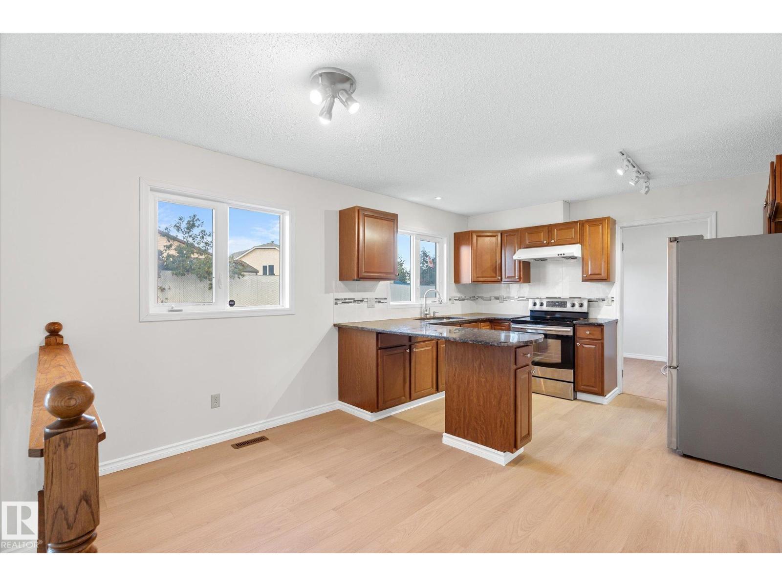 Discover this beautiful move-in ready 5-bedroom home tucked away in a quiet cul-de-sac in Homesteader! Freshly painted and new modern vinyl plank flooring, this spacious home offers comfort and updates throughout. Huge main floor living room and family room are a great space for entertaining. Bright and functional layout with a refreshed main floor 3 piece bathroom featuring a new vanity and toilet. The laundry area has been upgraded with a new washer, dryer, and utility sink. All windows were replaced 8 years ago above grade (excluding the bow), shingles are 3 years old, the hot water tank is 2 years old, and the furnace (15 years old). Main floor den/flex room is beside the kitchen. Upstairs bonus room. The partially finished basement is 90% finished and includes a convenient 2-piece bathroom. Oversized double garage has a huge driveway with room for four extra vehicles. Fully fenced and landscaped yard completes this fantastic family home. Don’t miss this opportunity in a well-established neighborhood! (33449708)