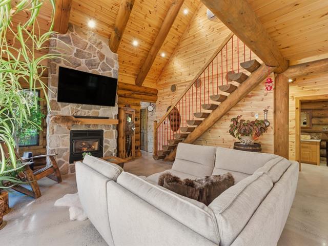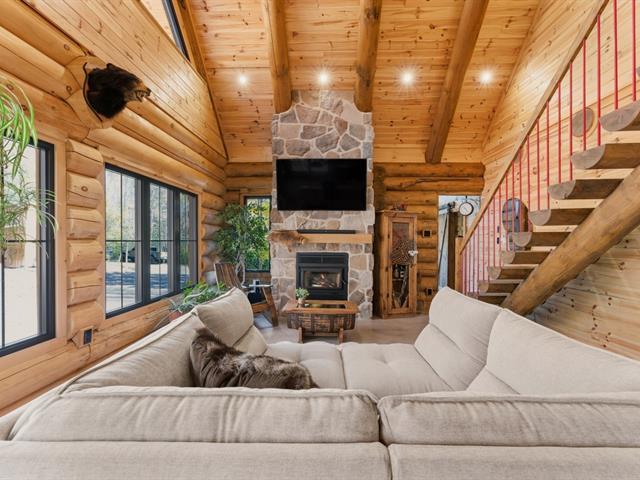 Amoureux du bois rond, préparez-vous à tomber sous le charme! Cette propriété haut de gamme nichée sur 5,98 acres de nature à Cleveland à tout pour faire rêver: un foyer en pierre majestueux, une cuisine moderne avec comptoirs en quartz, des planchers chauffants ultra confortables et une ambiance chaleureuse qui vous fera sentir en vacances à l'année. - 3 grandes chambres+ 1 bureaux, une suite principale digne d'un hôtel avec walk-in accessible par la salle de bain. - Située dans un chemin privé, elle vous garantie intimité, tranquillité et prestige. Coup de coeur assuré dès la première visite! (41365155)