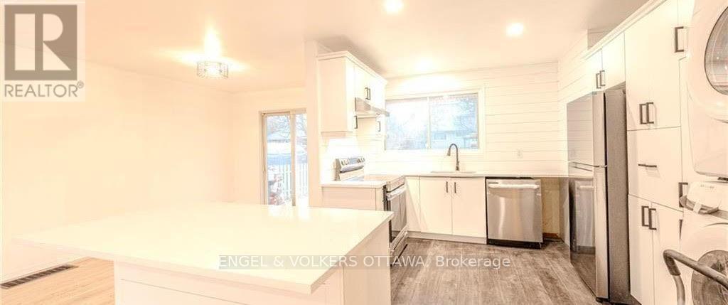 Updated 3-bedroom main-level unit recently renovated from top to bottom. Heat and Hydro included! The home offers a brand-new kitchen and bathroom, quartz countertops, stainless steel appliances, refinished hardwood floors, fresh paint, and contemporary finishes throughout. The open-concept layout connects the living, dining, and kitchen areas, making it ideal for everyday living. Lots of natural light. In-unit laundry and step outside to your private new deck and large fenced yard. Great neighborhood, just minutes from Algonquin College, this home is a fantastic choice for both students and professionals. With easy access to public transit, parks, shopping, and dining, everything you need is right at your doorstep including the Nepean Sportsplex. Available immediately. (41451599)