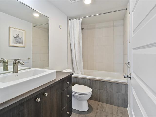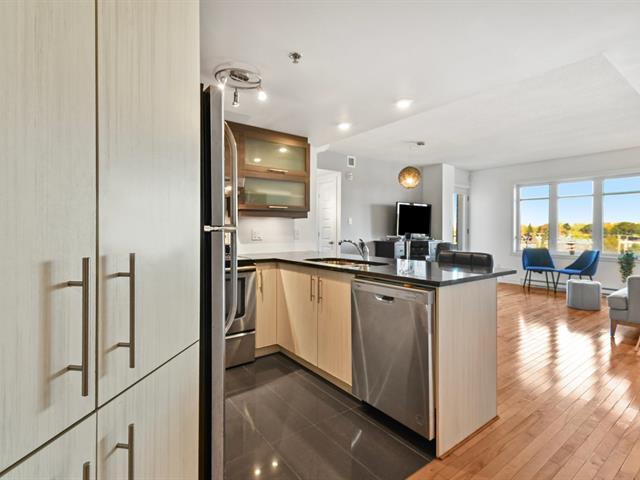 Superbe unité de 2 chambres située au 4e étage d'un immeuble moderne en béton certifié LEED argent. Emplacement idéal à quelques pas de la gare Bois-Franc/Futur REM, à moins de 20 minutes du centre-ville et avec un accès rapide aux autoroutes 13, 15 et 40. Près de Place Côte-Vertu, parcs, écoles et golf. L'immeuble bien insonorisé offre ascenseur, caméras de surveillance, interphone, gym, et terrasse sur le toit. Vous profiterez aussi d'un balcon privé, d'un espace de stationnement privatif intérieur et d'un rangement adjacent. Un cadre de vie pratique et de qualité! (54179844)