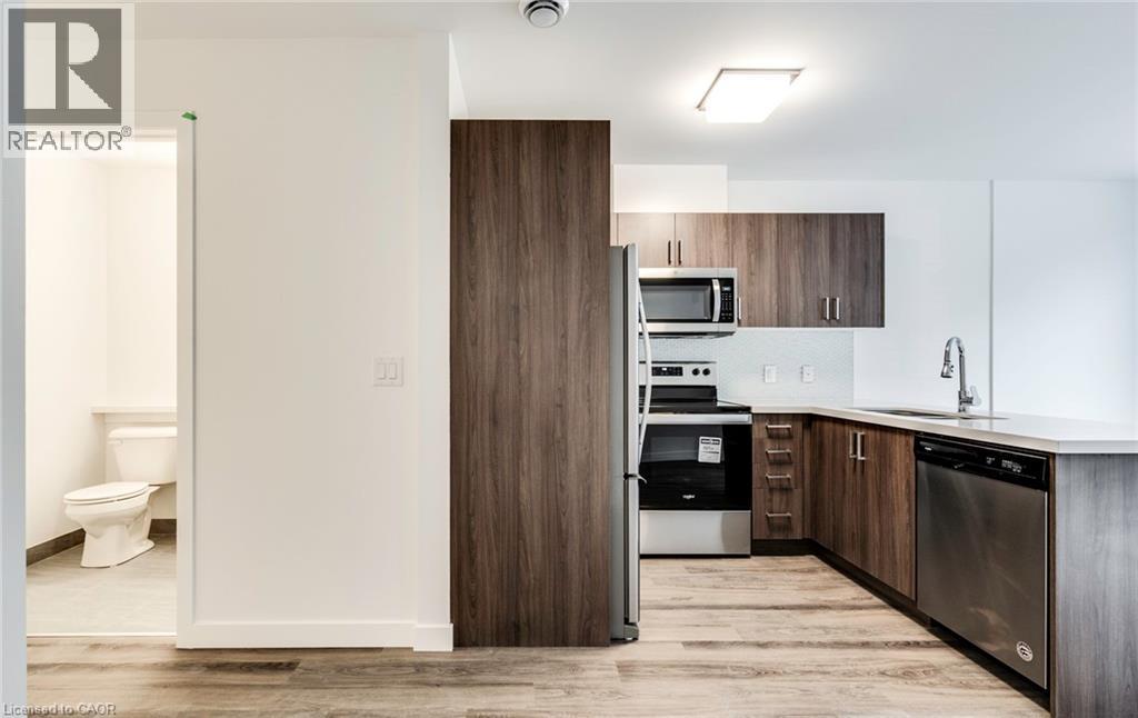 This almost 600 square foot open concept property is an absolute must se! This property is made for Hamiltons' Medical Community. The unit boasts an upgraded kitchen featuring stone counters, under mount sink, upgraded cabinetry, stainless steel appliances including dishwasher and ensuite laundry. All rooms are completed with for to ceiling glass windows, modern laminate flooring. The Amenities complete this brand new property with full gym, party room, and brilliant common area outdoor terrace overlooking the city. It's available for move in today! Call to book your private viewing, this wont' last! (69771318)