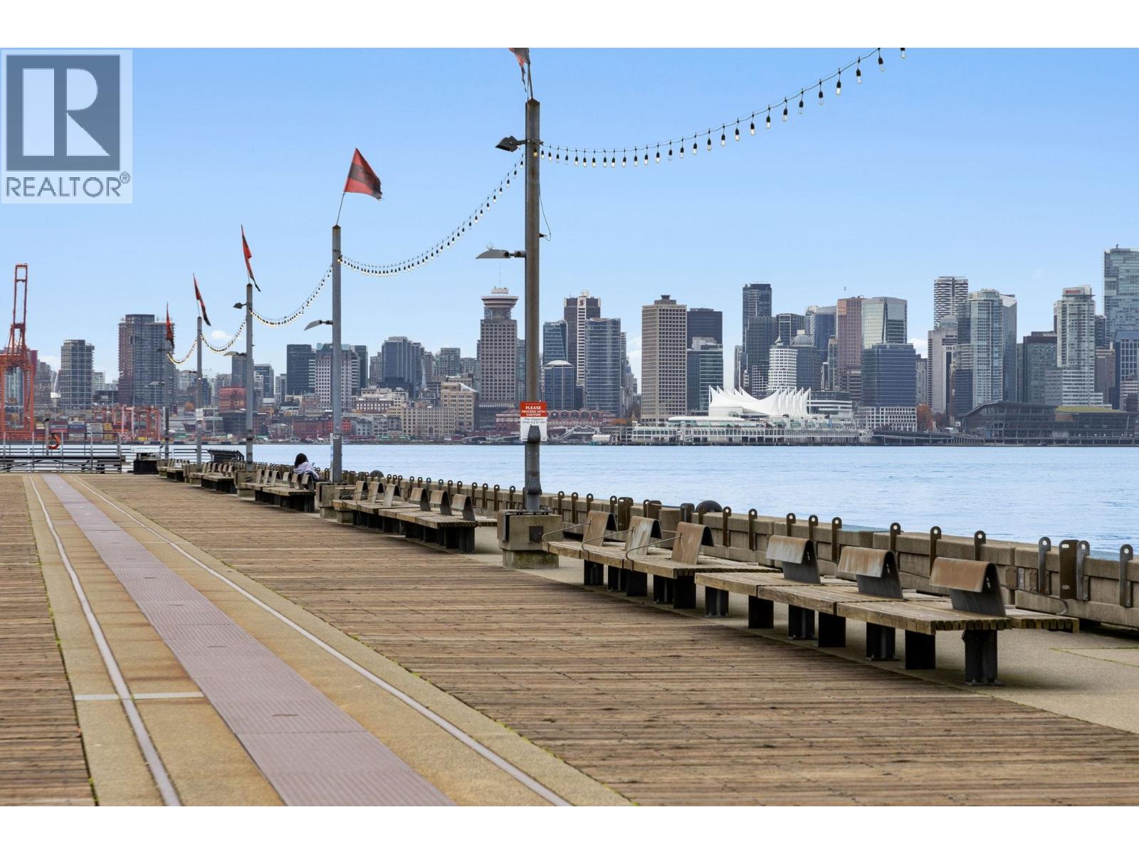 Discover the epitome of modern living in this stunning ground-level 2-bed plus den main level entry home. Boasting impressive 14-foot vaulted ceilings and exquisite custom blackout curtains throughout, this home exudes elegance with its rich hardwood floors and two luxurious full baths, including a lavish 5-piece ensuite. The wardrobe closets are thoughtfully upgraded with custom built-ins from California Closets, maximizing both style and functionality. Step outside to your expansive nearly 500 sqft. patio, with custom faux hedging for added privacy and effortless maintenance. Located just steps from the water´s edge, the pier, and an array of delightful restaurants, this residence offers the perfect blend of convenience and tranquility. 2 parking and 1 locker included! (32051412)