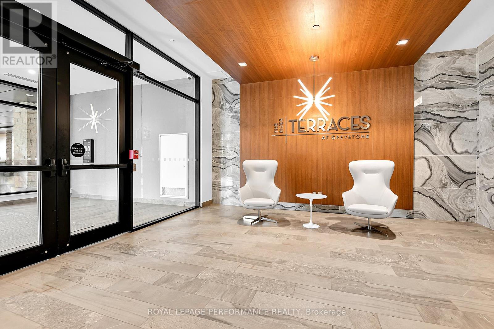 Welcome to The River Terraces at Greystone Village where refined urban living meets the tranquility of nature. This exceptional 2-bedroom residence, just steps from the Rideau River and Canal, offers approximately 954 sq. ft. of beautifully curated living space designed for comfort, elegance, and ease. A generous foyer opens to an airy, light-filled layout adorned with engineered hardwood floors. The sleek, white gourmet kitchen features Corian countertops, subway tile backsplash, shaker cabinetry, stainless steel appliances, and an oversized breakfast bar a perfect balance of style and function. The open-concept living and dining area invites both relaxation and entertaining, with large windows that flood the space with natural light and access to a private balcony complete with natural gas BBQ hookup. The primary suite is a serene retreat, offering ample closet space and a spa-inspired ensuite with a glass walk-in shower. A second bedroom, a full main bath, and in-suite laundry complete this thoughtfully designed home. Residents of The River Terraces enjoy an elevated lifestyle with amenities that include a fitness centre, yoga studio, fireside lounge and library, private dining room with kitchen, pet and car wash stations, and commercial-grade laundry facilities all within one of Ottawa's most coveted communities. (41457369)