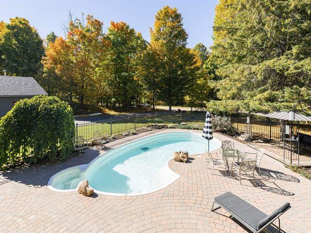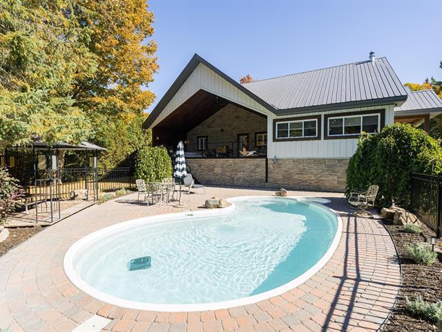 Welcome to Le Merle Noir. This exceptional property seamlessly combines family-friendly functionality with the warmth and character of a chalet-inspired mountain retreat -- an ideal haven for families and modern professionals seeking a distinctive lifestyle just beyond the city. Perched atop Mont Rigaud, this 4,300 sq. ft. custom-built residence sits on a beautifully wooded 34,000 sq. ft. lot and features open-concept living, a vaulted great room with fireplace, a heated balcony, landscaped gardens, and a serene pool with gazebo -- all thoughtfully designed for entertaining, relaxation, and a harmonious connection with nature. (45954207)