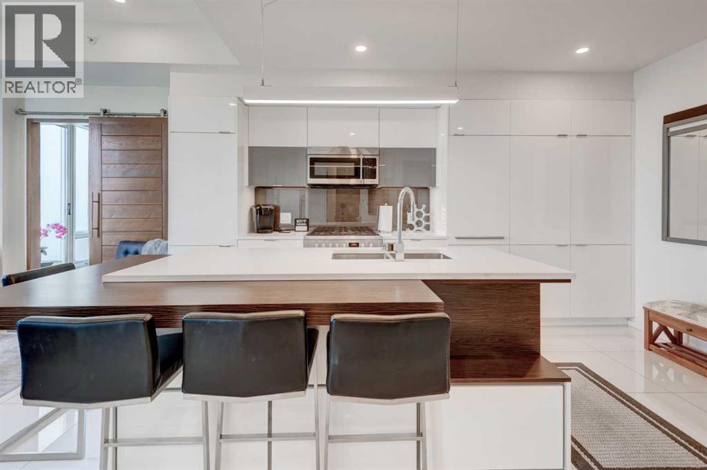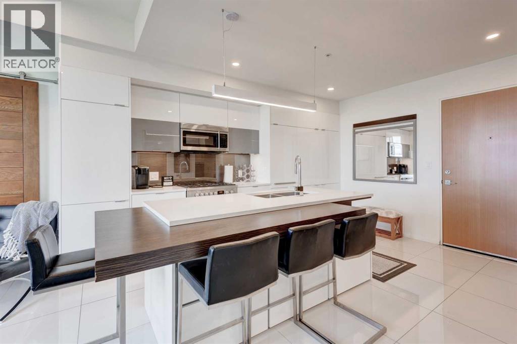 Welcome to unit 704 in The Avli in Inglewood a great unit in a pet friendly building. This TOP FLOOR unit with beautiful north views of the Calgary Zoo, Bow river and Bridgeland features 2 bedrooms - 2 bathrooms, titled underground parking and an additional storage locker. This is a great balance of modern style and functionality with sleek flooring, solid barn style sliding doors and modern lighting. The kitchen features a large quartz island with an extended wood eating counter, tons of cabinetry and European style integrated appliances. Primary bedroom has direct slider access to the large north facing balcony, built in wardrobes and a 4 piece ensuite with dual floating vanity and glass door shower. Second bedroom and bathroom are on the opposite side on the unit, perfect for guests. The flex space is ideal for a home office or additional storage. Building amenities include heated visitor parking, guest suite, car wash bay, bike locker and a large 3rd floor outdoor social space for larger gatherings. The Avli is a modern sleek stylish building in the heart of Inglewood that is well taken care of, very well managed and steps away from great restaurants, shopping, downtown, The Saddledome, Bow River and the Calgary Zoo. (31259615)