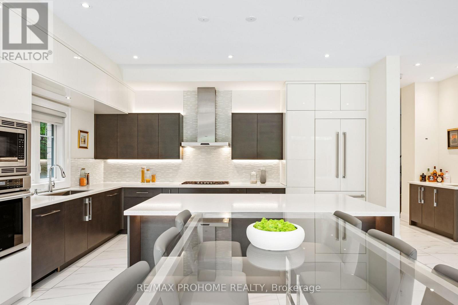 Welcome to this spectacular custom-built residence tucked away on a quiet, exclusive cul-de-sac in historic Markham Village. Offering over 4,345 sq ft above ground plus a professionally finished lower level, this home combines timeless curb appeal with a minimalist, contemporary design and premium finishes throughout. Step through the elegant double doors into a soaring foyer and experience the 10-ft ceilings on the main floor, rich hardwood floors, and an impressive open-riser staircase with custom iron railings that enhances the homes airy feel. The main level showcases a formal dining room with designer chandelier, a private office, and a spacious living area with multiple walk-outs to the backyard. At the heart of the home is a custom-made chefs kitchen featuring Thermador appliances, an oversized center island, and a custom glass dining table perfect for everyday living and entertaining. A butlers servery with wet bar connects the kitchen and dining areas seamlessly. Upstairs, discover four generously sized bedrooms, each with its own ensuite bathroom, including a luxurious primary suite with steam shower, towel warmer, and two large walk-in closets. A convenient second-floor laundry room enhances everyday ease. The third-level loft offers a bright, versatile space ideal as a home gym, studio, or lounge. Outside, enjoy an expansive, professionally landscaped backyard with a multi-zone stone patio, in-ground sprinkler system, and lush greenery ideal for outdoor dining and lounging. The finished basement adds exceptional versatility with an open-concept layout, pot lights, and a rough-in for a wet bar, creating a perfect recreation or entertainment space. Steps to Park, top schools, GO Transit, community centers, shops & restaurants, Stouffville Hospital, and Hwy 407. This stunning property blends sophisticated style with exceptional functionality in one of Markham's most desirable settings-- a true rare offering! (41460097)