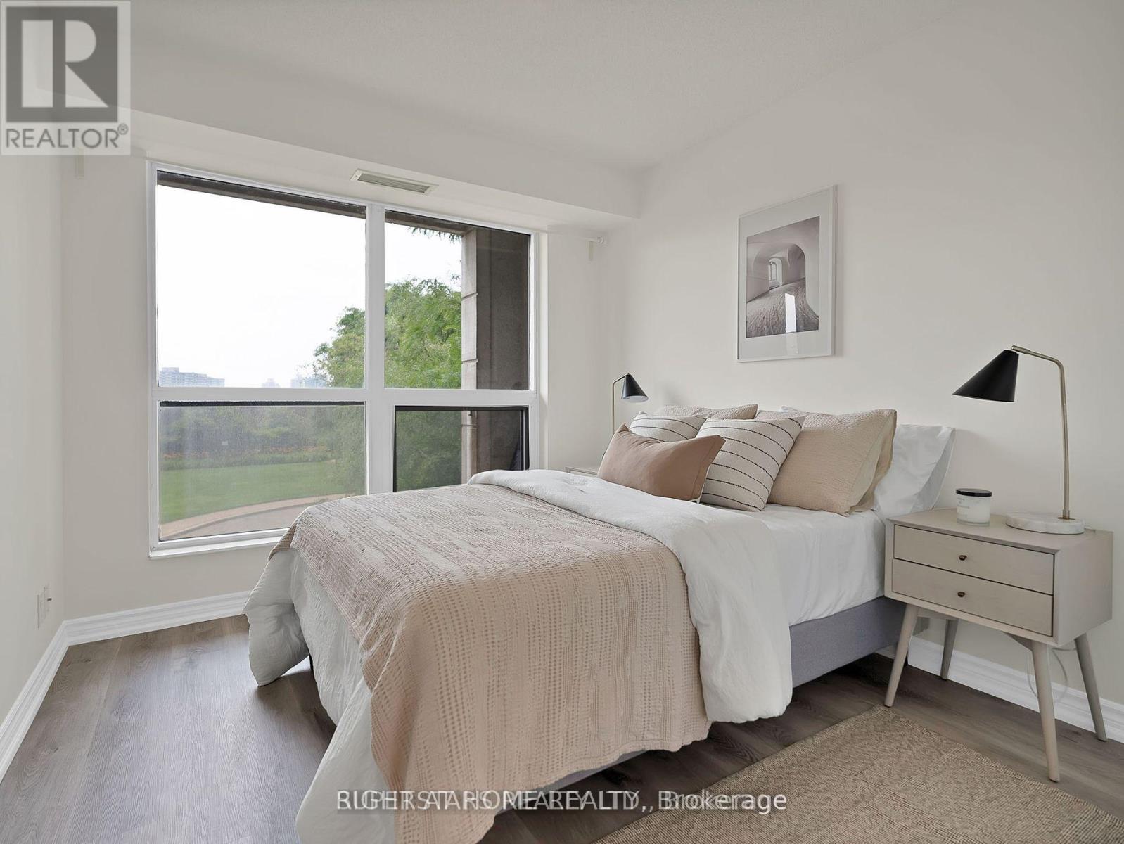 Welcome to this Naturally Bright, Well-Maintained and Carpet-Free 2+1 split bedroom, 2-bathroom modern condo unit featuring a spacious open-concept living and dining area. The modern kitchen features a breakfast bar area, granite countertops, stainless steal appliances, trendy backsplash, undermount sink and plenty of cabinet space. Custom built-in cabinetry in the den and the large walk-in closet in the primary room adds an incredible amount of additional storage space in this unit. Unwind after a long day in your very own large south facing 18 foot balcony overlooking the building's courtyard. 2 side by side parking spots and a locker are also included in the lease price. This clean and well-run building offers great amenities which have been recently updated and is conveniently located near shops, medical buildings/hospital, highways, shopping mall, GO Train and public transit at your doorstep. Note: staged photos have been taken from the previous listing, with consent. (41460110)