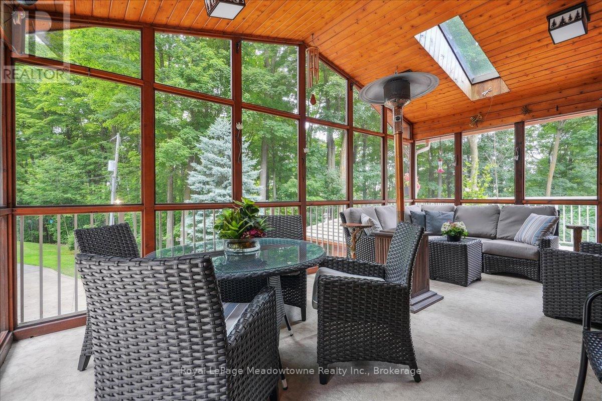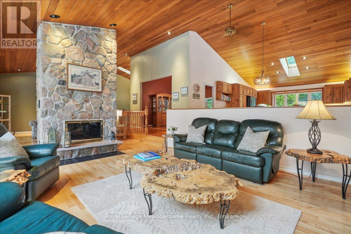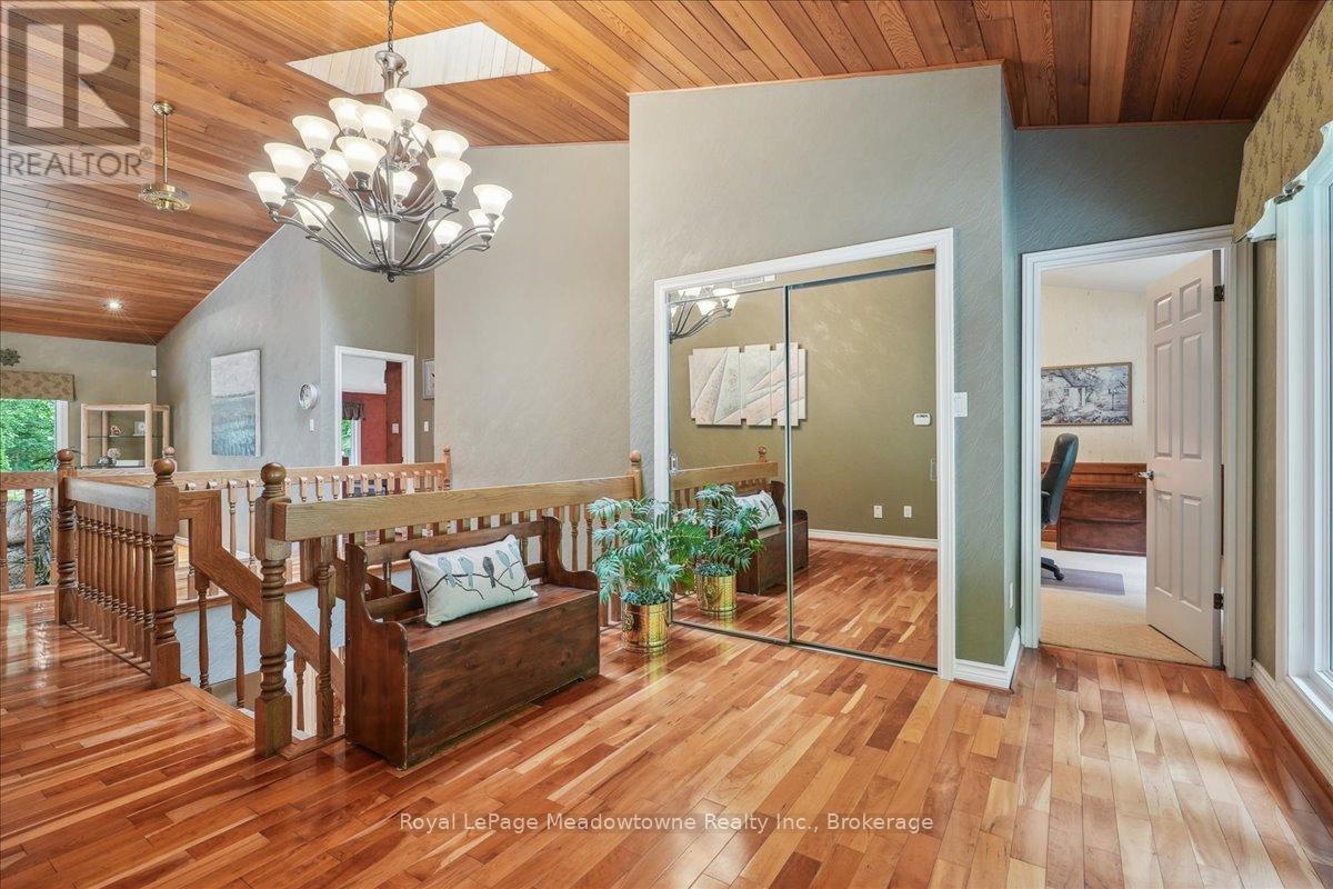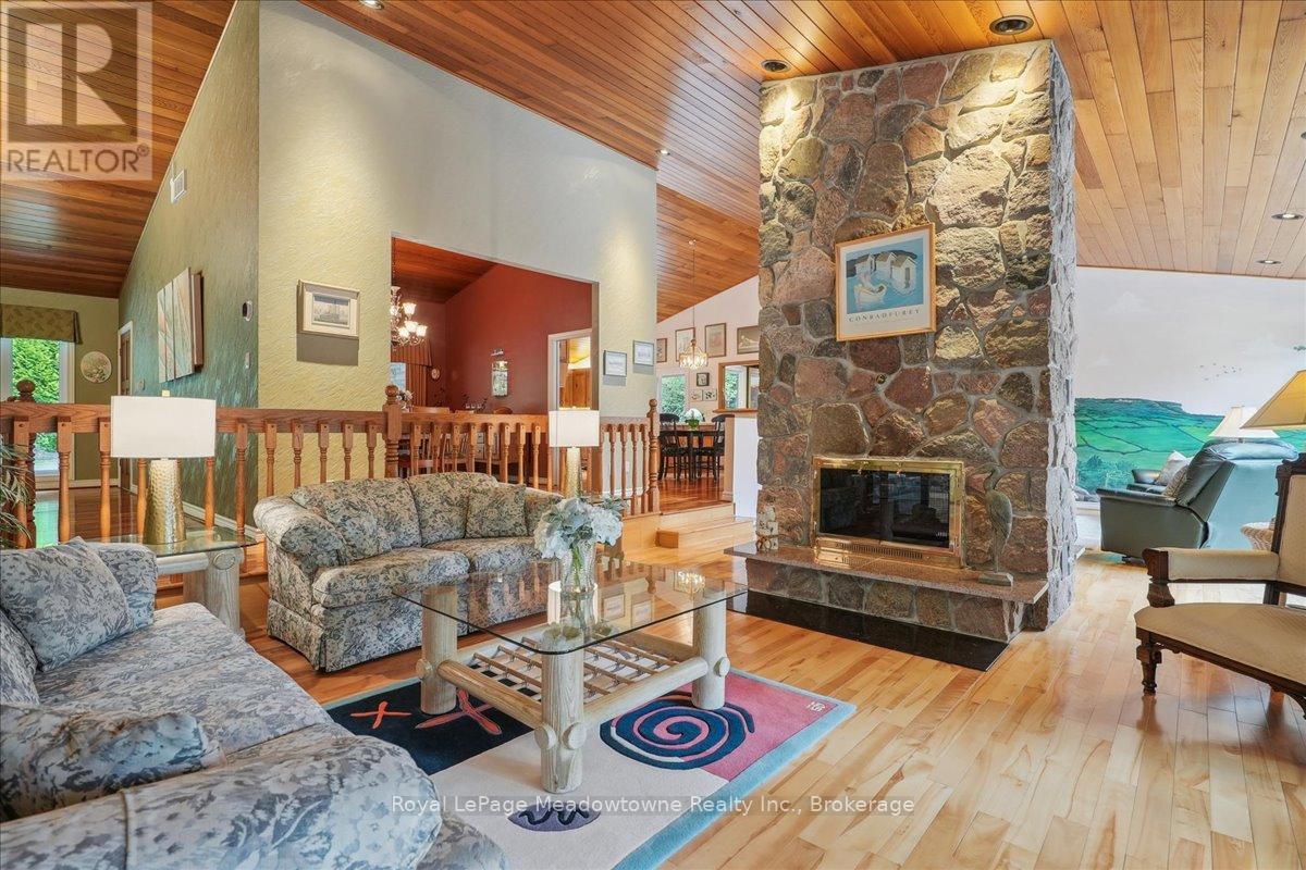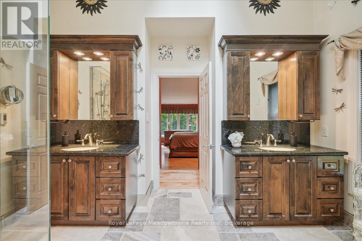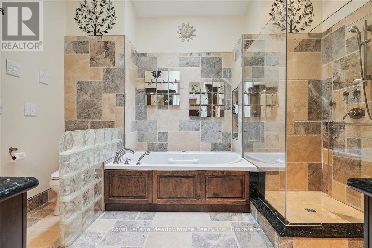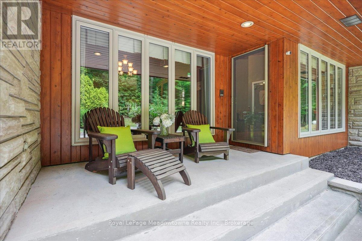 Discover an unparalleled gem rarely available on the market: a private and serene estate with a custom-designed home that fulfills every dream. Set on over 10 lush acres amidst the stunning Niagara Escarpment, this meticulously cared-for property is just minutes from the 401 and downtown Milton. Surrounded by vibrant perennial gardens and towering mature trees, this home is perfectly positioned in the heart of Halton Conservation's premier parks. You'll be just moments from Kelso Conservation Area, Rattlesnake Point, Crawford Lake, Hilton Falls, and the Bruce Trail ideal for outdoor enthusiasts and nature lovers. The custom-built bungalow features over 6,000 sq. ft. of exquisite living space. Its open-concept design showcases vaulted ceilings, a double-sided stone fireplace, a spacious kitchen with pine cabinets, granite countertops, and an island. A convenient wet bar, elegant dining room, and a fantastic outdoor screen room offers the perfect space for 3-season entertaining. Enjoy stunning views from walkout decks off the kitchen, screen room, sun room, and master bedroom balcony. The lower level is a haven of relaxation and recreation. You will find a large recreation room with a cozy wood-burning stove, a games room, four additional bedrooms, and access to a three-car garage. Walk out to a luxurious inground pool with a hot tub, cabana, and a soothing water feature. The home is equipped with a 400-amp electrical service, a propane-powered generator, and a geothermal heating and cooling system. A separate two-car garage provides the ideal "Man Cave" and additional storage for garden equipment. Garden enthusiasts will love the large greenhouse/potting shed, and the property boasts a fire pit with a patio area, night landscape lighting, and over one kilometer of meticulously groomed walking trails. Why settle for a cottage when you can have this dream home without the drive? Experience the ultimate in luxury and tranquility this is truly what dreams are made of! (41462073)